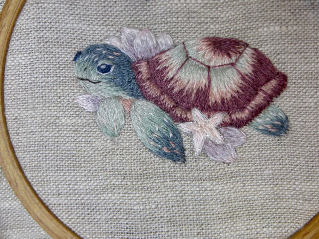 7 июня Большая просьба фотографии для гаечки брать только там, где помечено "Фотографии для процесса" Ох и долго же я собиралась с мыслями, чтобы выложить фотки вышитого за последние месяцы, которого, кстати, не так уж и много, но фотографии оказались то не загружены, то загружены в общую кучу и их надо сортировать, то загружены и удалены и из фоторедактора, и в ноутбуке их не могу найти! Не люблю, когда доходит до фотографирования, редактирования и выбора фотографий, ну а если их ещё и надо искать – это вообще мУка. Выкладываю в хронологической последовательности. 1. Давненько, еще где-то в январе вышила очередного херитажевского «смешарика». Продолжение следует… Точного названия схемы не знаю, схему давно выбросила, в интернете не нашла, поэтому озаглавила процесс сама. ФОТОГРАФИИ ДЛЯ ПРОЦЕССА Heritage Crafts, Squircles, Bird, счетный крест Превью: 2. Вышила черепашку гладью по мастер-классу. Прельстилась милой картинкой и бисеринками-«пузырьками». Пузырики возле мордашки добавила уже от себя. Вышивать было легко и увлекательно. Все цвета мулине не по ключу. Подбирала из того, что было под рукой. Для морской звезды взяла ниточки DMC Etoile. К сожалению, на фото их мерцание совсем не заметно. Вместо заколки, как предлагала автор. оформила в брошь 6,5 х 4 см. Черепашку приурочила к юбилейному сезону одноимённой игры в "Клубе любителей Heritage" и только этим оправдываю себя тем, что приняла от Светы неожиданный сюрприз -- прелестный магнитик . Иначе постыдилась бы, так как магнитики полагаются участницам игры, а я не участвовала. ФОТОГРАФИИ ДЛЯ ПРОЦЕССА Полина Лотышева. Черепашка. Гладь Превью: 3. После поездки к маме в прошлом месяце приступила к небольшому ремонту дома – занималась покраской балкона и всего того, что можно было покрасить. Надо сказать, что мебель в квартире у меня перекрашена мной из темного цвета в какой-то молочно-кремовый оттенок. Когда я только переехала в Екатеринбург, мы со Светой забрали кое-какую мебель по объявлению у какого-то дядечки, отдававшего ее бесплатно. Как говорится, нет ничего более постоянного, чем временное. Интерьер мне виделся в светлых оттенках, поэтому взяла краску – и вперёд с кисточкой наперевес! Перекрасила 4 шкафа, письменный стол, навесные полки и стул и даже раздвижную дверь в кладовку. А сейчас вот решила освежить покраску. На балконе тоже всё перекрасила, посадила зелень. Фотографировала несколько недель назад. Сейчас зелень уже большая выросла. На дверцы полочек и стену сделала простенький декупаж. Огромная благодарность Свете и Максиму за воплощение моей давнишней мечты – установку рулонных штор и откидного столика! Они с потрясающим терпением относятся ко всем моим иногда причудливым просьбам о крючочках и полочках в самых неожиданных местах Теперь я могу наслаждаться чашечкой чая в окружении заколосившейся редиски, свекольных листочков и перьев лука. Впечатлившись ремонтом, захотелось вышить что-нибудь небольшое на балконную тему. И – ура! – схема чудесного цветочного балкончика нашлась у дизайнера Тины Коротковой. Нитки взяла не DMC, а подобрала из китайского «аналога». По-моему, картинка получилась очень милая. Размер вышивки на ткани 32-го каунта 6,3 х 8,2 см. Рамочка покупная. Вначале мелькнула мысль рамочку покрасить, но после примерки эту идею оставила – вроде бы и так хорошо, лишь приклеила на нее пуг