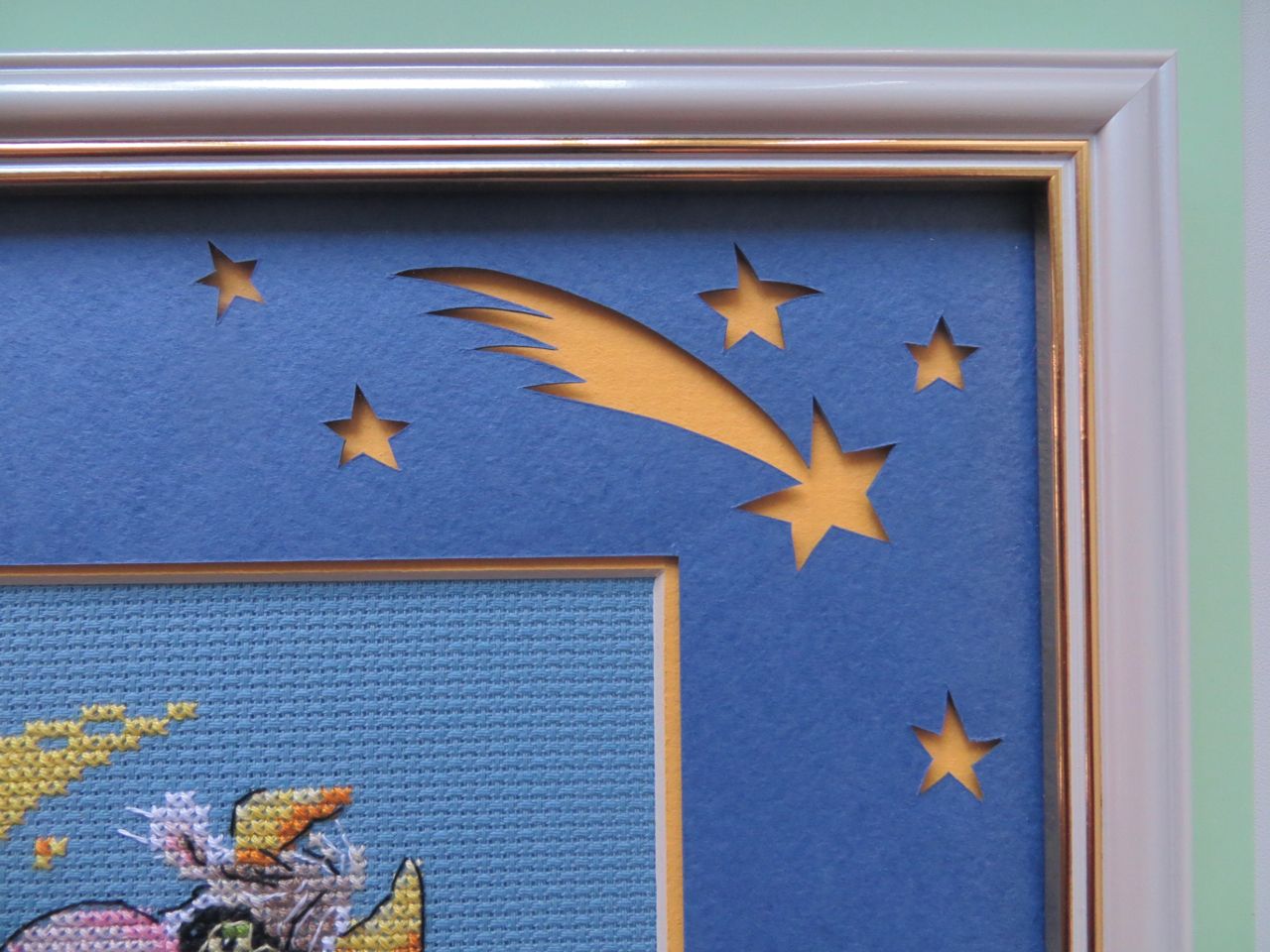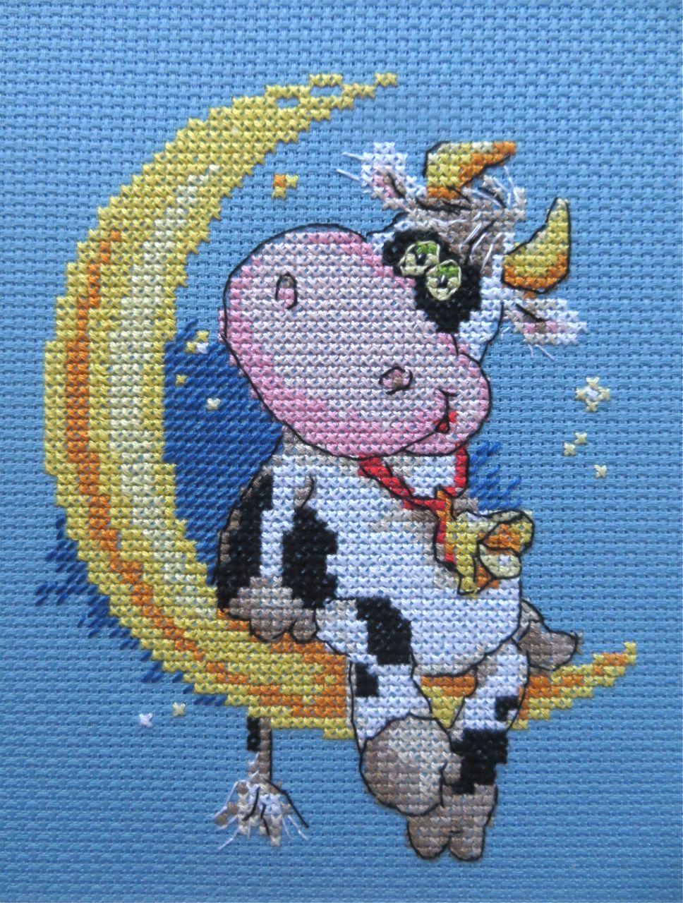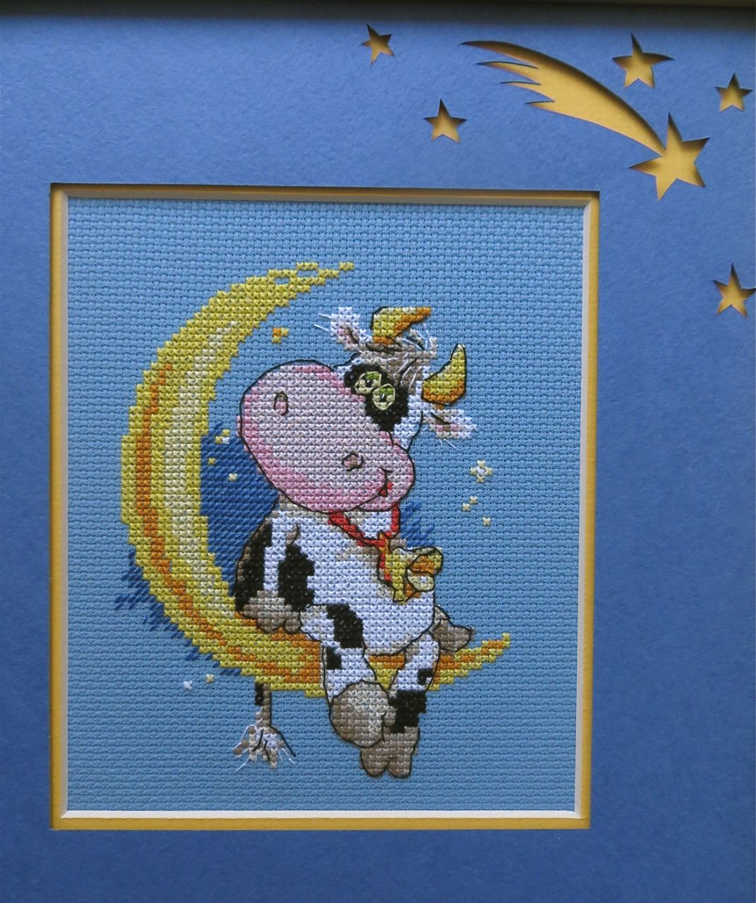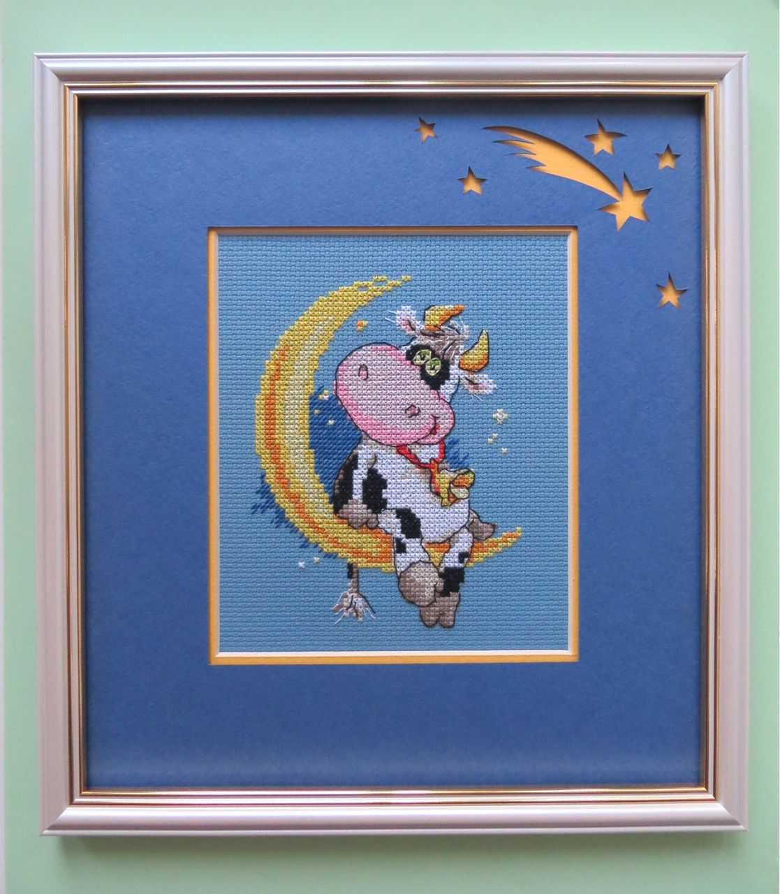 19 мая 2017 У нас после зимы сразу пришло лето! Наконец-то отключили порядком надоевшее отопление. Очень хотелось бы верить, что уже до зимы. На днях получила вышивку, которую отдавала на оформление на "Формуле рукоделия" 16 февраля. Это был своего рода эксперимент, поэтому отдала на пробу малявку -- корову на луне, вышитую еще года три назад. Это набор от "Алисы", называется "Сладких снов!" Вышивалось очень легко, быстро и с отличным настроением. Поневоле улыбнешься, глядя на эту красотку с очаровательными копытцами А какой у нее переливчатый колокольчик на шее! Идея дизайна паспарту - моя. Паспарту со звездами - это своего рода продолжение ночного неба, заданного самой вышивкой. Честно говоря, меня очень смущает блестящий багет. Фото этот блеск не передаёт, но это факт. Ожидаючи оформления, напевала про себя песню "Надежда": "Надо только выучиться ждать, надо быть спокойным и упрямым ... " В интерьер корова не вписывается, поэтому задвинула ее в шкафчик до лучших времен. Naduh, Гало4ка, marusya64 и 11 других сказали спасибо Поделиться сообщением Ссылка на сообщение