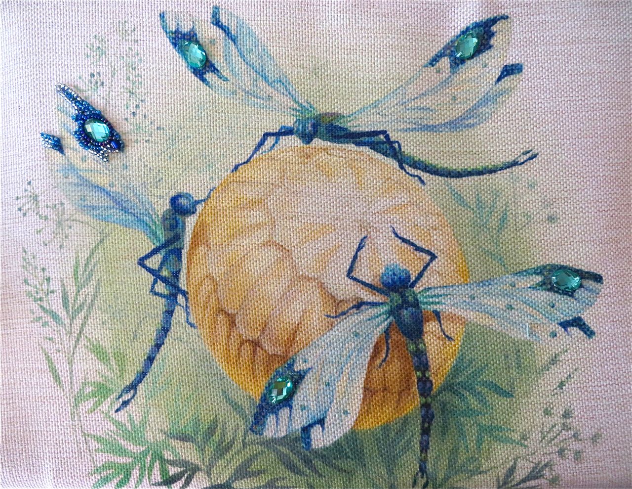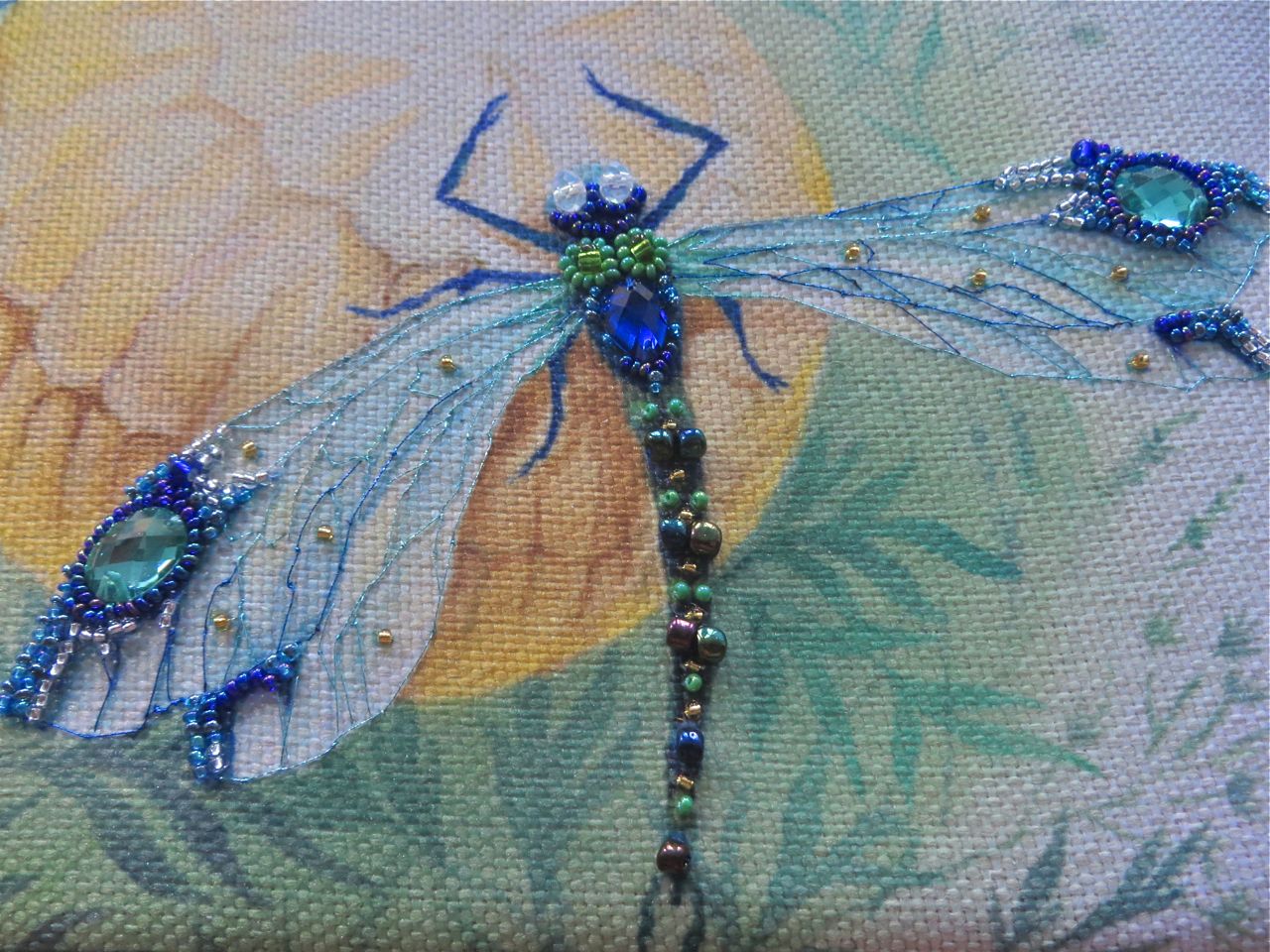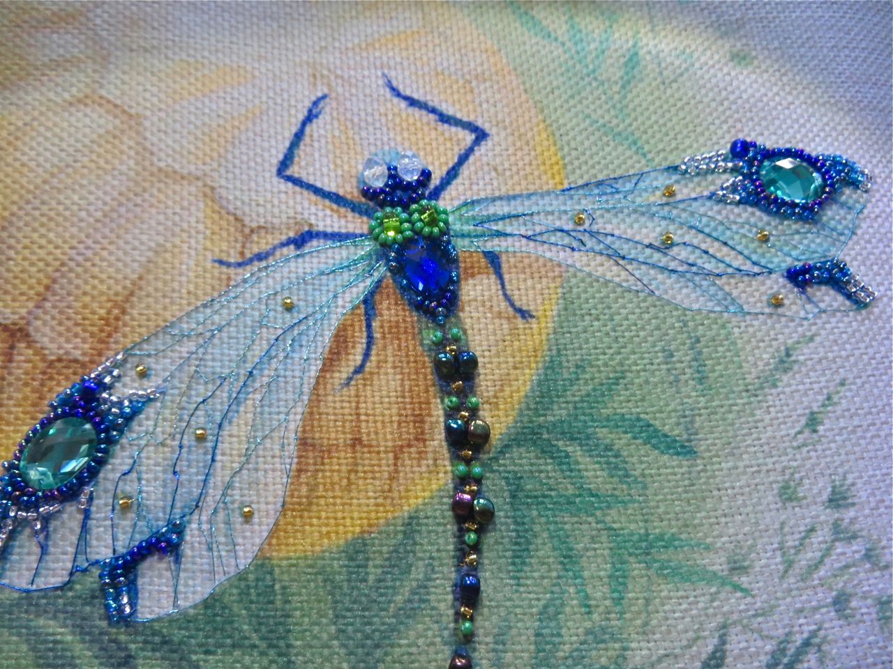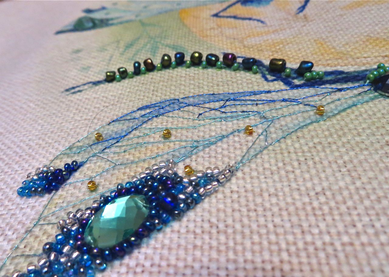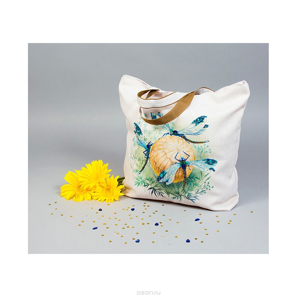 25 мая 2017 Танец стрекоз, или От сумы не зарекайся! (Уважаемые модераторы, фото, размещенные в данном посте, - не для гаечки. Фото для гаечки будут в следующем отдельном сообщении ) Девочки, поздравьте меня с обновкой! Недавно подумалось: отпуск на носу. Пусть и проведу его не у моря, а с родителями, но хотелось бы немного к лету прибарахлиться. Который год лежала у меня заготовка для сумки от "Едренина Матренина Посада", вокруг которой я каждое лето описывала большие круги. Достану, посмотрю на этого монстра размером 41 х 43 см с метровыми ручками -- и сердце от страха сжимается. Запихивала опять куда подальше этот набор с глаз долой. И вот наконец-то набралась мужества и решилась! В прошлое воскресенье разложила на столе все бусины-стразины, чтобы они меня манили и больше не отпускали, пока не сошью себе новую сумку. Все блестело и играло переливами. Лепота! В порыве экстаза распорола все швы, в том числе и подклад, так как сразу поняла, что сумку такого огромного размера мне, во-первых, просто не осилить в прямом смысле этого слова, и, во-вторых, сумка эта предназначена в основном для пляжа, который мне пока что только снится. Зато порка сумки позволила мне закрепить ткань на станке и вышивать с комфортом. Мурча от удовольствия, пришила стразы сначала одного цвета, потом лапа потянулась за второй партией. И тут меня вовремя дёрнуло глянуть на уже вышитые сумочки, выложенные в галерее. Батюшки! Вместо голубых страз на этом месте, оказывается, должны быть зеленые! Все дело в нумерации пакетиков с материалами, которые упаковщик до конца не пронумеровал, а даже то, что пронумеровал, перепутал. Да еще в самой схеме вместо номеров по порядку бисер разного цвета обозначен одной и той же цифрой, только под буквами а) и б). Вот он с перепугу, видимо, перепутал, а потом и вовсе плюнул на это дело - авось, покупатель сам разберется! На этом фото видно, что под № 12 должен быть крейник, а не зеленые стразы. В результате правильно пронумерованным был пакетик под №1. Остальные номера производитель предлагал угадать самостоятельно. В схеме три вида сине-зеленого бисера обозначены одним и тем же символом и практически одного и того же цвета, поэтому вышивала местами по своему усмотрению. Стразы ужасного качества - битые, калеченные, с боков непрокрашенные. Хорошо еще, что всех материалов было положено с избытком, можно было выбирать, а сбоку пришила бисер, поэтому облезлые бока удалось замаскировать Очень понравились цветные камушки, которыми вышивается спинка стрекоз! Они все разноцветные, переливчатые, будто из сказки. Глазки вышиты прозрачными бусинами, крылышки - сине-зеленым металликом. Затем приступила к волшебному желтому цветку-шару. Там вышивать практически нечего, только контуры, но получается эффектно. После этого вышила травинки, накрутив огромное количество фрузелков (слава вышитой ранее овце-рукодельнице, на шерсти которой наупражнялась на этих фрузелках на всю оставшуюся жизнь ). На вышивку ушла половина выходного дня и вечер понедельника. От распоротой сумки осталось донышко, пришивать которое не решилась, не захотев ее утяжелять. В донце был вставлен какой-то интересный материал для придания жесткости, и я, недолго думая, сварганила из него очечник, на котором остатками ниток и бисера вышила стрекозу. Сшила края и - вуаля - новый домик для очков гото