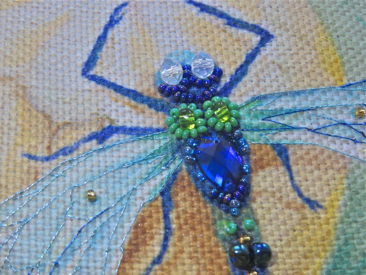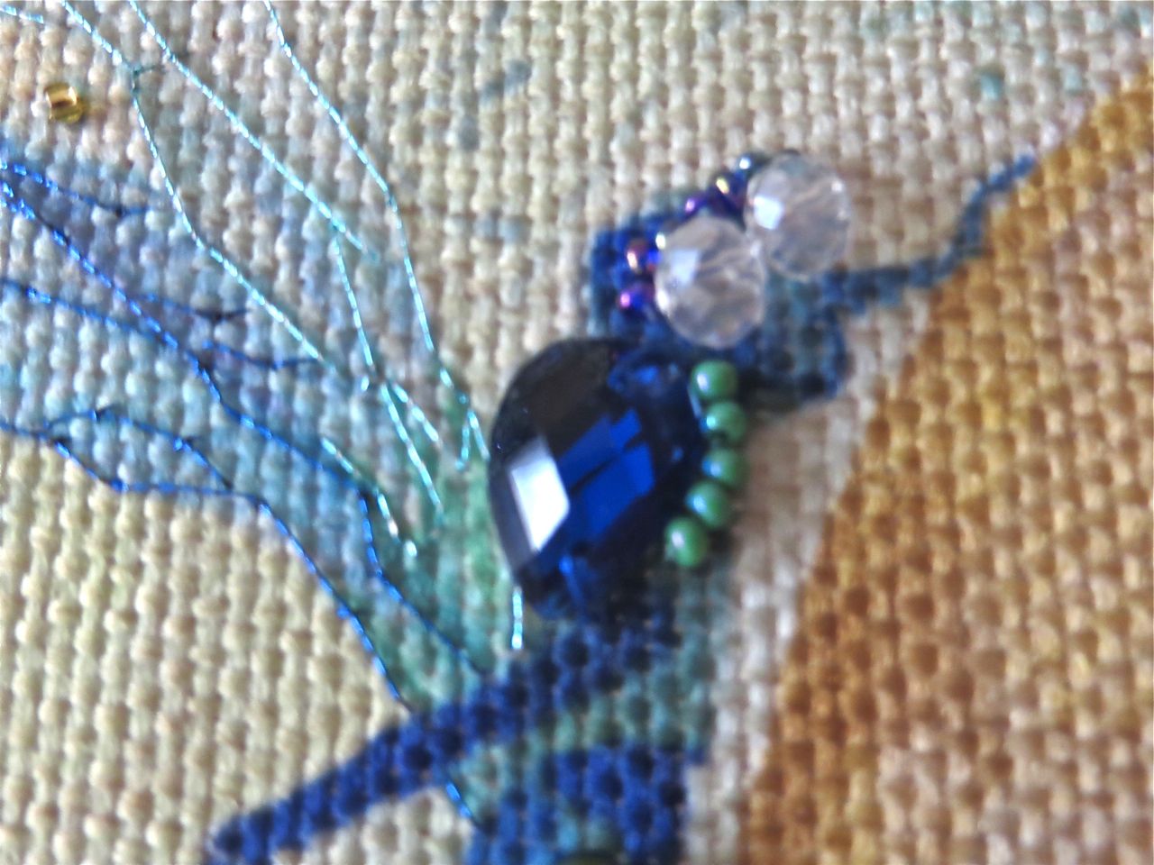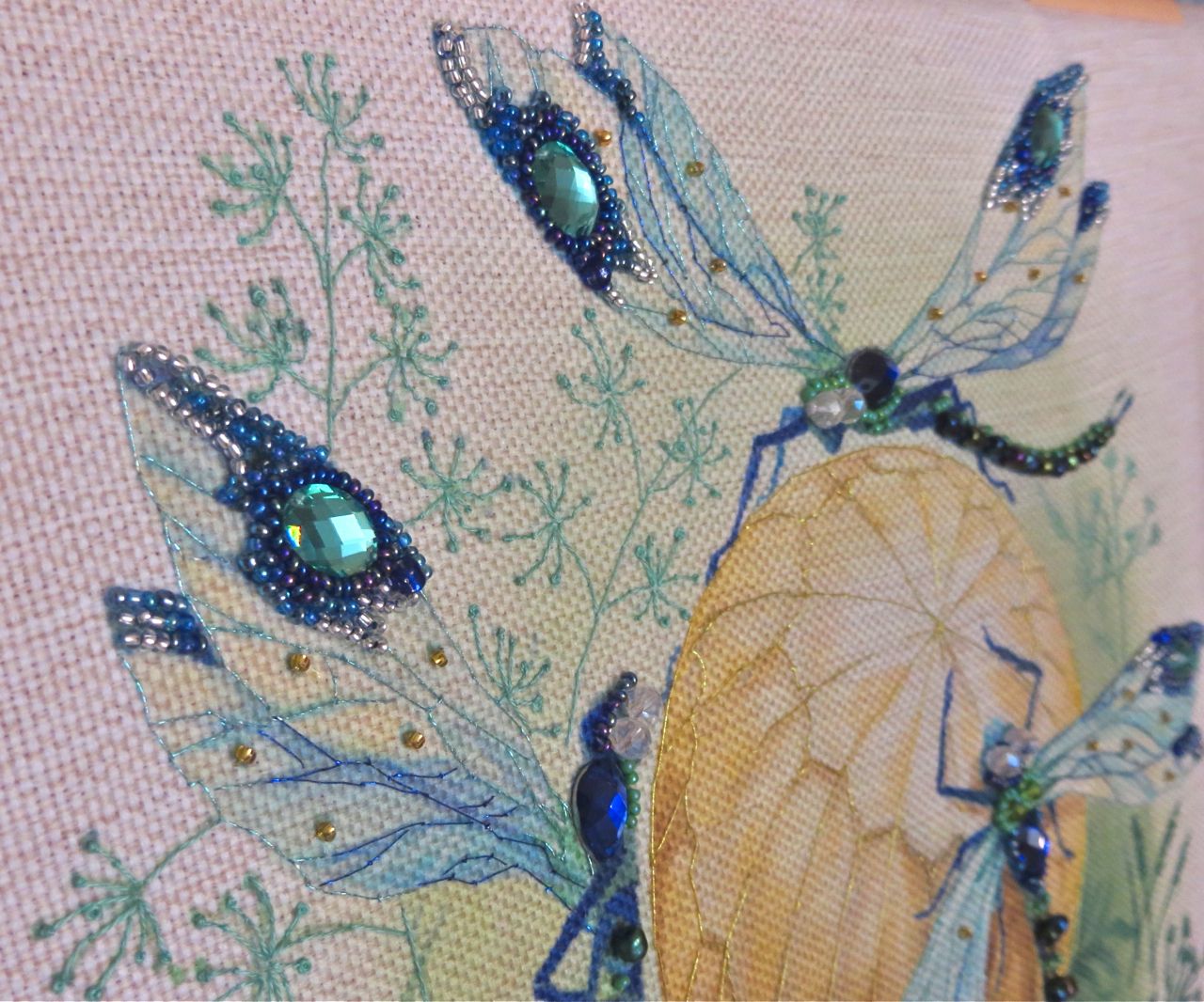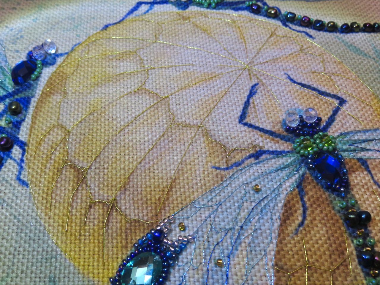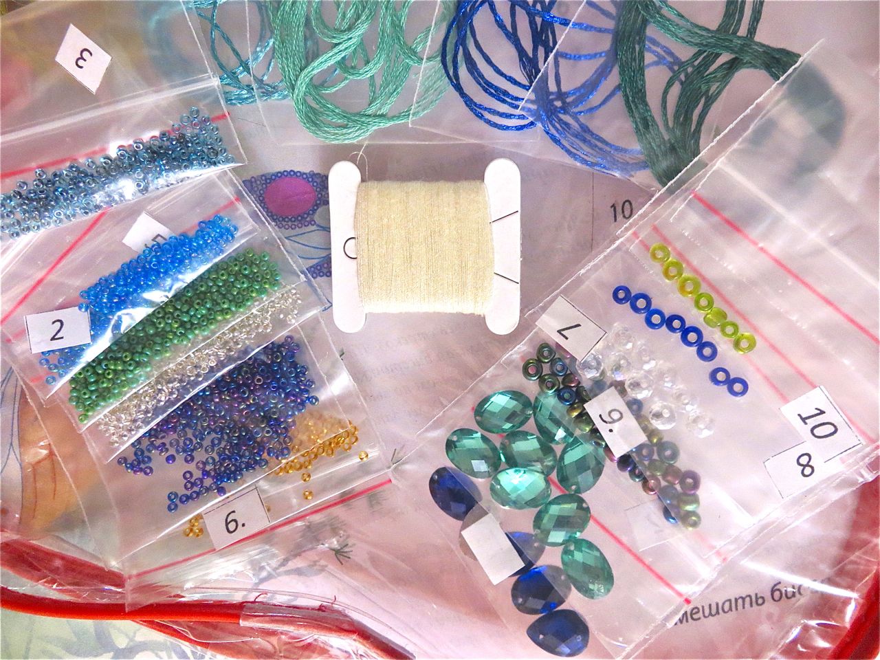 25 мая 2017 Танец стрекоз, или От сумы не зарекайся! (Уважаемые модераторы, фото, размещенные в данном посте, - не для гаечки. Фото для гаечки будут в следующем отдельном сообщении ) Девочки, поздравьте меня с обновкой! Недавно подумалось: отпуск на носу. Пусть и проведу его не у моря, а с родителями, но хотелось бы немного к лету прибарахлиться. Который год лежала у меня заготовка для сумки от "Едренина Матренина Посада", вокруг которой я каждое лето описывала большие круги. Достану, посмотрю на этого монстра размером 41 х 43 см с метровыми ручками -- и сердце от страха сжимается. Запихивала опять куда подальше этот набор с глаз долой. И вот наконец-то набралась мужества и решилась! В прошлое воскресенье разложила на столе все бусины-стразины, чтобы они меня манили и больше не отпускали, пока не сошью себе новую сумку. Все блестело и играло переливами. Лепота! В порыве экстаза распорола все швы, в том числе и подклад, так как сразу поняла, что сумку такого огромного размера мне, во-первых, просто не осилить в прямом смысле этого слова, и, во-вторых, сумка эта предназначена в основном для пляжа, который мне пока что только снится. Зато порка сумки позволила мне закрепить ткань на станке и вышивать с комфортом. Мурча от удовольствия, пришила стразы сначала одного цвета, потом лапа потянулась за второй партией. И тут меня вовремя дёрнуло глянуть на уже вышитые сумочки, выложенные в галерее. Батюшки! Вместо голубых страз на этом месте, оказывается, должны быть зеленые! Все дело в нумерации пакетиков с материалами, которые упаковщик до конца не пронумеровал, а даже то, что пронумеровал, перепутал. Да еще в самой схеме вместо номеров по порядку бисер разного цвета обозначен одной и той же цифрой, только под буквами а) и б). Вот он с перепугу, видимо, перепутал, а потом и вовсе плюнул на это дело - авось, покупатель сам разберется! На этом фото видно, что под № 12 должен быть крейник, а не зеленые стразы. В результате правильно пронумерованным был пакетик под №1. Остальные номера производитель предлагал угадать самостоятельно. В схеме три вида сине-зеленого бисера обозначены одним и тем же символом и практически одного и того же цвета, поэтому вышивала местами по своему усмотрению. Стразы ужасного качества - битые, калеченные, с боков непрокрашенные. Хорошо еще, что всех материалов было положено с избытком, можно было выбирать, а сбоку пришила бисер, поэтому облезлые бока удалось замаскировать Очень понравились цветные камушки, которыми вышивается спинка стрекоз! Они все разноцветные, переливчатые, будто из сказки. Глазки вышиты прозрачными бусинами, крылышки - сине-зеленым металликом. Затем приступила к волшебному желтому цветку-шару. Там вышивать практически нечего, только контуры, но получается эффектно. После этого вышила травинки, накрутив огромное количество фрузелков (слава вышитой ранее овце-рукодельнице, на шерсти которой наупражнялась на этих фрузелках на всю оставшуюся жизнь ). На вышивку ушла половина выходного дня и вечер понедельника. От распоротой сумки осталось донышко, пришивать которое не решилась, не захотев ее утяжелять. В донце был вставлен какой-то интересный материал для придания жесткости, и я, недолго думая, сварганила из него очечник, на котором остатками ниток и бисера вышила стрекозу. Сшила края и - вуаля - новый домик для очков гото