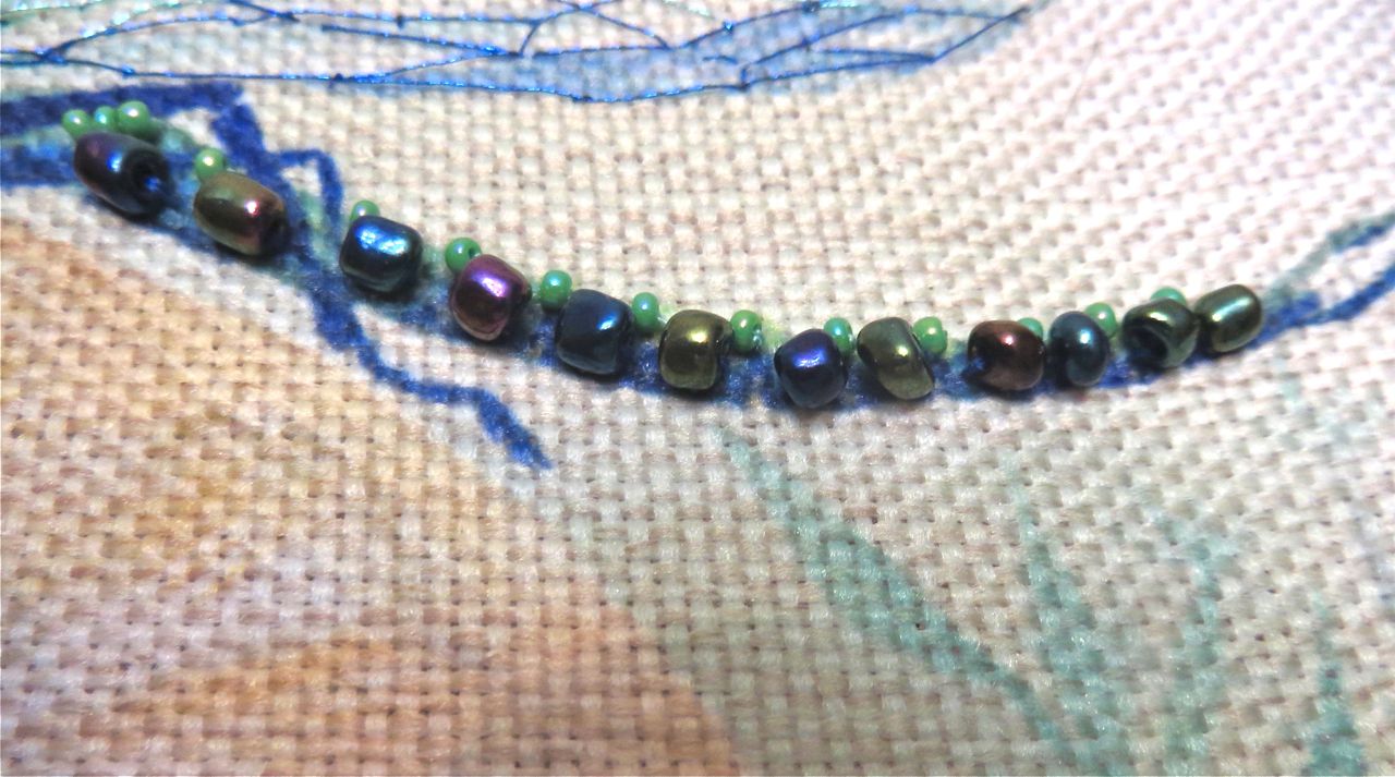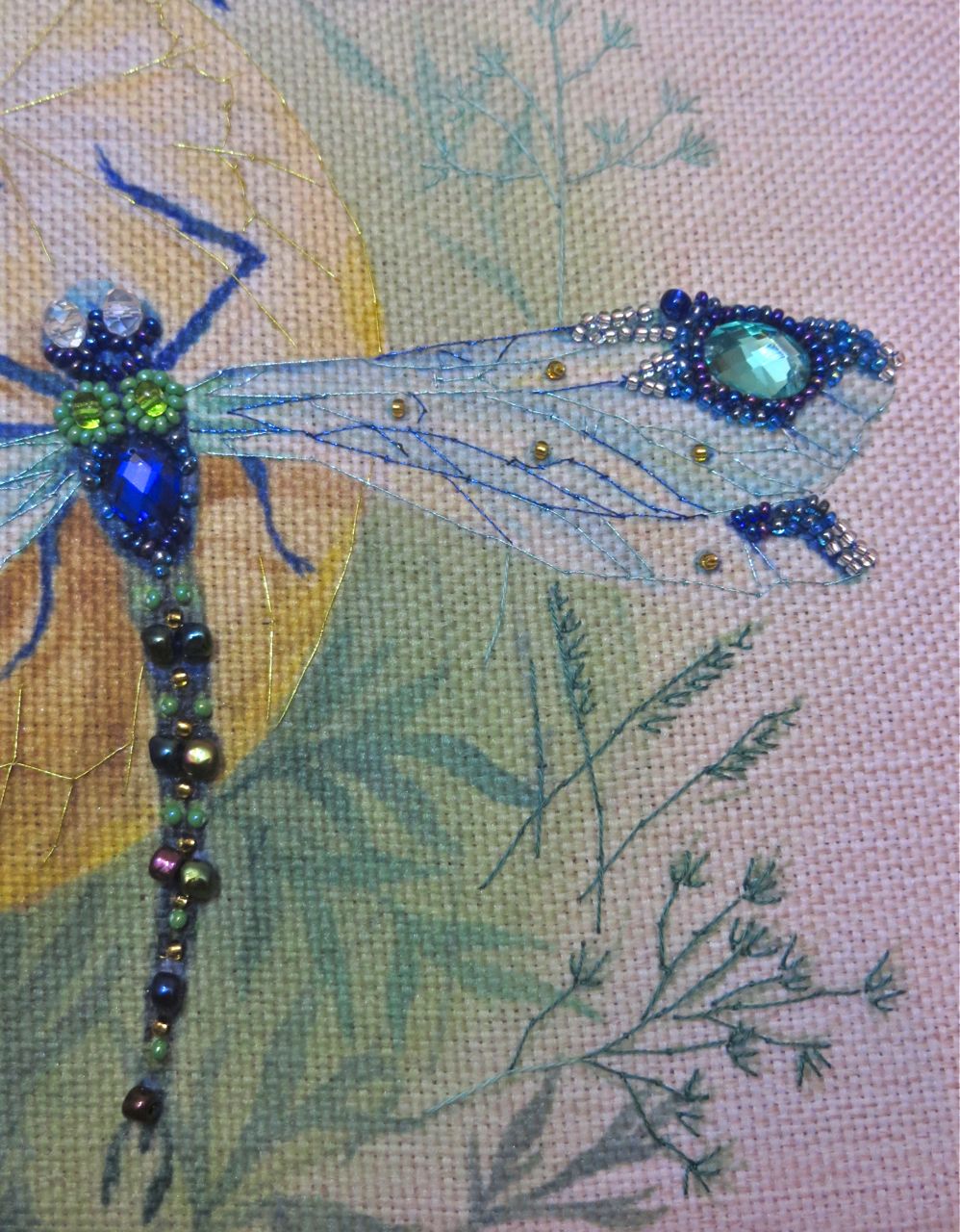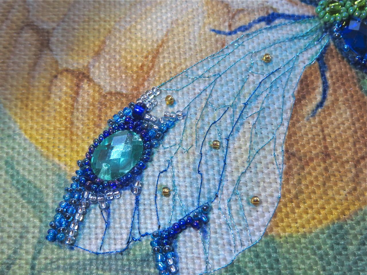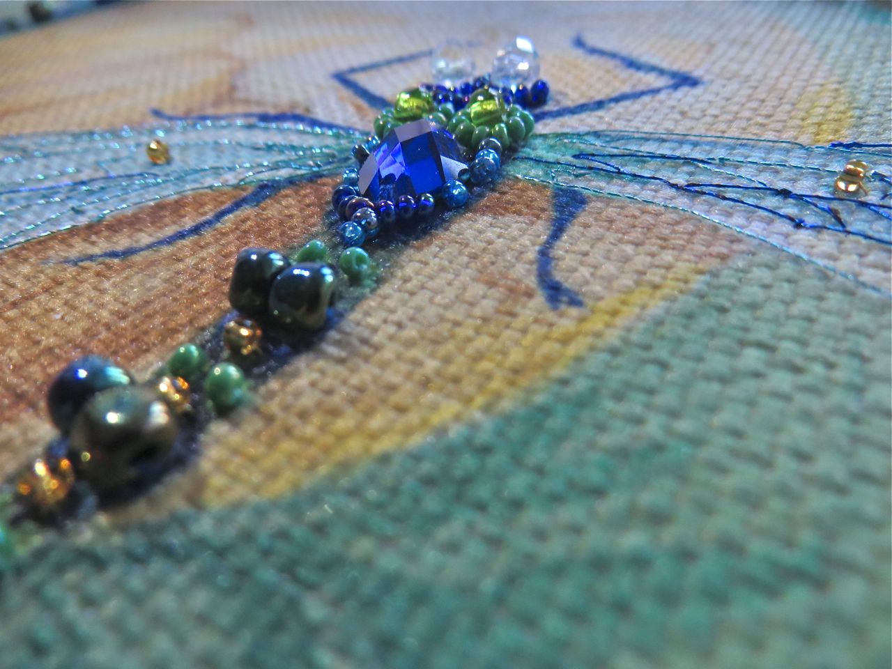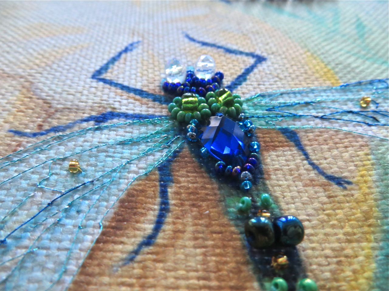 25 мая 2017 Танец стрекоз, или От сумы не зарекайся! (Уважаемые модераторы, фото, размещенные в данном посте, - не для гаечки. Фото для гаечки будут в следующем отдельном сообщении ) Девочки, поздравьте меня с обновкой! Недавно подумалось: отпуск на носу. Пусть и проведу его не у моря, а с родителями, но хотелось бы немного к лету прибарахлиться. Который год лежала у меня заготовка для сумки от "Едренина Матренина Посада", вокруг которой я каждое лето описывала большие круги. Достану, посмотрю на этого монстра размером 41 х 43 см с метровыми ручками -- и сердце от страха сжимается. Запихивала опять куда подальше этот набор с глаз долой. И вот наконец-то набралась мужества и решилась! В прошлое воскресенье разложила на столе все бусины-стразины, чтобы они меня манили и больше не отпускали, пока не сошью себе новую сумку. Все блестело и играло переливами. Лепота! В порыве экстаза распорола все швы, в том числе и подклад, так как сразу поняла, что сумку такого огромного размера мне, во-первых, просто не осилить в прямом смысле этого слова, и, во-вторых, сумка эта предназначена в основном для пляжа, который мне пока что только снится. Зато порка сумки позволила мне закрепить ткань на станке и вышивать с комфортом. Мурча от удовольствия, пришила стразы сначала одного цвета, потом лапа потянулась за второй партией. И тут меня вовремя дёрнуло глянуть на уже вышитые сумочки, выложенные в галерее. Батюшки! Вместо голубых страз на этом месте, оказывается, должны быть зеленые! Все дело в нумерации пакетиков с материалами, которые упаковщик до конца не пронумеровал, а даже то, что пронумеровал, перепутал. Да еще в самой схеме вместо номеров по порядку бисер разного цвета обозначен одной и той же цифрой, только под буквами а) и б). Вот он с перепугу, видимо, перепутал, а потом и вовсе плюнул на это дело - авось, покупатель сам разберется! На этом фото видно, что под № 12 должен быть крейник, а не зеленые стразы. В результате правильно пронумерованным был пакетик под №1. Остальные номера производитель предлагал угадать самостоятельно. В схеме три вида сине-зеленого бисера обозначены одним и тем же символом и практически одного и того же цвета, поэтому вышивала местами по своему усмотрению. Стразы ужасного качества - битые, калеченные, с боков непрокрашенные. Хорошо еще, что всех материалов было положено с избытком, можно было выбирать, а сбоку пришила бисер, поэтому облезлые бока удалось замаскировать Очень понравились цветные камушки, которыми вышивается спинка стрекоз! Они все разноцветные, переливчатые, будто из сказки. Глазки вышиты прозрачными бусинами, крылышки - сине-зеленым металликом. Затем приступила к волшебному желтому цветку-шару. Там вышивать практически нечего, только контуры, но получается эффектно. После этого вышила травинки, накрутив огромное количество фрузелков (слава вышитой ранее овце-рукодельнице, на шерсти которой наупражнялась на этих фрузелках на всю оставшуюся жизнь ). На вышивку ушла половина выходного дня и вечер понедельника. От распоротой сумки осталось донышко, пришивать которое не решилась, не захотев ее утяжелять. В донце был вставлен какой-то интересный материал для придания жесткости, и я, недолго думая, сварганила из него очечник, на котором остатками ниток и бисера вышила стрекозу. Сшила края и - вуаля - новый домик для очков гото