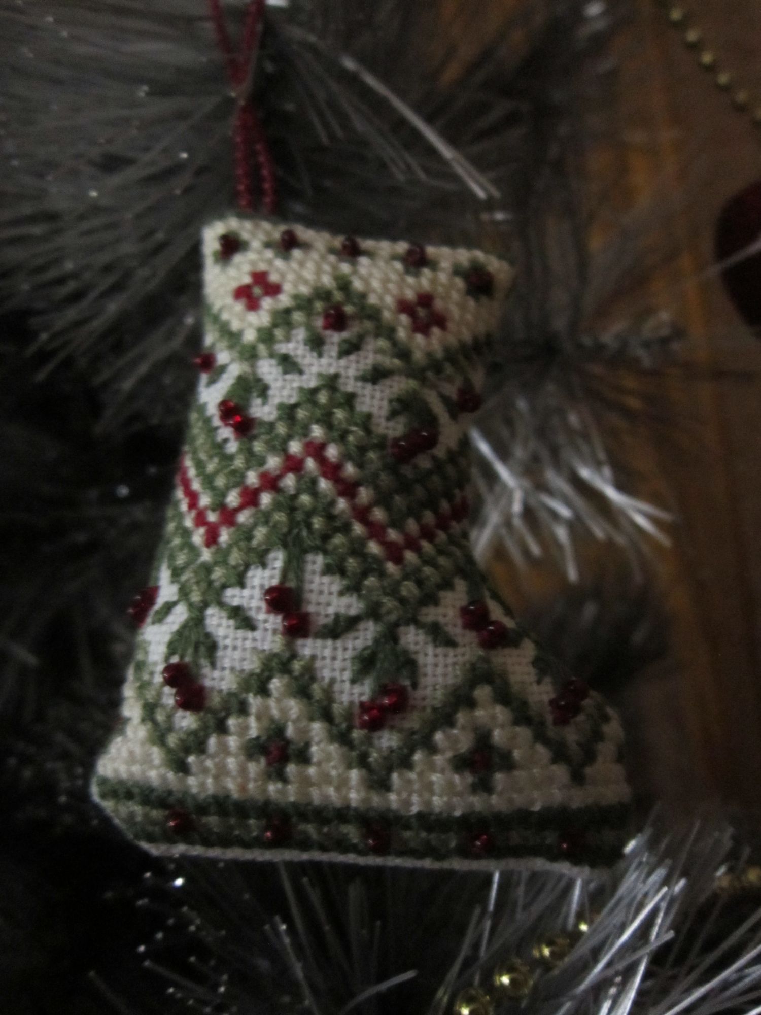 19 декабря 2017 Всем привет! У меня готов носочек-сапожок с вишенками: Он двухсторонний, вышит на равномерке, нитки ДМС и немного бисера. В этом году я участвовала в авантюрке по созданию объемных новогодних игрушек. Звездочку я уже показывала, а вот что у меня вышилось еще:. Это колокольчик, елочка, варежка и парочка совершенно разных сосулек. Елочку я уже нарядила, так как у меня маленький ребенок, то игрушки в этом году на ней висят только мои - никаких стеклянных и прочих небезопасных. Вот она красавица: Девочки, спасибо большое за компанию. solnishko-ym, Tris, Ксен40 и 12 других сказали спасибо Поделиться сообщением Ссылка на сообщение