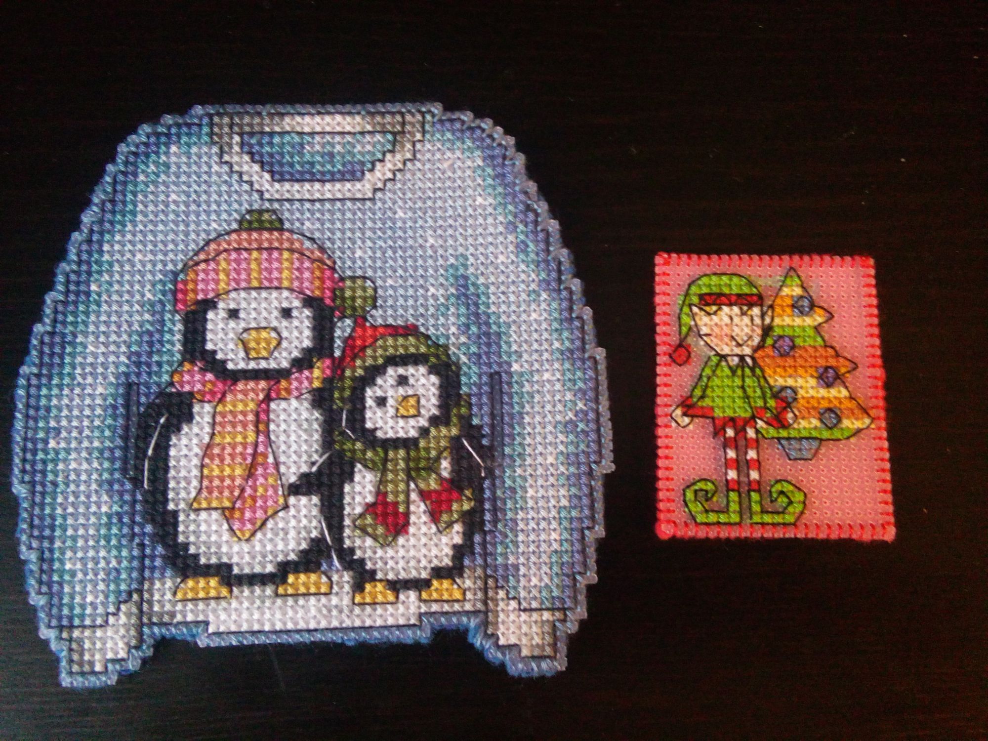 10 марта 2017 На новое задание у меня вышивается бант. На пластиковой канве. Схема с интернета, коричневые тона заменены на красные. Еще не знаю, насколько корректно подобрала, на вышитом участке еще не совсем понятно. Подготовка и начало левой стороны бантика. Хех, цвета с сотового как всегда не соответствуют, даже при дневной съемке. А еще мне безумно понравилась идея, когда шьется бант, вышитый по длинным висящим кончикам, а на некоторых и на обращенных к зрителю частях банта. Даже пару длинных схем вышивок сохранила, подходящих для этого. Только не понятно, как вышивать на шелке или атласе, ибо материал там похож на них. Наверное надо искать выдергивающуюся канву, ибо водорастворимая на такой ткани не представляю как. И это не на елку, а на ручку двери какую или просто для украшения дома приколоть на штору например. О, и еще гномиков нашла, применительно к фартучку на бутылку. Но это так, на будущее. Ну и собственно в честь моего выходного долгожданного. Оформила наконец свой должок. Молй любимый пингвиненок с мороженым. Ну и за компанию ЧКВ-ку, ибо на тройную вышивку хочу гнедую, а не серую. Коник получился крупноват для игрушки елочной, но на стенку пойдет. Killwale, Чивава, Пикусёнок и 13 других сказали спасибо Поделиться сообщением Ссылка на сообщение