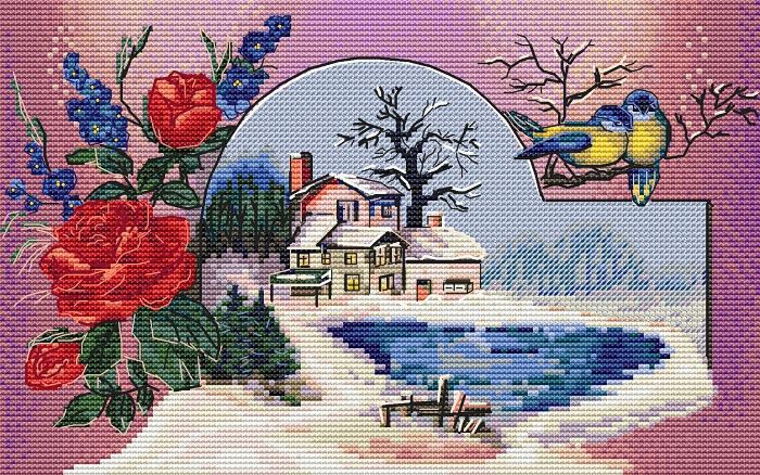 15 декабря 2017 "Яркая зима" Размер: 140x90 крестиков Количество цветов: 33 (из них блендов 19) Палитра DMC. Стежки: крест, полукрест, бэкстич, 3/4 креста, бисер Блендов много,но в данном дизайне они предназначены для создания градиента освещенности,чтоб картинка как бы "выходила из рамки".) kas_julia, monstrochka, ns-milkevich и 1 другой сказали спасибо Поделиться сообщением Ссылка на сообщение