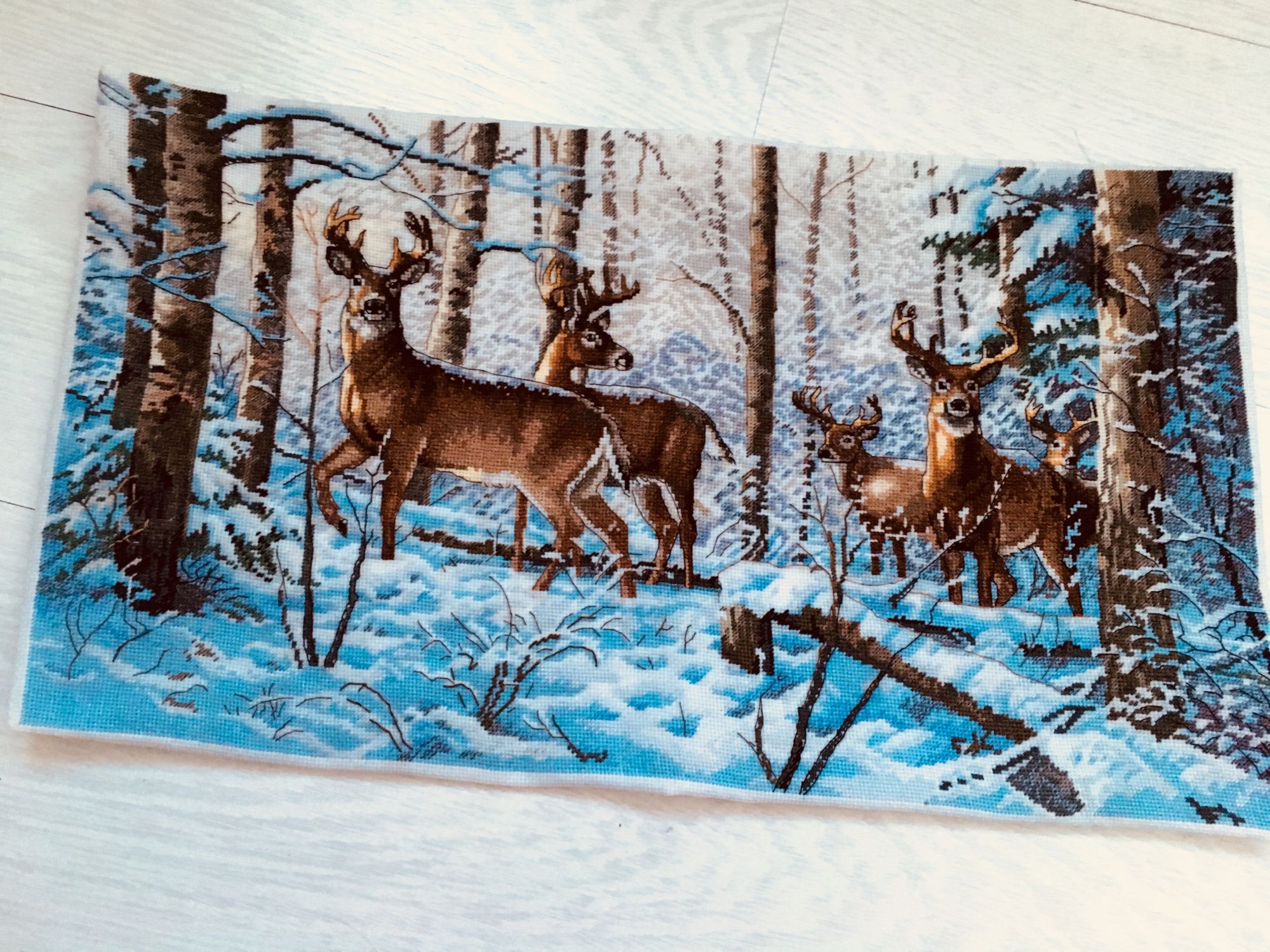 8 декабря 2017 Наконец я с гордостью за саму себя выставляю фотографии своей законченной работы с оленями. навеяло. Закончила данный проект я за 6 с небольшим месяцев. На данный момент это 4 моя работа и самая крупная по размеру. вышивала на 18 каунте я впервые, крестик достаточно меленький, временами мне казалось, что эту работу мне не закончить никогда. Порой я остывала к этой работе, помню сейчас что 2 лист схемы у меня шёл сложнее всего. Хочется богатого оформления для данной работы. Хозяйка смешных зверей, Veta, Sky026 и 7 других сказали спасибо Поделиться сообщением Ссылка на сообщение