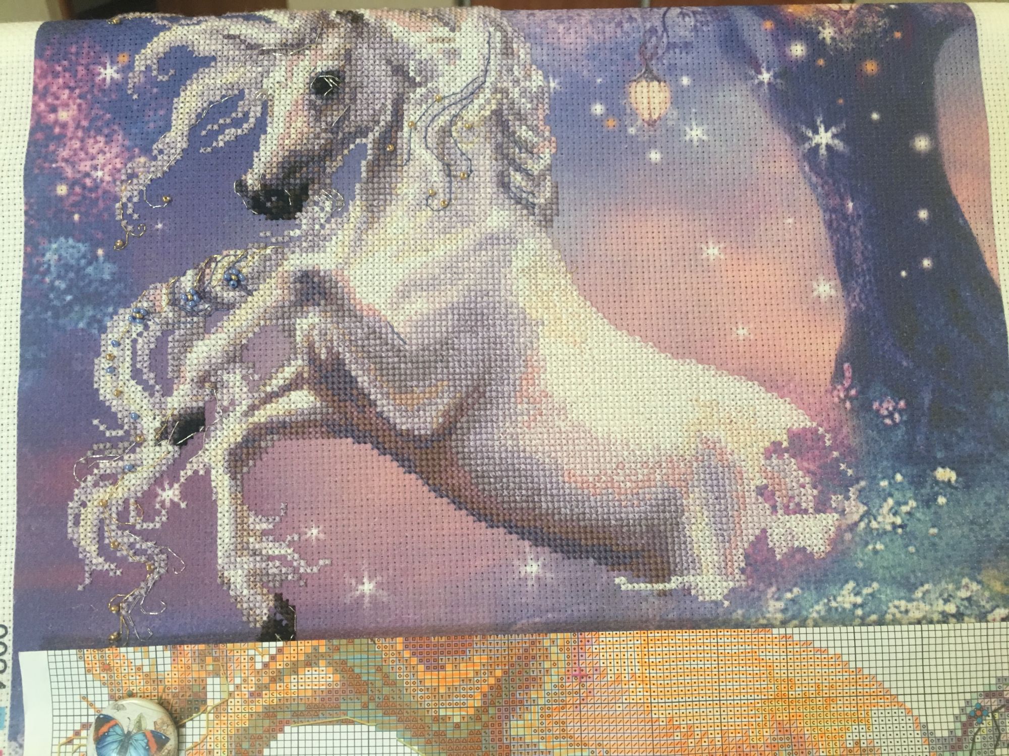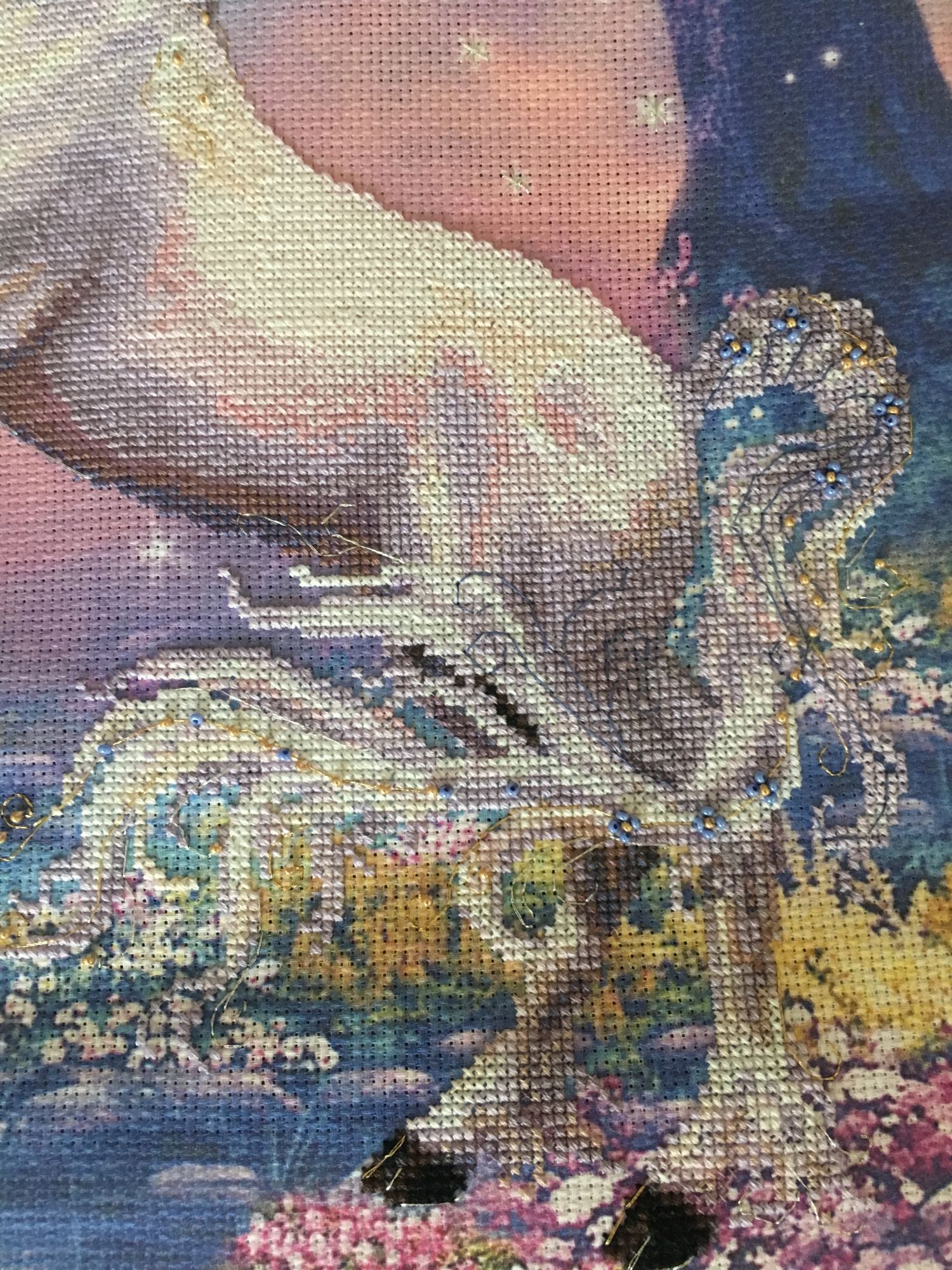 30 января 2018 Привет всем заглянувшим в мою тему. продолжаю вышивать единорога от Риолиса, какой же он получается красивый, нежный и в тоже время очень величественный. вышивать на тонированной канве мне оказалось не просто, не хватает разметки и очень много одиночек и крестиков разного цвета разбросанного в гриве, но результат конечно завораживает. S4astlivaja, TheSunniestDay, ОльгаВл и 5 других сказали спасибо Поделиться сообщением Ссылка на сообщение