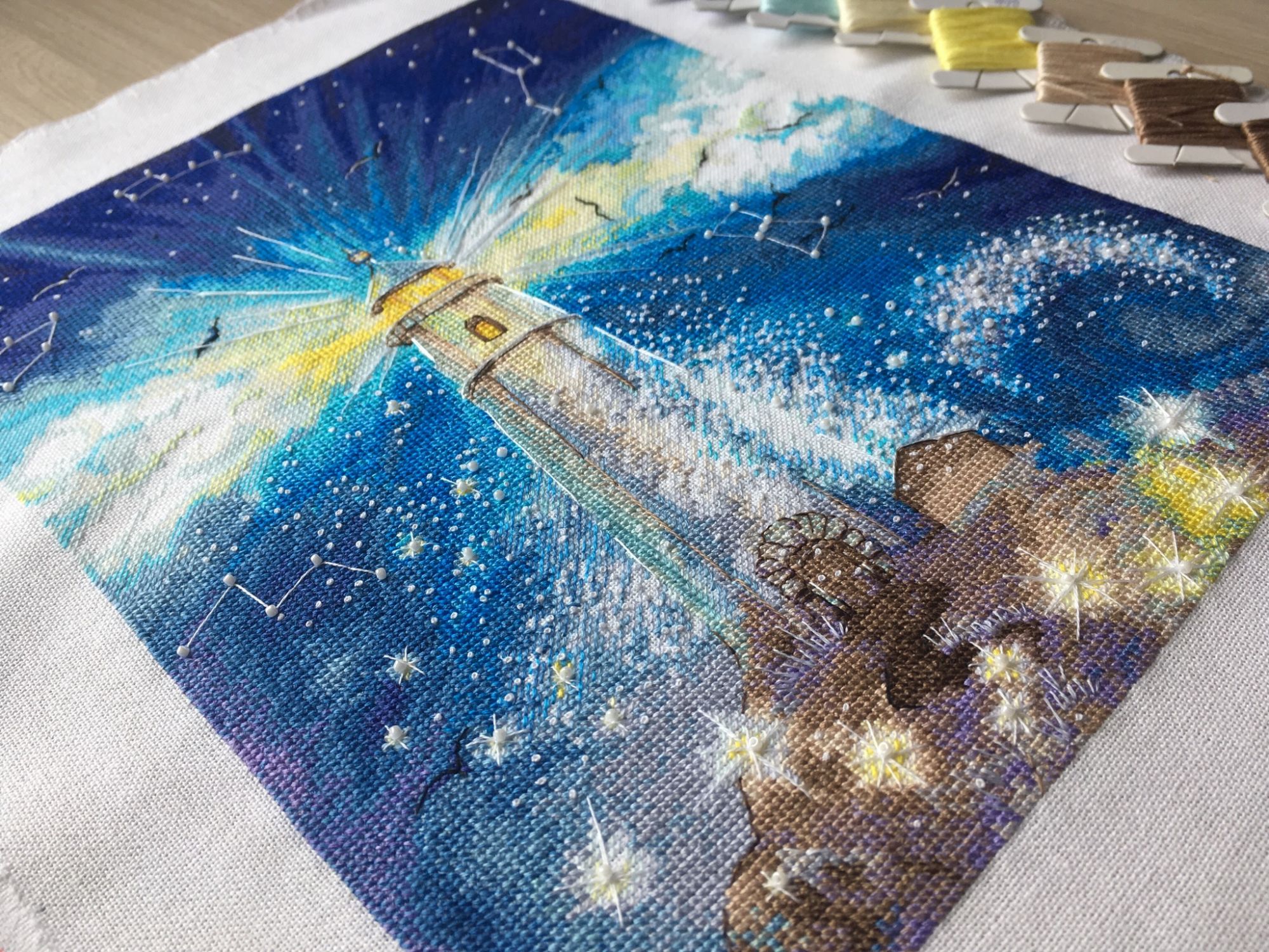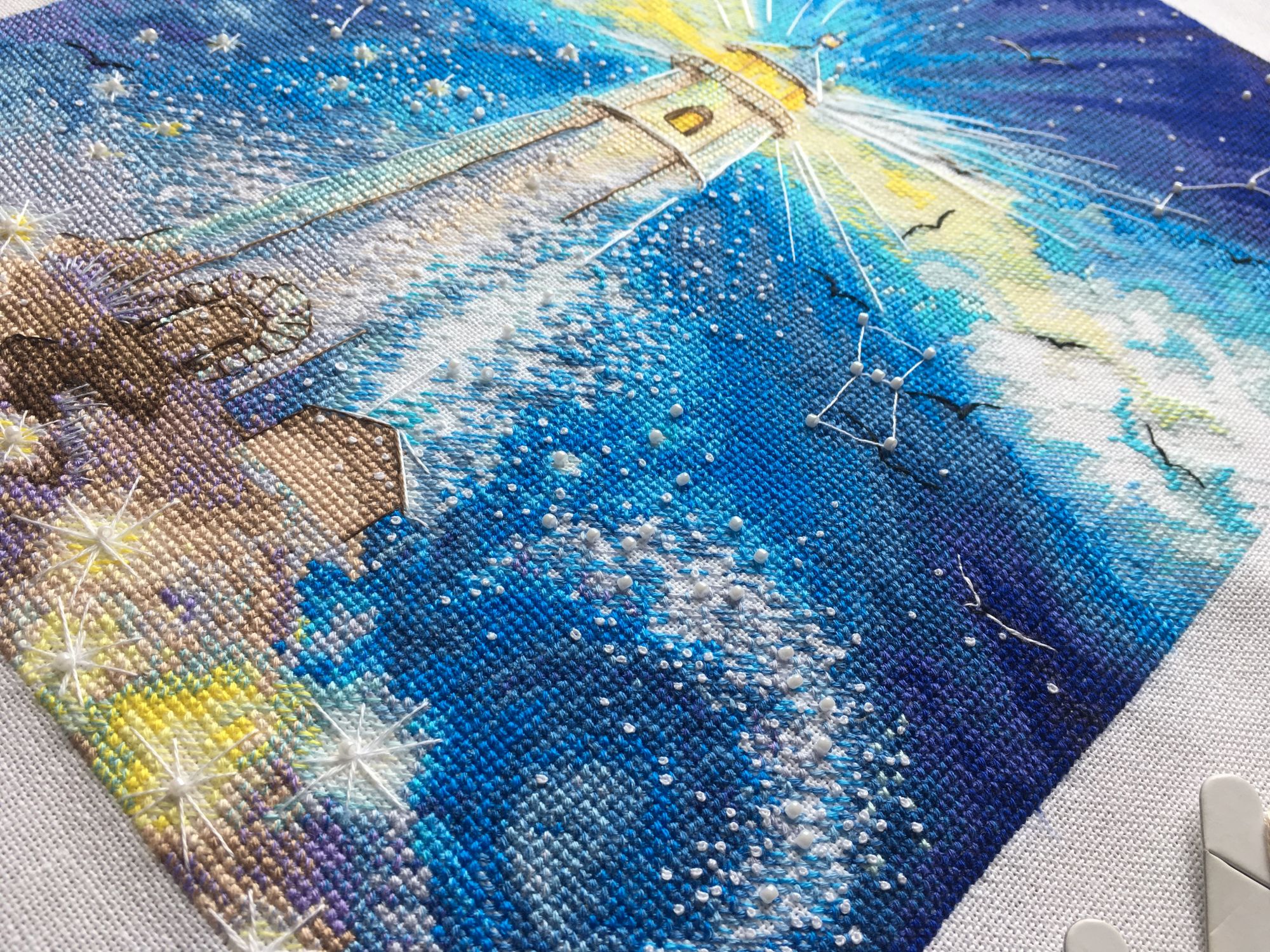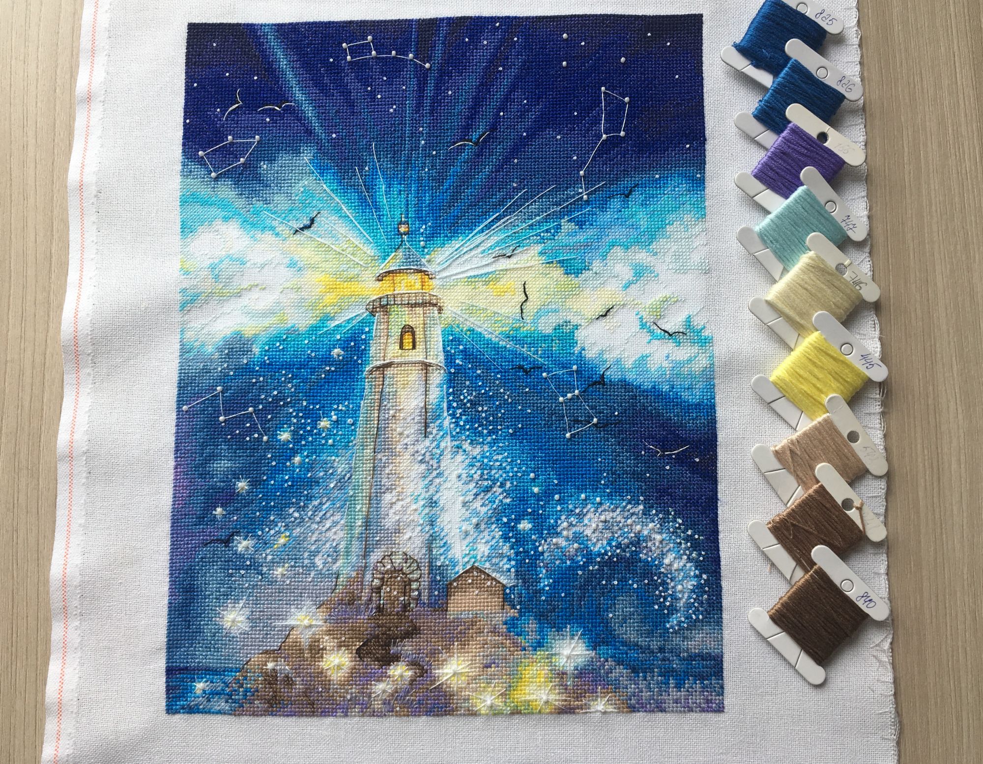 5 мая 2019 Всем привет! 8 апреля закончила «зимний вечер» пока отшивала бэк начала русалочек от Soda stitch SO -G107. Решила разделить на две пары. Вышиваю на Линде белого цвета. Добавила биконусы Swarovski и белый бисер mill hill. 16 апреля начала «Маяк» от Екатерины Волковой. Времени на вышивку мало, продвижения небольшие. Вышиваю на Мурано белого цвета. И я оформила зимний вечер на этом пока всё! Дикая белочка, maui, nata-g и 4 других сказали спасибо Поделиться сообщением Ссылка на сообщение
