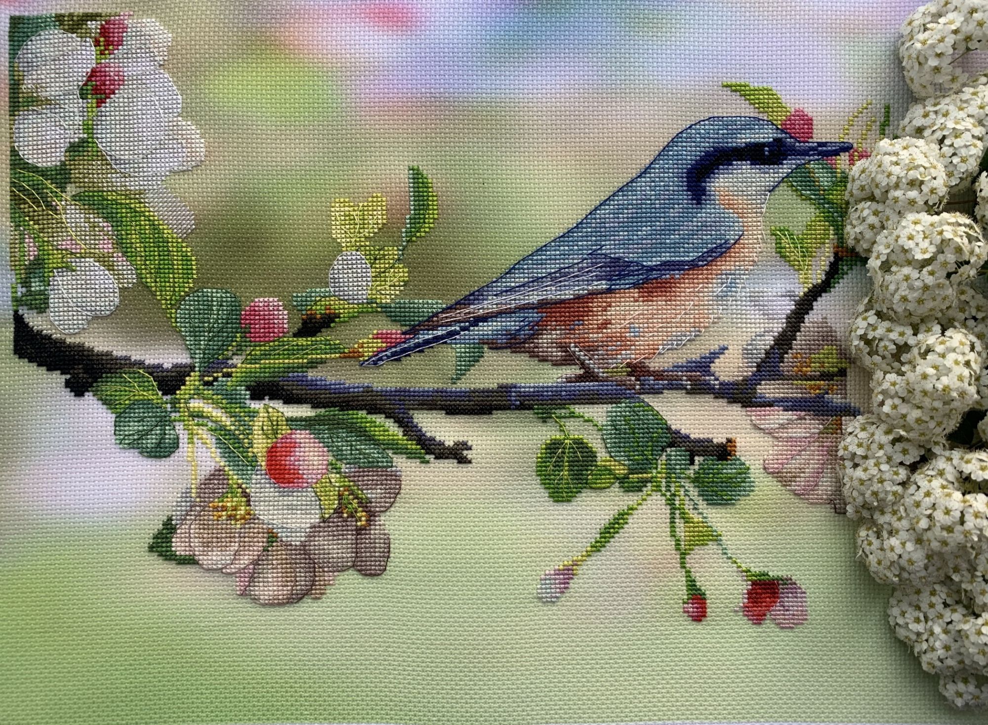 12 мая 2020 Доброе утро! Приглашаю вас выпить чашечку утреннего кофе и посмотреть на мои продвижения по процессам. Начну с самого масштабного процесса - Весенняя веточка обзавелась первым обитателем. Вышила птичку , добавила на ней бэкстич и озеленение , доделала нижние веточки и развернула работу Немного макриков А ещё нашла в инете фото, теоретически ставшее прототипом моей вышивки Согласитесь, есть что-то похожее? Кстати, эта небольшая птаха называется поползень и встретить ее можно практически везде. От птиц к цветам - покажу Тюльпаны от Волшебной страны, которые успели финишировать! окончание процесса и макрики Я в восторге от цветов бисера в этом наборе, настолько сочные и яркие оттенки подобраны! На смену тюльпанам пришли Фиалки от той же Волшебной страны. В противовес предыдущему букетику, в фиалках достаточно спокойные цвета и совершенно потрясающий лазурный фетр для оборотной стороны! На этом все, продолжаем наслаждаться солнышком и ароматом сирени! Спасибо всем заглянувшим, всем тепла, добра и света! И не вздумайте болеть! irchick2308, nata2017, nata-g и 18 других сказали спасибо Поделиться сообщением Ссылка на сообщение