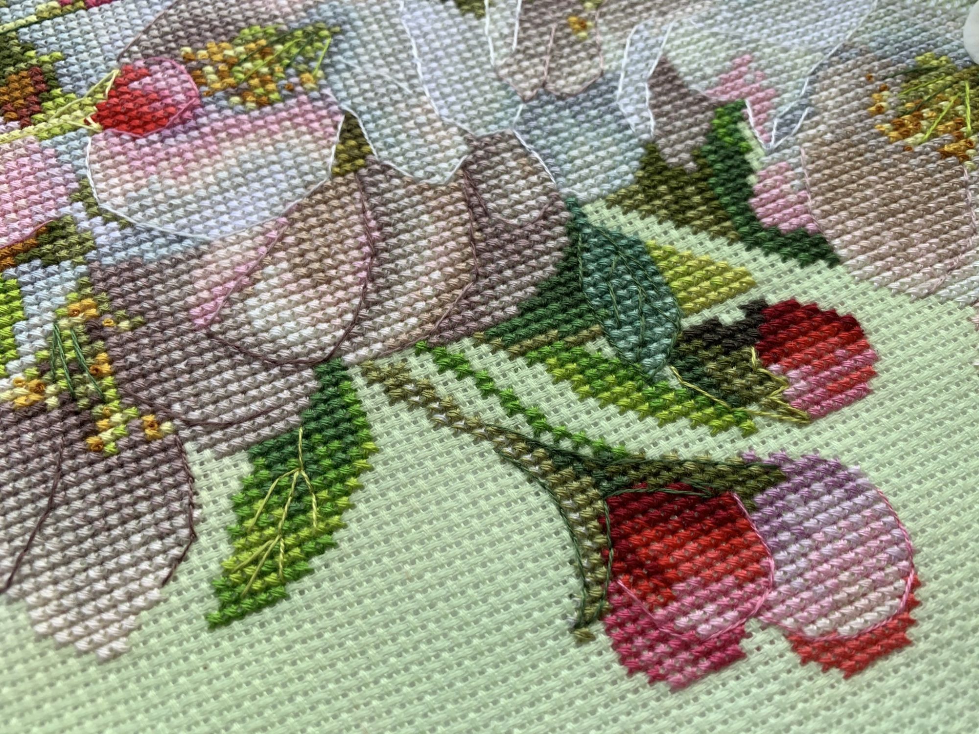 5 августа 2020 Случайно отправила недописанный эпос, поэтому продолжение.... К сожалению, финиш веточки был омрачён нехваткой нескольких цветов ниток, что стало для меня полной неожиданностью! Впервые за восемь лет вышивальной деятельности со мной такое приключилось!!! Ошибок я не делала, больших протяжек тоже, ниточки использую, на мой взгляд, вполне экономно, дошивая каждую до малюсенького хвостика. Но тем не менее, трёх цветов не хватило, подобрала в ДМС и Гамме. Ещё от трёх цветов остались крошечные хвостики, пару цветов хватило, но остаток меньше одной ниточки. Также очень не понравилось качество ниток и канвы, но это уже сугубо индивидуально. Нити в наборе синтетические, жутко пушатся и слоятся на концах. Вставлять каждую нитку в иголку было для меня сущим мучением! Канва хоть и красива напечатанным фоном, но тоже синтетика, с огромными дырами. Есть вопросы и к качеству проработки дизайна в некоторых моментах: очень уж меня смущают бежево-коричневые оттенки на цветах. Дошивала набор на голом энтузиазме и вырожденной упёртости! Мораль сей басни такова: больше я к наборам от Нова Слободы и пальцем не прикоснусь! Дальше о приятном! Теоретически, закончив веточку, можно было взять в отшив один из трёх апрельских стартов. Но это теоретически... А практически получилось так, что на моего супруга напал приступ щедрости (видимо на фоне свалившихся выплат на детей) и у меня «совершенно случайно» оказалась в руках моя давняя хочушка - набор от любимейшего Дима Лес бабочек. И был незамедлительно начат)))) За пару дней вышилась нежно-сиреневая квакозябра , а за неделю - первая веточка сирени и зелень Этот процесс неимоверно прост и приятен!!! А если уж откровенно сказать, то я безумно счастлива, что он оказался у меня в отшиве!!! С вышивальной часть на этом все, покажу немного природы, удачно выбрались на водоём в разгаре лета Немного котика, который прижился, адаптировался и весьма возмужал Немного урожая, виноград особенно вкусный и сладкий этим летом! и цветы от дочи для вас! Спасибо всем, кто дочитал, и за то, что не забываете))) Обязательно зайду с ответным визитом! Всем тела, добра и света! Egelia, nata-g, Leutnant Ripley и 17 других сказали спасибо Поделиться сообщением Ссылка на сообщение