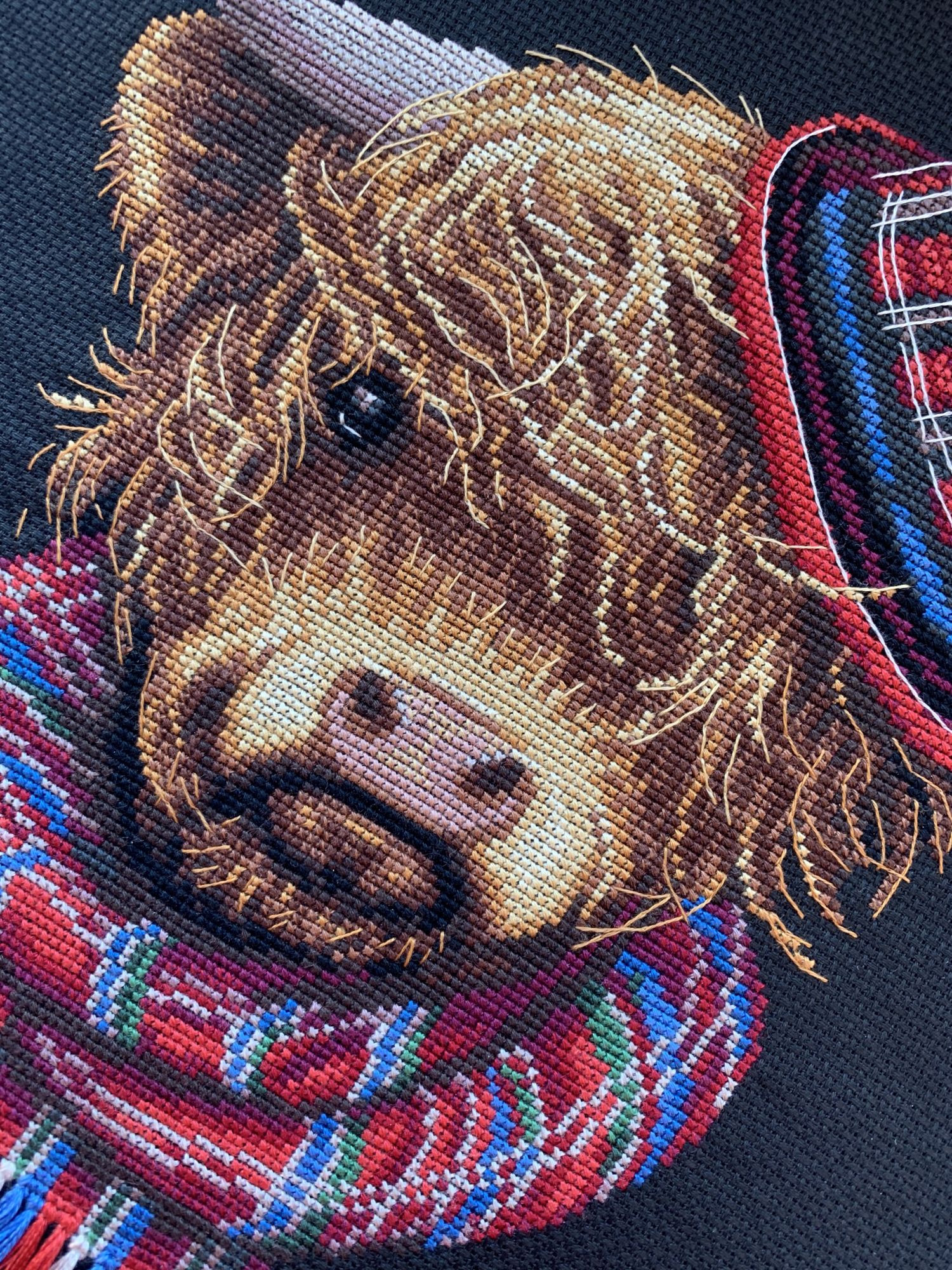 6 декабря 2020 Всем воскресный привет! На улице с каждым днём все холоднее, и Новый год с каждым днём становится все ближе! Признавайтесь, новогоднее настроение уже поймали?! В последние дни осени я закончила стильного быка-брутала от фирмы Панна. Дошила шляпу и шарф Шарф, к слову, оказался самой заковыристой частью этого набора, пришлось повозится со всеми клеточками и складками. Зато каком объемным он получился в итоге! Потом пришёл черёд бэкстича, бахромы и парадного фото))) Бахрому для пущей надежности прошила стежками мононити, чтобы она не распустилась при стирке, ведь оформление, скорее всего, будет прикладным. Конечно же покажу немного макриков Понравилось вышивать этот набор, схема простая, логичная, нитки красивых оттенков, бычок был готов на одном дыхании!!! Но на этом быкотема для меня не была окончена. Потому что был у меня ещё один дизайн с коровками, который нравился очень-очень! И, благодаря Оле Тольне, я решилась на него. Встречайте замечательную парочку от Нани-Студия. Я окрестила их Мурка и Гаврош, почему-то это было первое, что пришло в голову и с тех пор никакие другие имена так и не прижились)))) Будет Есть: могучая грудь и не менее могучая попа Процесс начинала так стремительно, что даже не успела подготовку сфотографировать. За основу взяла канву 18 каунта, это моя первая проба пера на такой мелкой канве, никаких сложностей при ее использовании для себя не обнаружила. Зато сюрпризом стал размер вышивки - только в бычке почти восемь тысяч крестиков, в коровке - ещё пять. Это не считая отделочных стежков, всяких интересных элементов и сборки! Есть огромные сомнения, успею ли закончить эту парочку к Новому году, но буду очень стараться! В конце концов старый и китайский Новый год никто не отменял)))) На этом у меня все, Бантик и Алиса передают вам огромный привет! Всем добра, тепла и света! Selinta, Хозяйка смешных зверей, Juliay и 15 других сказали спасибо Поделиться сообщением Ссылка на сообщение