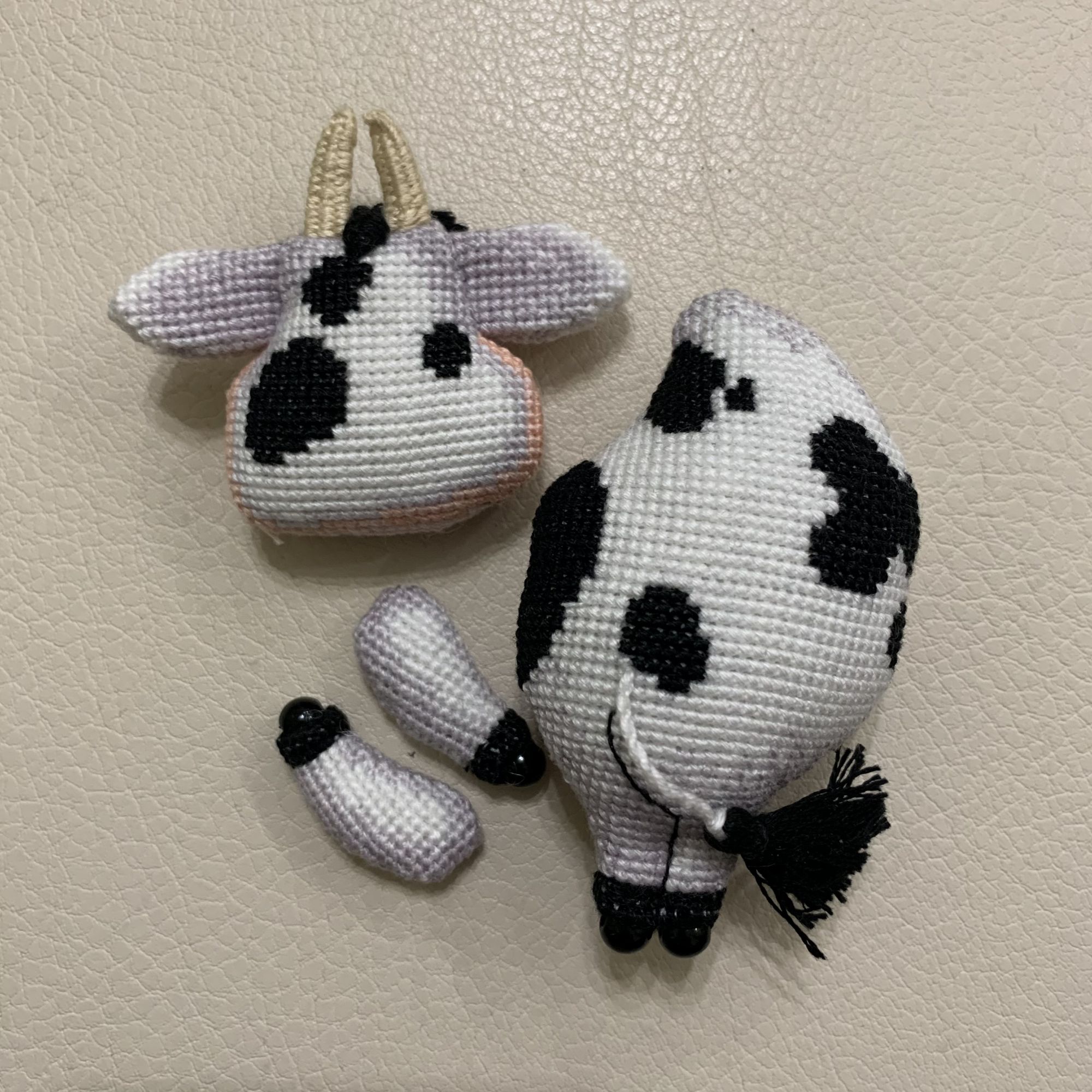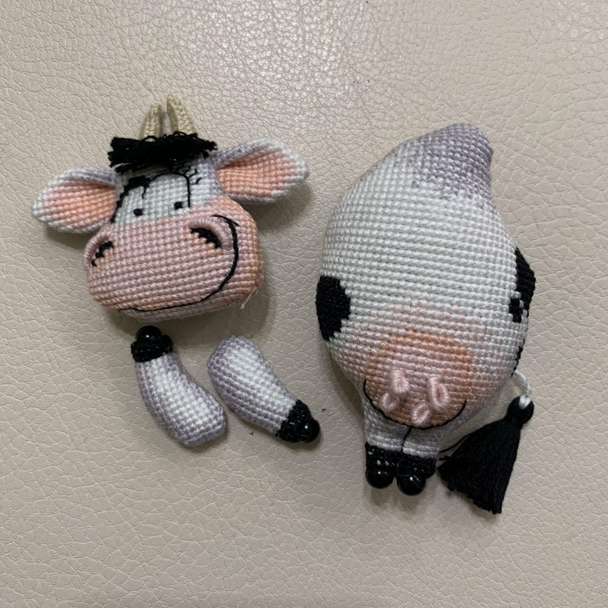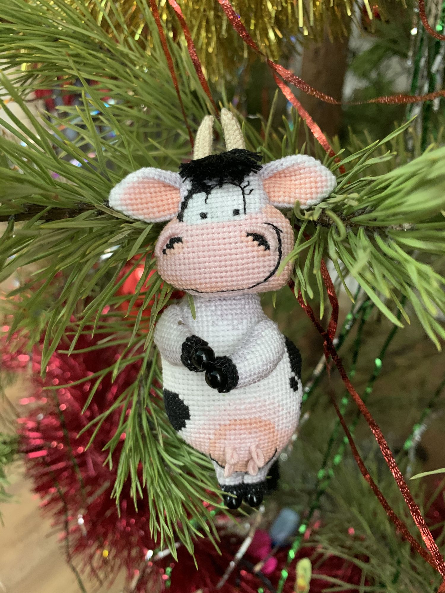 26 декабря 2020 14 часов назад, nata-g сказал(а): Их ты ж какие рожки... Смотрятся сложно, это жеж нужно еще понять, как сделать такое плетение. Без схемы даже не догадываюсь. Кудряхи прикольные у ловеласа. Наташа, рожки совсем несложно плести оказалось, у коровки я уже просто влёт их наплела! Мне сложней всего даётся вроде простая часть сборки-сшивание основных деталей. Канва у меня мелкая, 18 каунта, контурные стежки тоже меленькие получились, поэтому я просто глаза сломала во время сшивания. nata-g и Tata44 сказали спасибо Поделиться сообщением Ссылка на сообщение