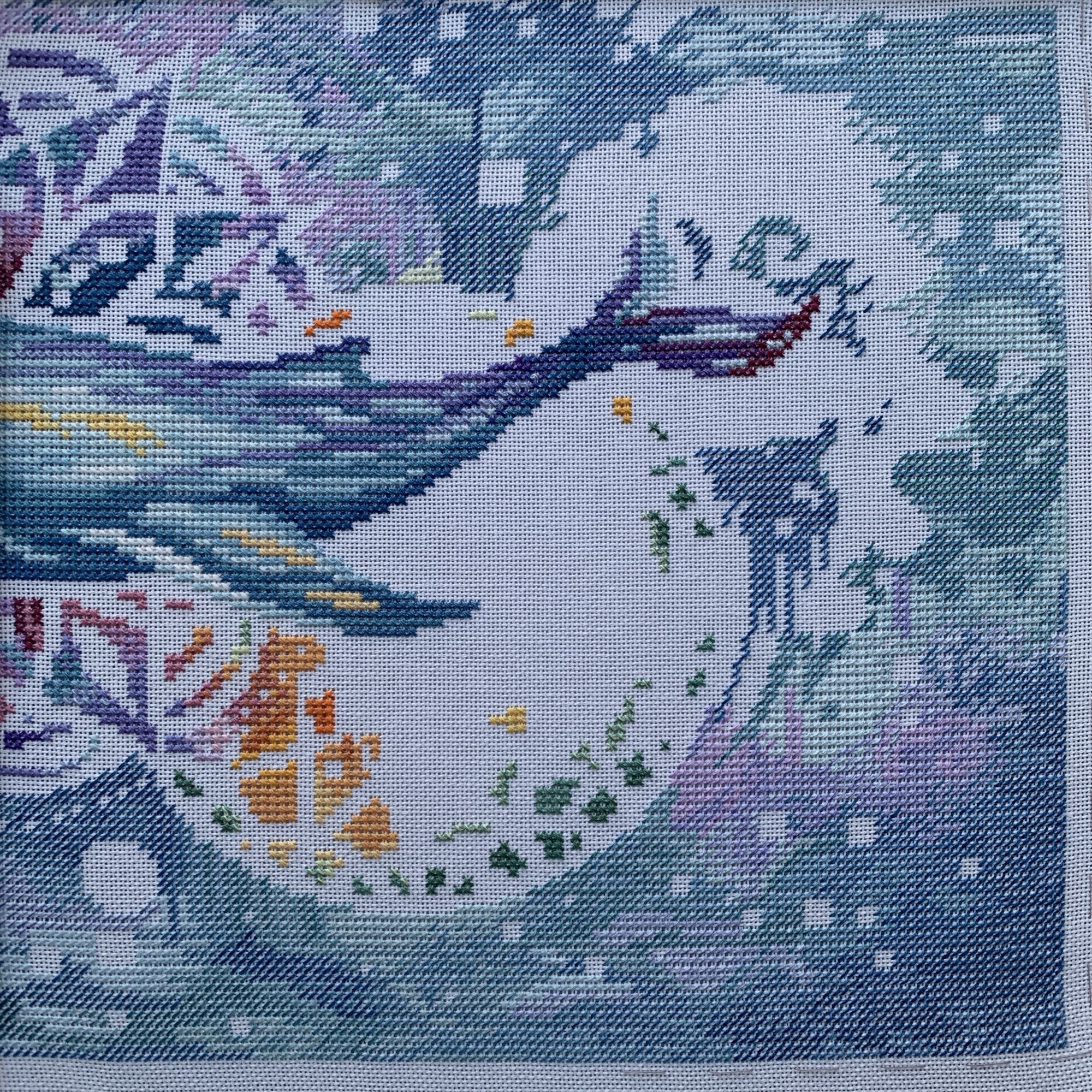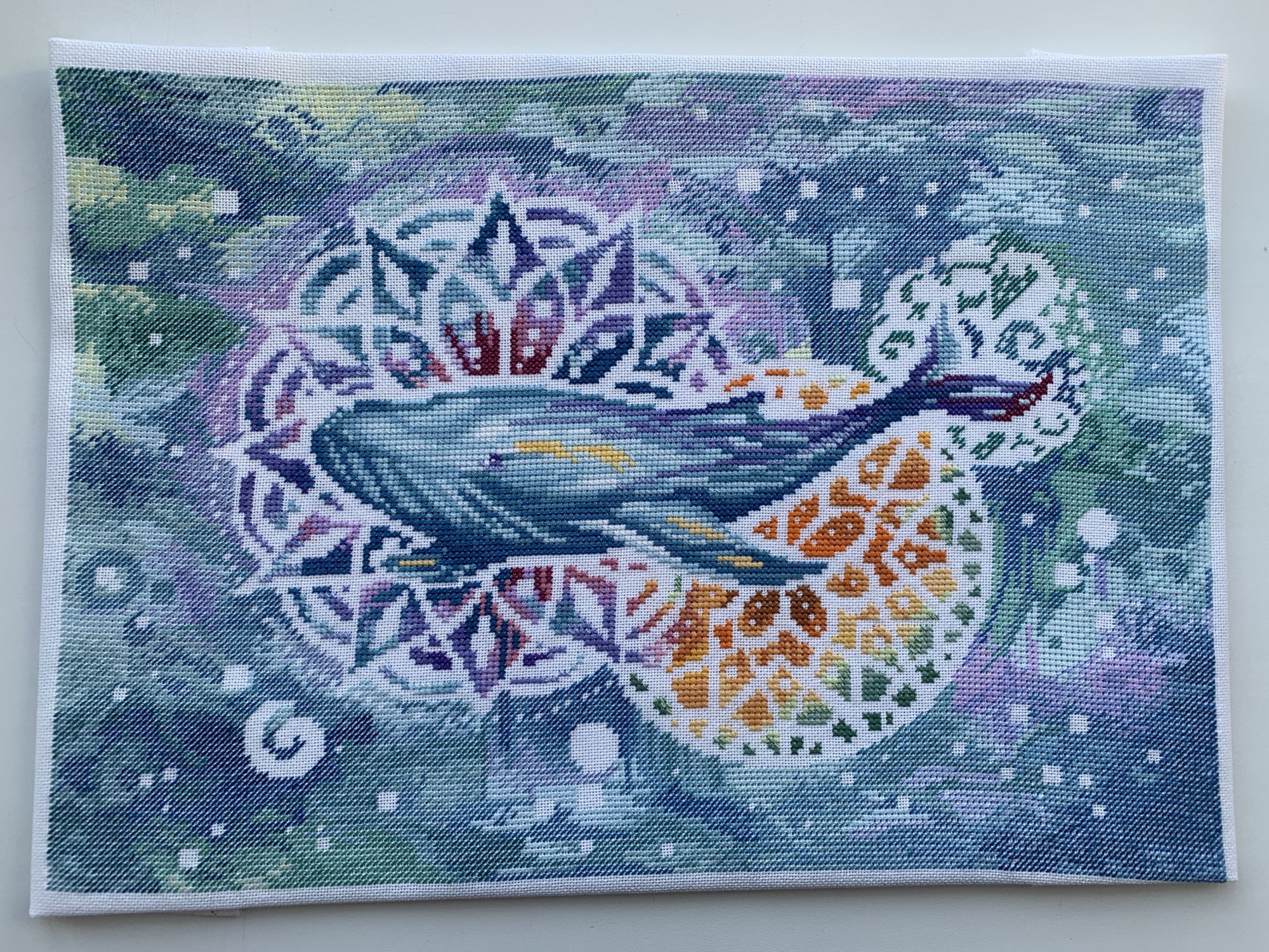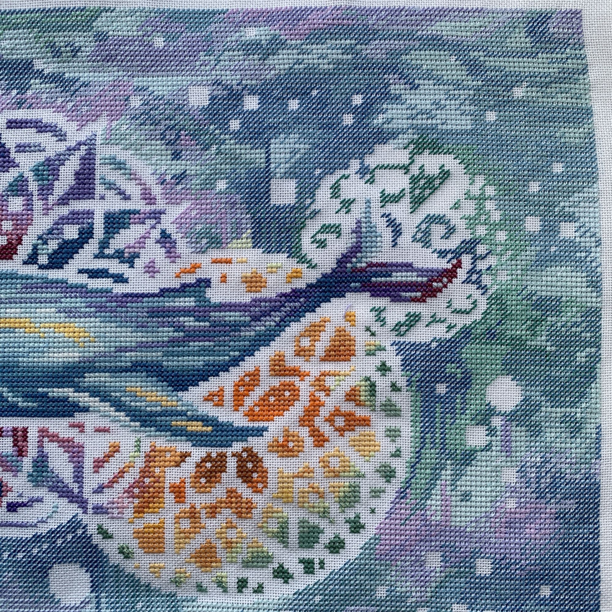29 марта 2022 Девочки, всем огромный привет! У нас сегодня первый солнечный день настоящей весны! Год продолжает удивлять катаклизмами, такого холода в конце марта я не припомню, в воскресенье зарядил снегопад со шквалистым ветром, громом и молнией! А на завтра обещают +25 Так что мы в прямом смысле из сапог переобуваемся в босоножки… На погоду пожаловалась, теперь о вышивальном))) 1. Лавандовое саше. (фото в гаечку, просьба гайку пока не зеленить до сборки) Закончила малютку я довольно быстро, это и понятно с учетом количества крестиков. Пришлось поковыряться с одиночками в мелких букетах, но результат мне очень нравиться! Сборку я отложила до нового урожая лаванды, так что сшивательную часть покажу позднее. 2. Финишировали и безумно симпатичные песчанки от Изабель Вотье. (все фото в гаечку, зеленим! ) процесс: готовая работа: и немного макриков: Я пребываю в полнейшем восторге от этого процесса, от результата, который получился на канве! Получила огромное удовольствие, вышивая этих нахохлившихся птах! Настолько круто подобраны цвета в схеме и так стильно смотрится готовая работа в целом! Обязательно задумаюсь об отшив ещё каких-то дизайнов этого автора, на заметку поставила себе некоторые из них. 3. Кит от Алисы Окнеас продвигается шустро, как и подобает основному процессу))) Собственно у меня готова вся крестиковая часть и осталось вышить километры бэкстича, который я оставила на конец работы, даже не спрашивайте меня почему, ответ на этот вопрос мне неизвестен. Сделала немного макрофото, на которых видны переходы цветов в этом заковыристом круге сансары (ох, и застревала я на нем!!!) По итогу получилось очень интересно, поэтому хотелось запечатлеть сочетание ниток до того, как всю эту красоту закроют линии бэкстича. ….продолжение следует….. irchick2308, Хозяйка смешных зверей, svetlana62 и 10 других сказали спасибо Поделиться сообщением Ссылка на сообщение