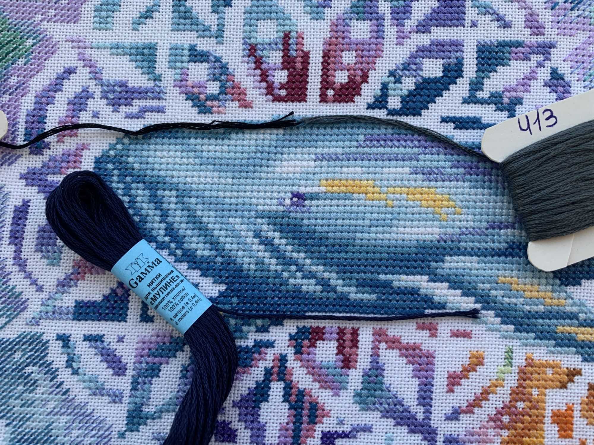 30 марта 2022 7 часов назад, 19199707770 сказал(а): Мне как-то синий ближе, особенно если посмотреть картинку с планшета, там всё такое нежно синее( у меня во всяком случае, ощущения такие!) Я тоже картинку в целом воспринимаю как синию, наверное действительно лучше темно-синий бэк сделать. 7 часов назад, Tata44 сказал(а): Разница небольшая, если черный заменить синим, вполне возможно! Но тогда везде будет темно-синий? Или только у кита? Серый тоже может быть, но мягче будет контраст соседства серого с белыми участками. Если я возьму синий, то везде буду им вышивать, полностью заменю. Серый немного светловат, согласна. У меня есть ещё более тёмный серый, цвет 3799 ДМС, но его не хватит, тут больше пяти тысяч стежков бэкстича. Хотя можно же в Гамме подобрать…. 19199707770 и Tata44 сказали спасибо Поделиться сообщением Ссылка на сообщение