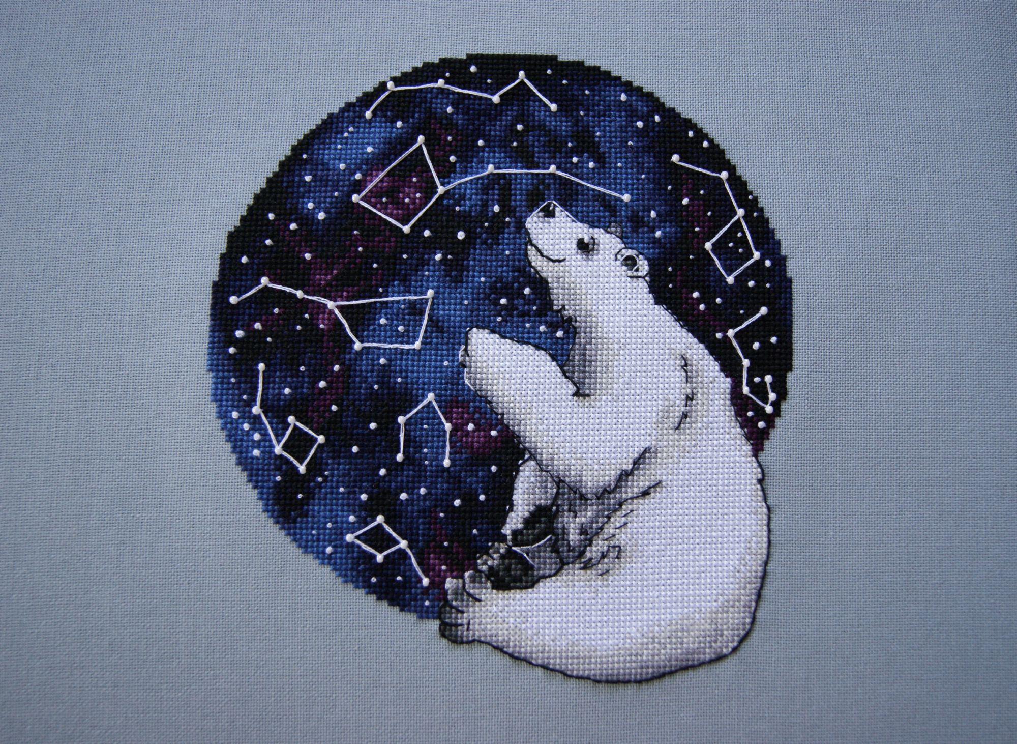 2 июля 2018 Эх,опять я прохлаждаюсь и не выкладываю отчёты,но времени бывает очень не хватает на вышивку,тем более лето на дворе. Кларт "Журавлиная семья".Решила пока сделать фон,чтобы потом перейти к более интересному фрагменту. И начала новый процесс: Белый медведь по схеме Алисы Окнеас.Решила вышивать на голубой равномерке.Идёт не так быстро,как хочется и это всё из-за тёмных оттенков.Так как вышиваю, в основном, по вечерам,то чёрный и тёмно-синий цвета как будто сливаются,поэтому приходится напрягать глаза и постоянно сверяться со схемой,чтобы не накосячить. Но результат должен быть просто шикарным!Всё-таки люблю ночное небо с прекрасными звёздами! IgorekS, Angeltwins, Хозяйка смешных зверей и 8 других сказали спасибо Поделиться сообщением Ссылка на сообщение