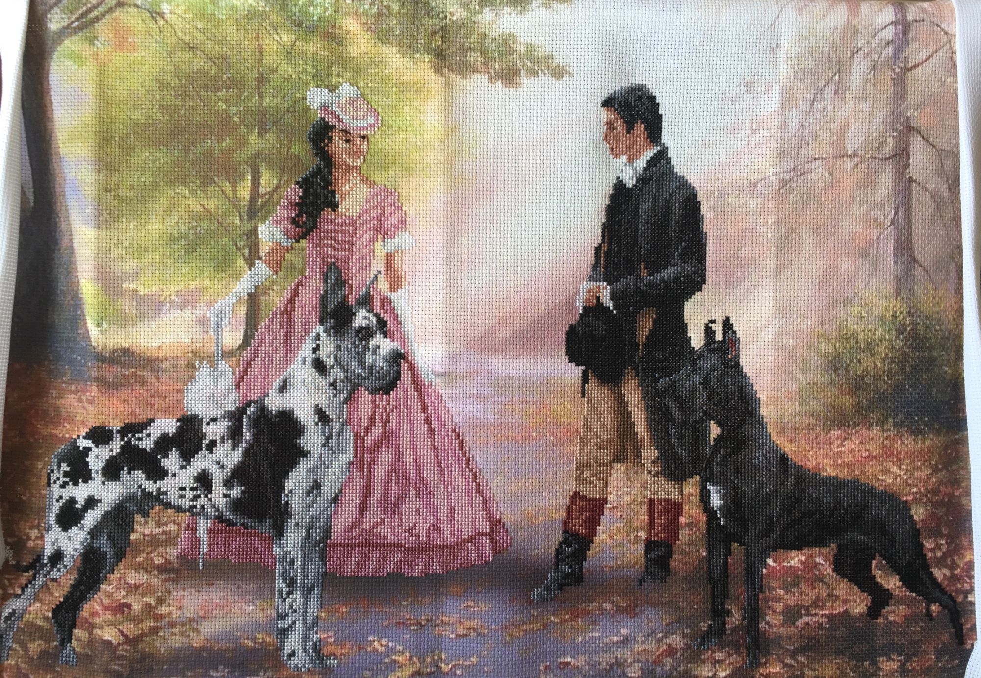13 ноября 2017 Не надеялась доделать до нового года, в итоге завершила в день рождения. Подруга безуспешно взывала к моей совести и тянула праздновать, я же вцепилась всеми зубами в станок, руками в это время докручивая последний французский узелок. Ну что я могу сказать... Этих догов я тянула за хвосты с мая (!!), хотя вышивать тут особо нечего. Вот что означает тяжелая для восприятия схема. Особенно в том что касается переходов с одного листа на другой. Довольна ли я результатом? Спорный вопрос, я сама на него пока что ответить не могу. Вроде бы и неплохо издали, красивенько, атмосфера некая есть. Но чеееерт возьми, какая фигня то по итогу... Бэкстич конечно же не особо заметен, но оно даже и лучше - четких деталей тут нет и конкретно прорисованные резкими штрихами лица сильно контрастировали бы с остальным. Да и люди как бы на втором плане, на собак смотреть надо, на собак! Пока убрала в шкаф - хочу немного подзабыть и достать через пару месяцев. Тогда же доделать цепочку от кулона на шее дамы и решить как быть с сапогом. Ну и может точно определюсь нравится мне эта работа или все же пусть дальше в шкафу лежит. Или оформить и подруге подарить - она слюной заходится при виде этих аристократов. olnikva, Morning, Кисуля и 10 других сказали спасибо Поделиться сообщением Ссылка на сообщение