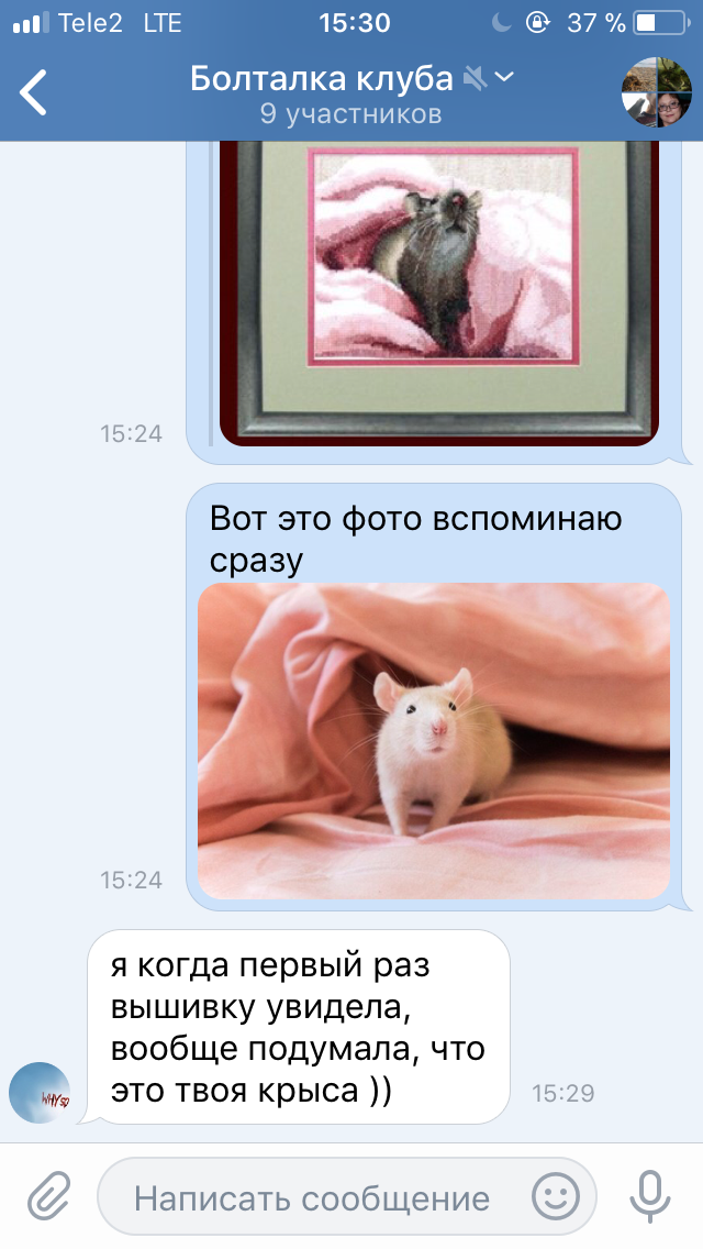 20 февраля 2018 2 часа назад, olnikva сказал: Саш, а герцогиня-то весьма неплохо выглядит! Она меня очень радует, сама не ожидала. Многие ей меняют выражение лица на более «приятное и доброе», но я этого точно делать не буду. 2 часа назад, olnikva сказал: Твои мешки с деньгами - твоя квартира! Все точно по правилам. А крыс этот, на мой взгляд, один из лучших "крысов" в вышивальном мире. Странно, что ты до него еще не добралась. Она моя на полгода точно, дальше ещё не решили как поступить. Может так и останемся со зверьем в ней. Родственники и друзья многозначительно хихикают, всем рассказывая, что «теперь она живет у Гоши». Назвали же попугая Там все под птицу сделано и мне намного проще было собрать крыс и перебазироваться на жилплощадь через квартал, чем забрать крылатого к себе домой и трястись за сохранность мебели и вообще ремонта. А крысу эту я хочу, но все никак «поймать» не могу. Мониторю все закупки местных вышивальщиц на предмет наличия этой крысы и пока что без результатов. Но я ее обязательно хочу вышить по причине наличия у меня вот таких фотографий маленьких Флёр и Виски: Фотографировала до того, как узнала о существовании этой крысы в мире вышивки. Так что было особо волнительно о этом наборе узнать Catopuma, Хозяйка смешных зверей, Елена71 и 12 других сказали спасибо Поделиться сообщением Ссылка на сообщение