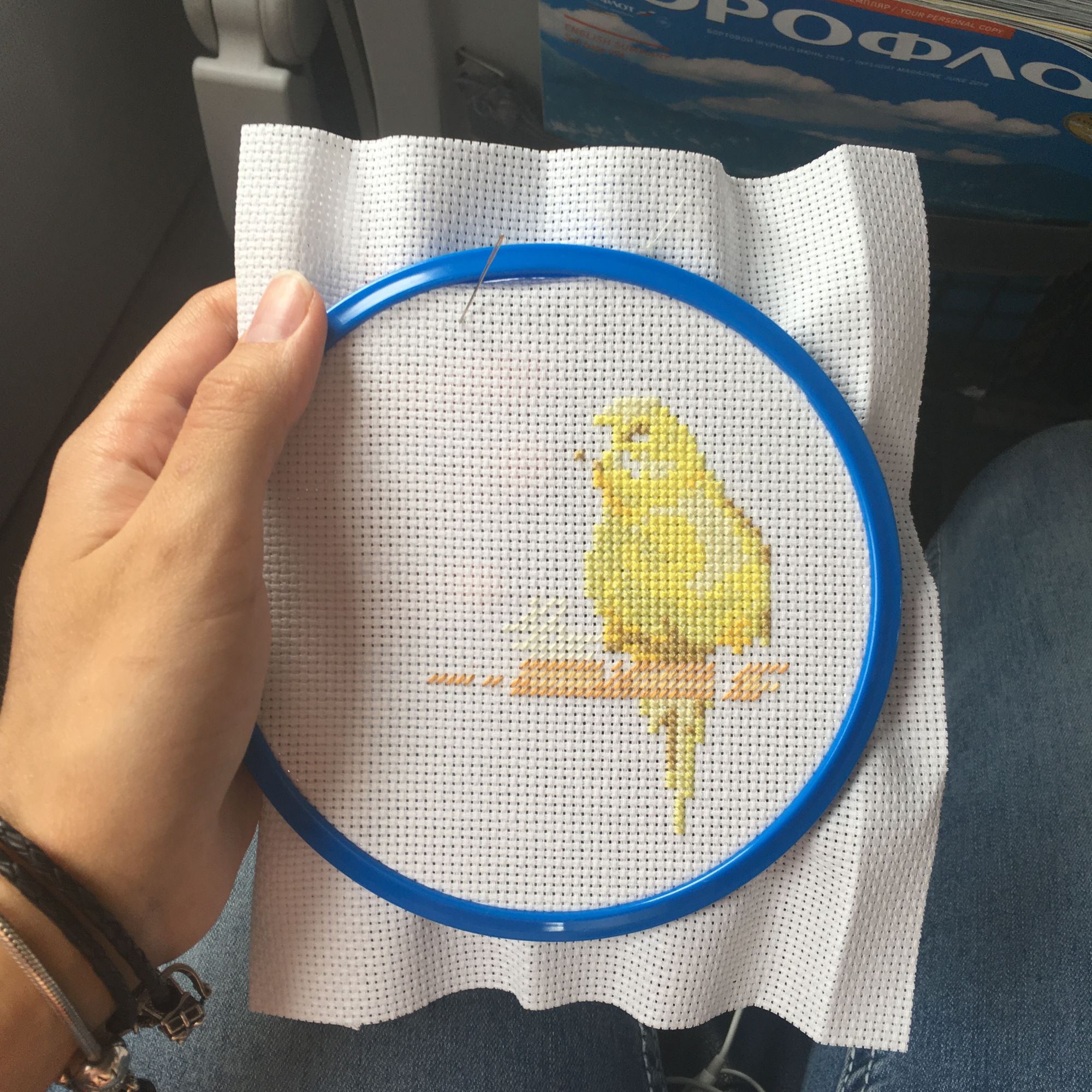 8 июля 2018 Я не пропала - я улетела в очередной евротоип с семьей. А в путешествиях мне традиционно не везёт с хорошим или хотя бы стабильным интернетом. В этом году сей факт вызывает куда больший дискомфорт - накануне вылета я подсела на турецкие сериалы (казалось бы деградировать уже некуда, но я нахожу новые пути!), а там каждая серия по 2-2,5 часа идёт. В этом году у нас Чехия, Австрия, Словения и Италия. Фото обязательно будут, а пока отчеты в вышивке. Лиса и виноград закончены, но не сфотографированы для озеленения гаечки. Зато есть фото до бэка: А теперь завожу новые гаечки. На этот раз - сразу зеленые Завела я у родителей дома маленький процесс. Процесс был настолько маленький, что жил пару часов. RTO H227 Funny Mickey Купила свой первый набор на пластиковой канве. Почти довышивала, когда обнаружила серьезную подставу - в каждом куске нехватает несколько рядов. Хорошо, что не удержалась и начала вышивать дома. Как только вернусь, сразу же буду строчить гневное письмо производителю. Такую синицу мне попортили! Гаечку делать не надо! да и фото только одно: Любой перелёт пройдёт незаметно, если взять с собой что-нибудь повышивать. Алиса 0-176 «Попугайчики» Моя новая любовь. Бралась как дорожный процесс, пожалела об этом - канва в наборе рыхлая, нитки путались. Итог кривой и косой. Но я влюблена в эту даму страшно, думаю вышить ей подругу. РТО ЕН335 «Девушка с рыжими волосами» Девушку с волком я вышивала в прошлом году в этой же квартире в Генуе. Продвижение пока такое: Lenara, АриЯ, Хозяйка смешных зверей и 15 других сказали спасибо Поделиться сообщением Ссылка на сообщение