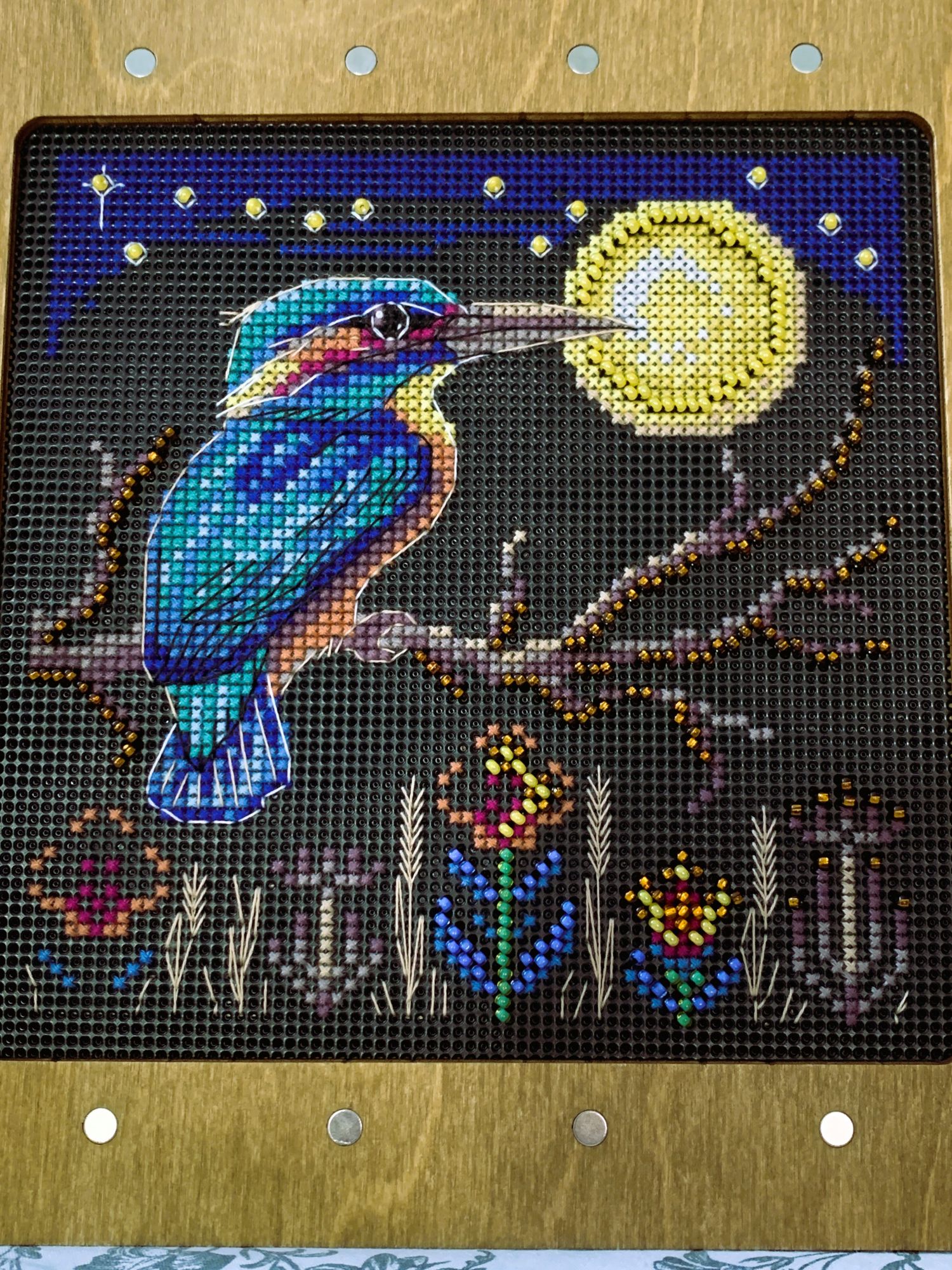 23 апреля 2024 Всем привет! Вем весны! Пока все первоцветит, зеленеет, золотится и поднимает настроение у меня получается вышивать эффективно. Как и обещала: весенние птицы. Вышито "по мотивам" оригинальных наборов Марья Искусницы. Основа (черная аида 14) заменена на черную пластиковую канву, внесены коррективы в декоративное оформление и бисерный рисунок. Картинки - фантазийные, но мне захотелось предать драматизЬму зимородку и я отменила бисерные листья. Мне кажется они перегружали вышивку. И звездочки на ниточках заменила россыпью светлячков. Вышиваются наборы легко и стремительно (электронную схему предоставляет производитель), всех материалов с запасом, готовая вышивка вписывается в стандартные рамочки Mill Hill Марья Искусница 13.003.42 Яркая птица Марья Искусница 13.003.44 Пестрая птица Shoryok, Гало4ка, Путешественница и 10 других сказали спасибо Поделиться сообщением Ссылка на сообщение