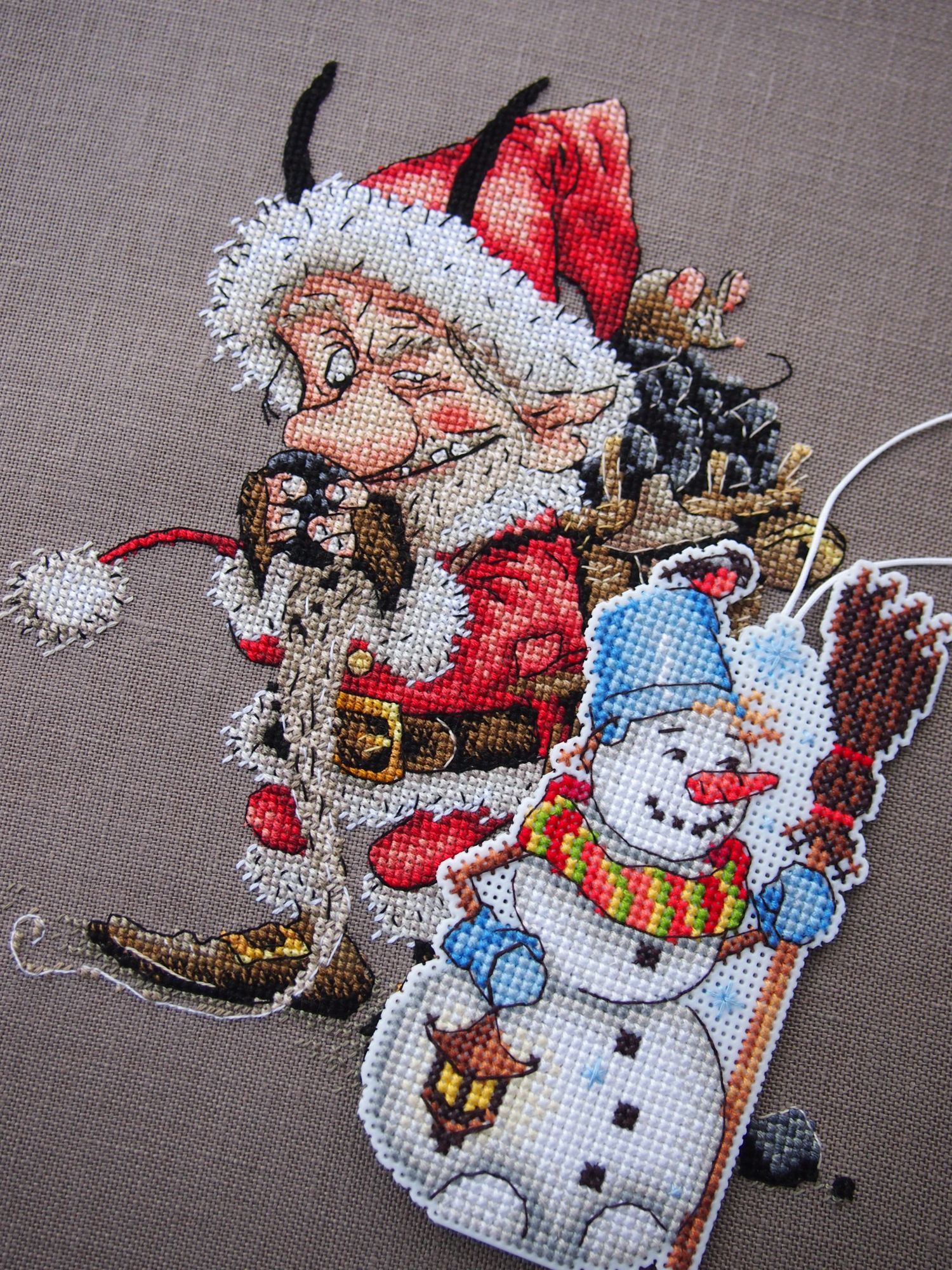 1 февраля 2021 Привет всем! Привет февраль! Настала пора подвести итог январю и прошедшей неделе. И я к вам иду с финишами, правда, один с пылу-жару, то есть сегодняшний. Очередной раз все планы в голове разбились о действительность, но это не повод грустить)) И так, начну с финиша января: Снеговик от Жар-птицы Пальцы стёрты, без косяка с приключением не обошлось. Ближайшие пару недель я точно буду шить только на мягоньких тканюшках)) Дошила я его в пятницу, думала, что дошила... Вырезала по контуру, чтобы сшивать - резала не так, как у производителя показано, не по душе мне огромное поле вокруг вышивки из пластика, постаралась, где это возможно оставить клеточку контура. Когда стала сшивать - оборвалась мононить внизу древка - это был сигнал, что я найду косяк. Но... конечно же я не прореагировала и вот дошла до варежки. Тут понимаю, что пропущен кусок бэка. Кто знаком с мононитью, поймёт, что пойдёшь на любые извороты, лишь бы не пороть или распускать. Кадр, как я доделывала бэк (нить у меня порвалась, я и тут косякнула, закрепляла в воздухе...) (это фото не в гайку, пожалуйста) Полностью собранный снеговик вернул нам зиму и пушистый снежок Второй финиш первофевральский, ой как мне из-за него хочется спать - я ж хотела подвиг совершить - дошить в январе)) Глаза и спина были с этим не согласны. Крутила часть узелков и дошивала кусочек коричневого бэка сегодня)) Любимый гусь от Виктории Ивченко Постыдный хвост с прошлого года. Мой любимый бэк шиться тогда не хотел. На всякий случай - несчётного тут мало, в основном сконцентрирован на лице. На губах три оттенка из 10. Остальной вполне комфортный, главное не запутаться. Пара линий у меня "сползли", забила и оставила как есть (полклетки и клетка, в прядках волос). Вот такая девчушка получилась: Вытащила из шкафа прошлогоднюю девочку, чтобы заснять их вместе. Обе девочки разработаны по иллюстрациям Eve Farb И январь одним кадром Виды из окна (закат сегодняшний) Утренний сон ворон, заворожила синева рассветного неба На этом сегодня всё)) Хорошего настроения и здоровья! Naduh, Lucia-del-Umago, starcat и 25 других сказали спасибо Поделиться сообщением Ссылка на сообщение