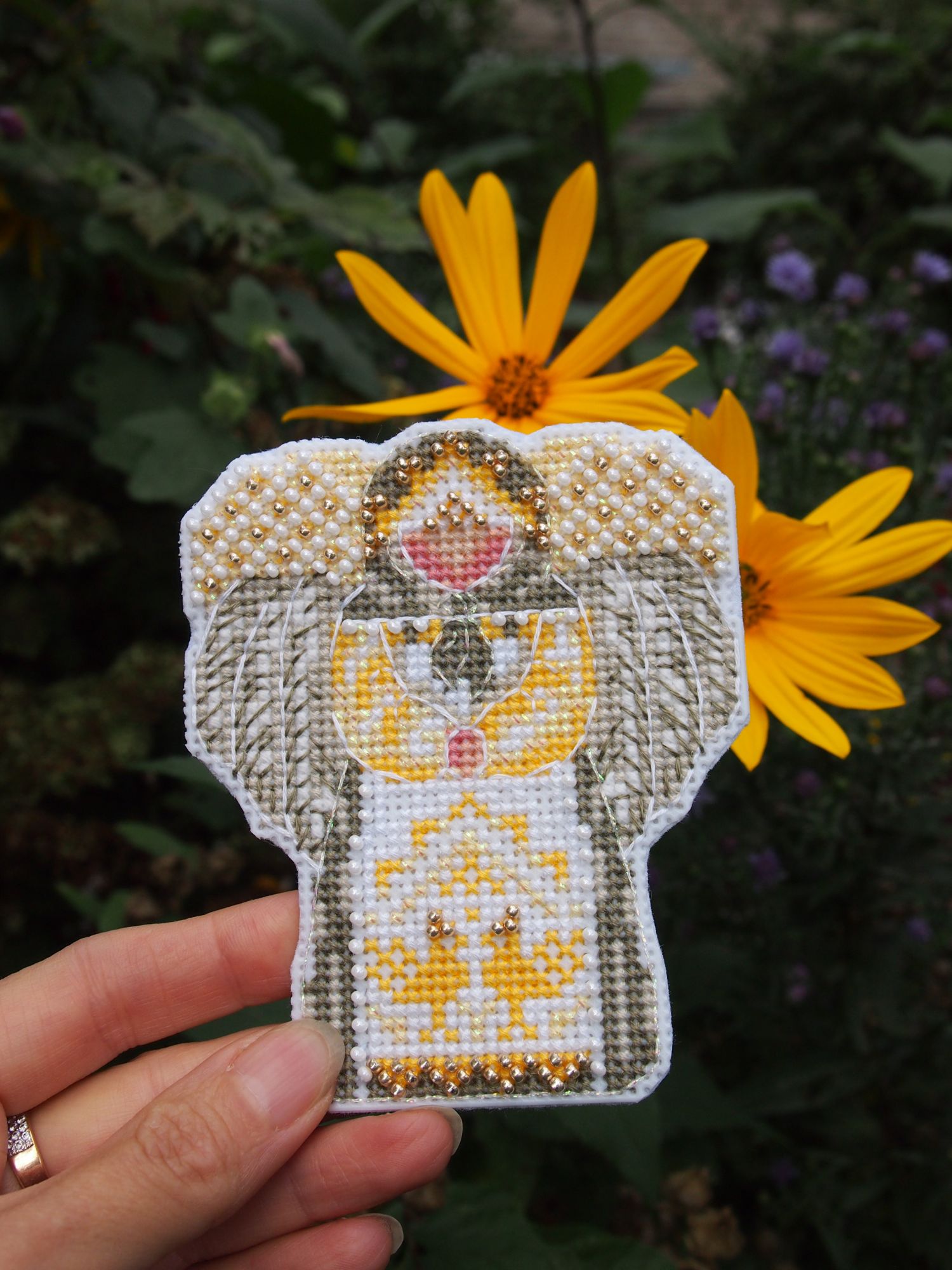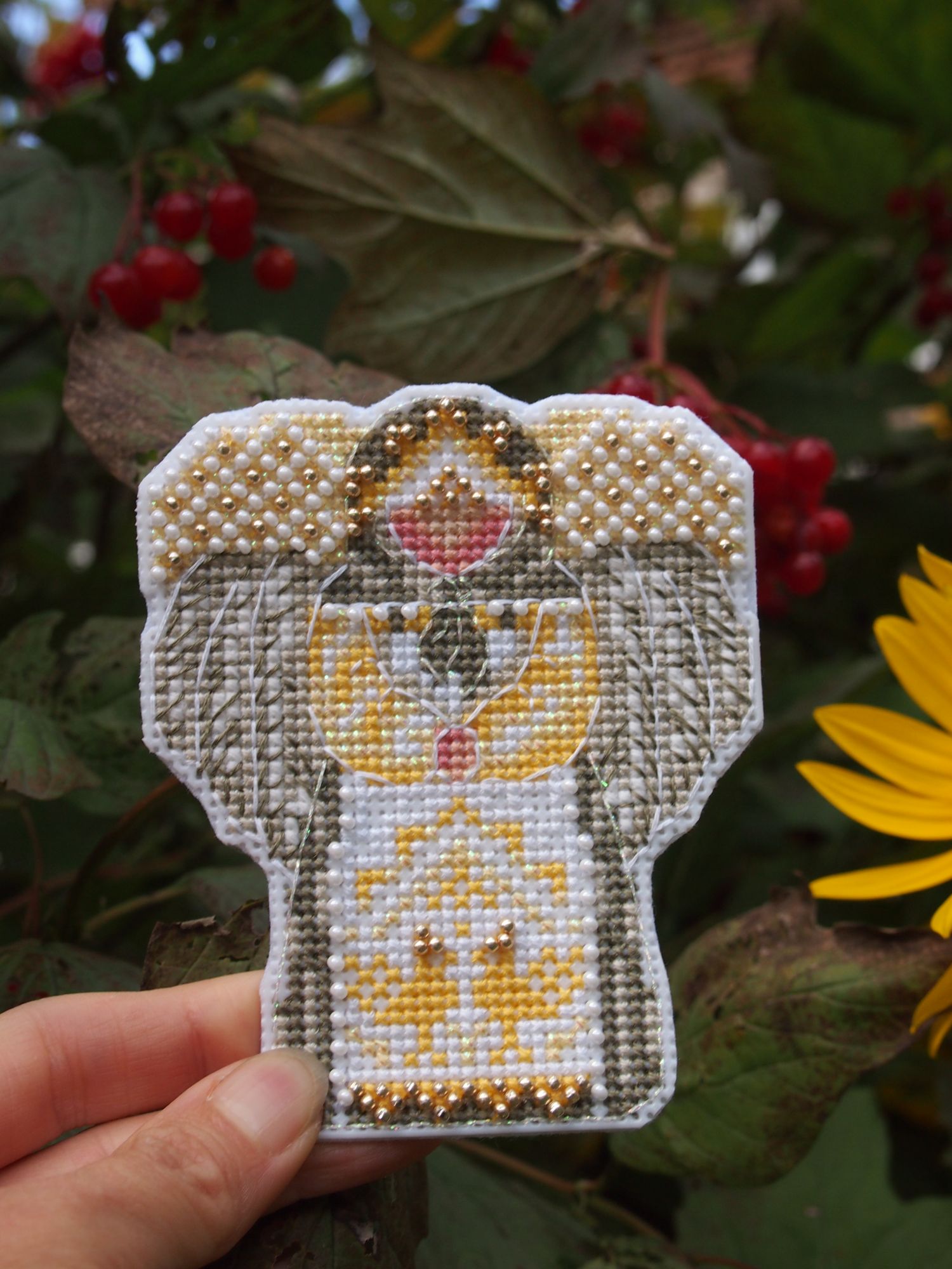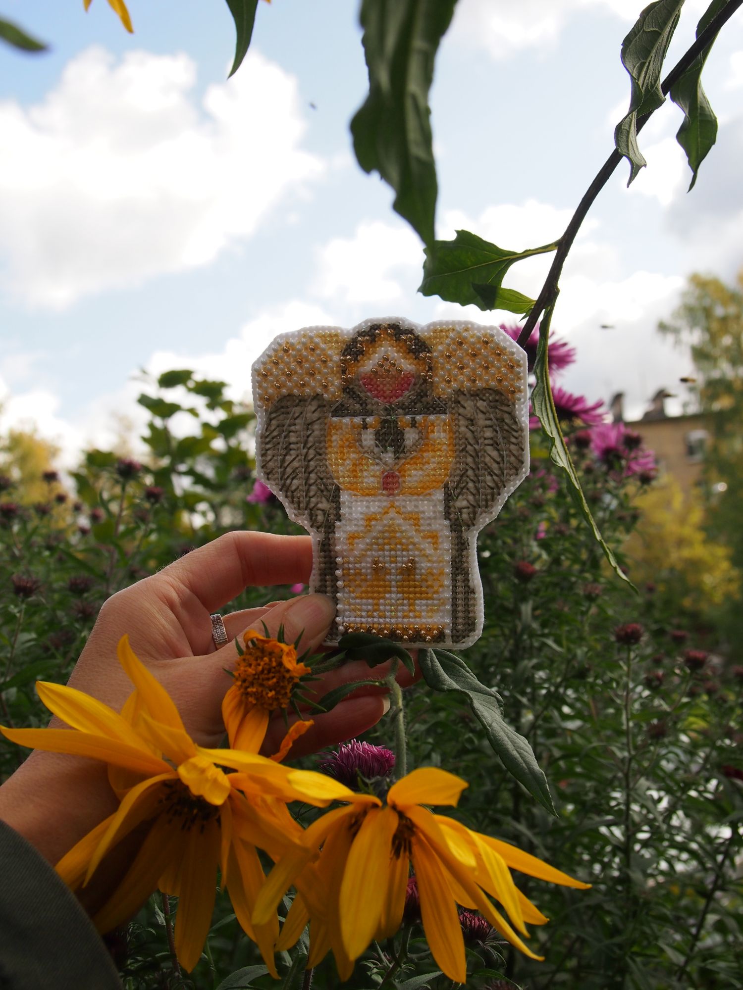 23 сентября 2019 С одной стороны, сегодня очень хотелось пропустить отчёт, а с другой - нельзя так себя расслаблять Неделю назад я думала, что завершу полностью лисика и принесу вам финиш. Ага, не принесу. Вот что выросло в Лисичке от Даши Мастраковой Очень нравится процесс, хоть и замедлилась (в этом вся я пред финишем). Хочу дошить, чтобы начать новое. Промежуточный итог в проекте по книге Яны Горкальцевой Ангел-берегиня жаркого солнечного дня День съёмки был солнечный, но очень холодный. Да и топинамбур, который идеально бы подошёл, слишком высокий для меня. Прыгала и не могла поймать ракурсы. В итоге дизайнеру в совместник отчиталась кадром с георгином. Эта берегиня шилась очень долго. Не знаю, то ли белым по белому, то ли бленд с металликом тому причина. То ли обилие бисера. Кстати, про Крейник - бэк по подолу и платочку выполнен Very Fine Braid #4 в 1 нить (у меня как раз долгоиграющая катушка нужного оттенка), по книге бэк идёт в две нити BF. А вот в бленде я опять использовала распущенную на тонкие ниточки опаловую ленту из Почти идеального от Dim (крылья ангелочкам я тогда вышила крейником, ибо ленту мне протащить через дубовую аиду тогда не удалось). Чтобы получившаяся нить не терялась, я делаю стежки полукрестом по верхнему стежку креста. Давно на щелкунчиках пробовала смешивать сразу, но тогда блеск теряется. На прошлой неделе на телефон во время прогулок заснялись такие кадры (небо почти с одной точки, но в разные дни) Осень сегодня по дороге на работу и обратно (в обед захотелось заснять китайку у нашего забора, хожу мимо неё каждый день, шла обратно и не удержалась, пошла по краснеющие клёны...) А на окне в этом холоде тропическое лето, раскрывает бутоны малюська Надеюсь, наступившая неделя получится более плодотворной. Всем ровных и быстрых крестиков))) Путешественница, Хозяйка смешных зверей, titania и 12 других сказали спасибо Поделиться сообщением Ссылка на сообщение