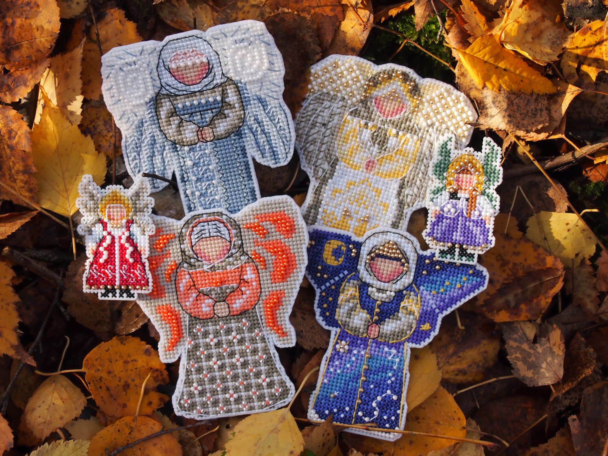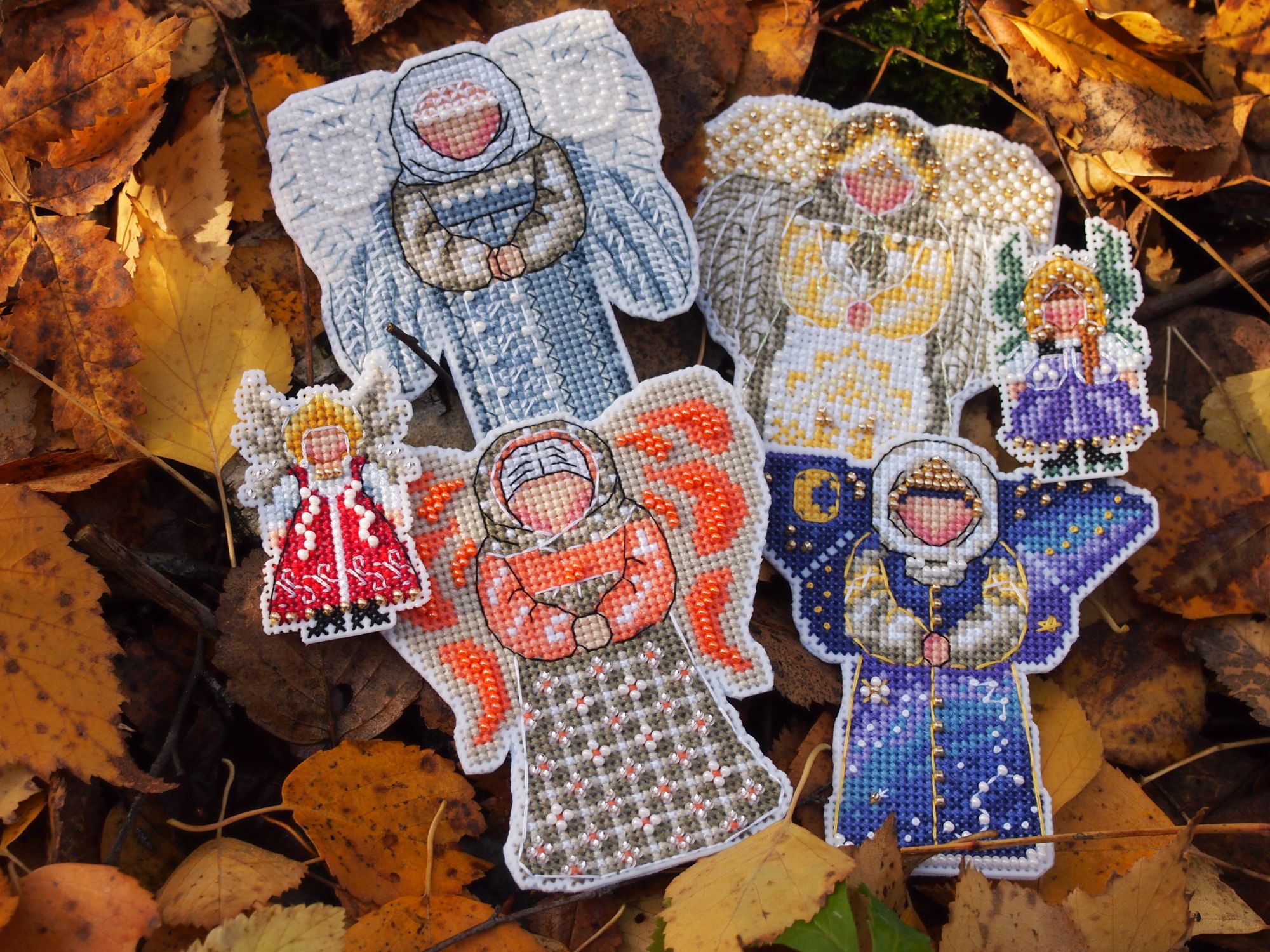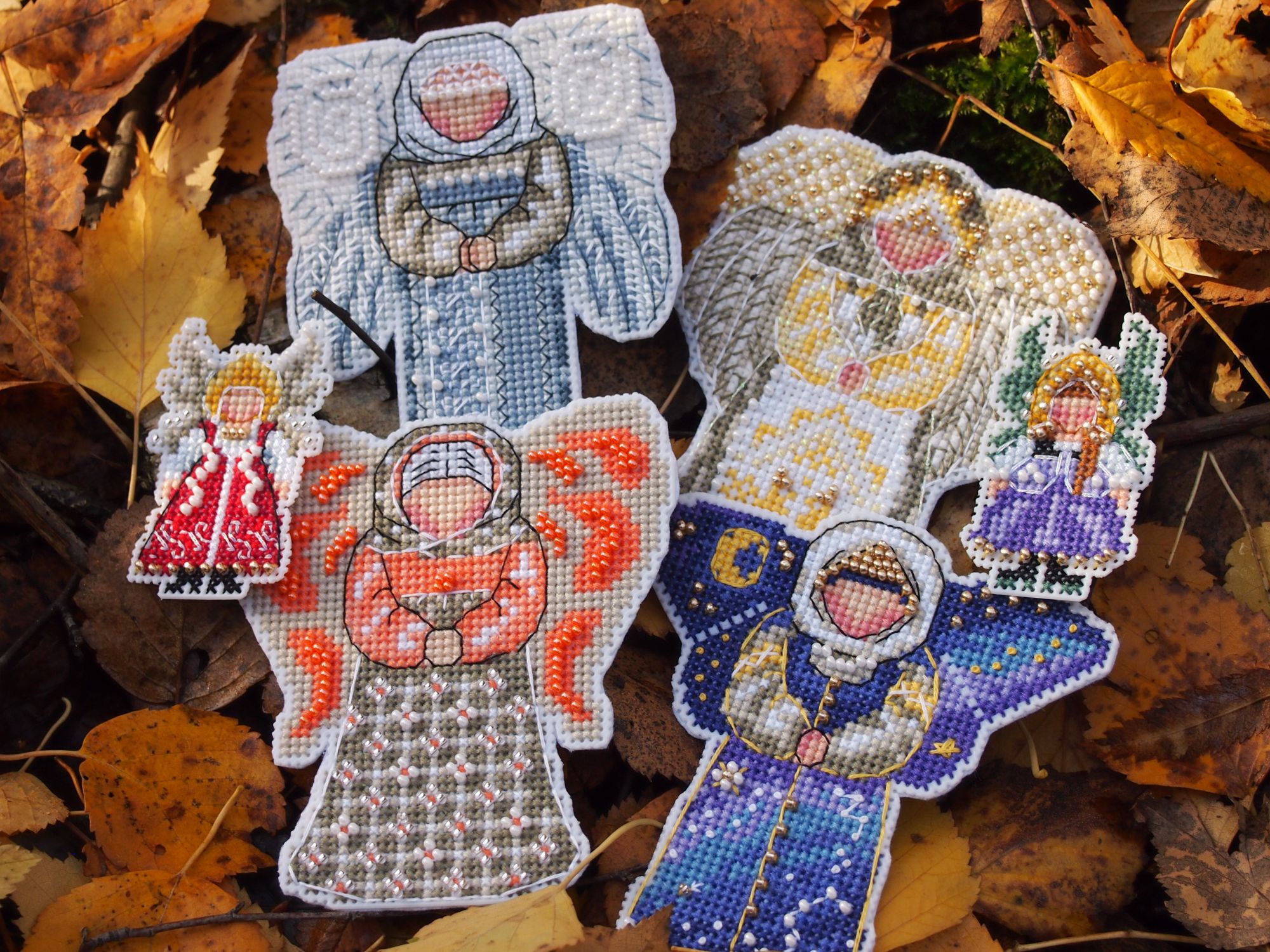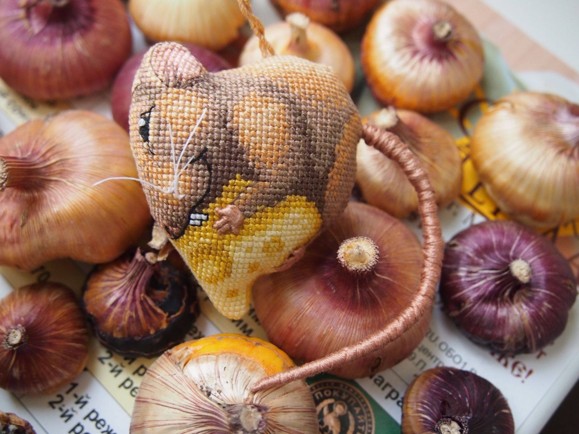 21 октября 2019 Добралась до ноута, хорошего всем настроения! Сегодня чуть не спалилась на работе - командир решил после долгого отсутствия зайти и задать свой любимый вопрос - "Чем занимаетесь?"... Я в этот момент пыталась читать тему Тольны на телефоне и пришивать фетр мелкоте... Хорошо, что вчера ниточки на тыковку решили от меня спрятаться, маленькие снапики я б так просто не скрыла... Завтра можно будет спокойно вышивать Вышивальные две недели завершились отлыниванием - после крысика потребовалось немного передохнуть. За то теперь точно финиш: Крыска Ириска - самое сложное было сшить. Ой и поматюкалась я. Ещё и усложнила себе жизнь - набивала через кривую часть внизу, не повторяйте моей ошибки. Фотки домашние и на улице. Следующим пунктом идёт новый старт. В этом году у меня почти нет осенних дизайнов, а очень они мне нравятся. Вспомнила я про набор, который имеет хорошую такую "выдержку". Встречайте Портрет Осени от НеоКрафт. Неправильно я думала, схема на двух листах и отдельно бэка нет. Значки мне мелковаты, хотя листы А3 формата. Финку я не сильно люблю, большой вопрос к её мерсеризации, скрипит, куча шероховатостей, не пластичная. Начала со скучного куска - то ли перья, то ли листья и мой бррр - полукрест. Хотя результат глазам нравится. Основу менять не стала - Линда молочная (вообще изначально мысли были, но посмотрела на обилие бэка и решила, что вполне хорош 27 каунт). Вышиваю дальше и жду "сюрпризов" и подвохов. Следующий финиш без гаечки. Я завершила очередную серию по книге Яны Горкальцевой и вышила подарочных малюсек (Яна их дарила всем участницам весеннего этапа) Ангелы-берегини Последней по книге вышилась Берегиня прозрачного росистого утра Малюськи И все вместе Моя мама вчера связала Себастьяну мышку, чтобы он не воровал её клубки И немного кошачьей помощи Пушистую тушку надо примостить именно там, где я вышиваю. Осень Всем лёгких и ровных крестиков! Naduh, Ветер, Камма80 и 15 других сказали спасибо Поделиться сообщением Ссылка на сообщение