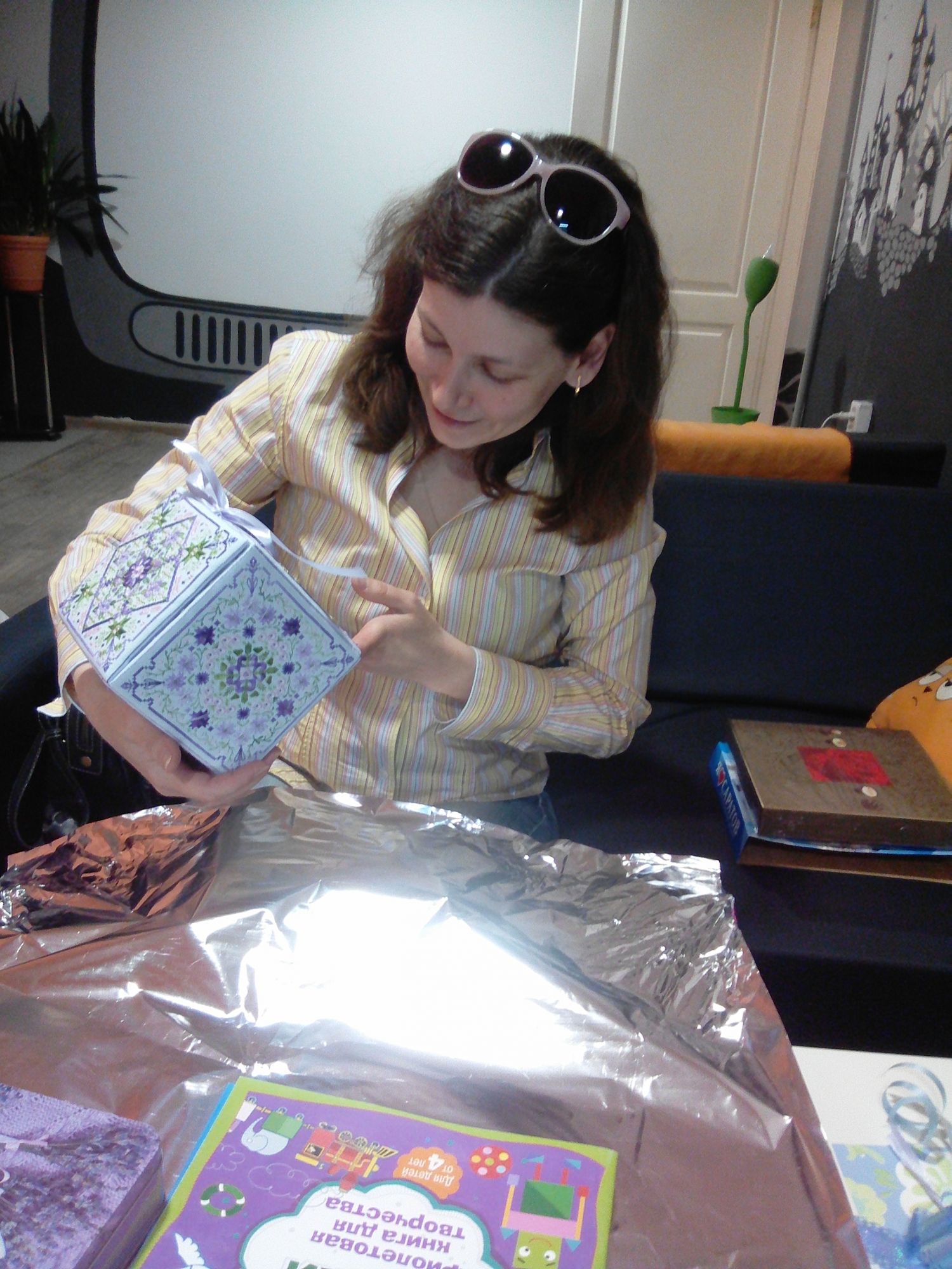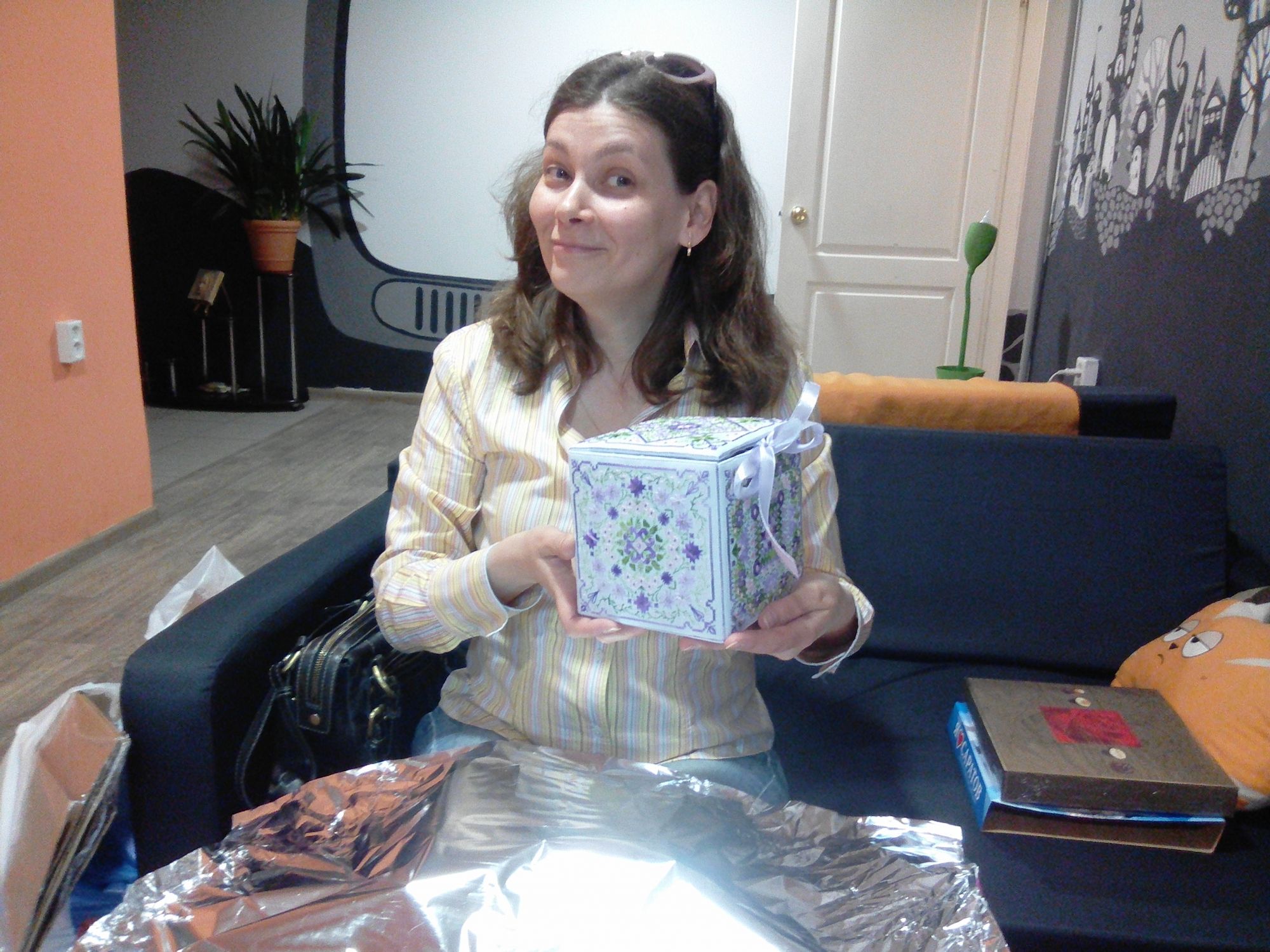 10 июня 2017 Девочки, спасибо! Татусь, каждая сторона 13 см, можно чего-нибудь положить.:-) Скажу я вам, други мои, это ооочень волнительно вот так глаза в глаза дарить сюр! А вдруг не понравится?! Да еще это был мой дебют, первый большой шовчиковый дизайн и первая шкатулка, было из-за чего поволноваться.:-) :-) :-) Да еще и шифровалась, как могла! Юля у нас девушка добрая, то коробкой почтовой подсобить предлагала, то еще чем! Засада была с фото, очень хотелосью чтобы было видно все стороны. А как, если ои все разные? Тут муж пришел не помощь с зеркалом, умница моя.:-) Ну теперь я выдохнула и сижу на попе ровно жду сюрприз совершенно не переживая, потому как уверена, что он будет супер! По другому вы не умеете! sunny981, Ginger_mama, вишенка аллая и 36 других сказали спасибо Поделиться сообщением Ссылка на сообщение