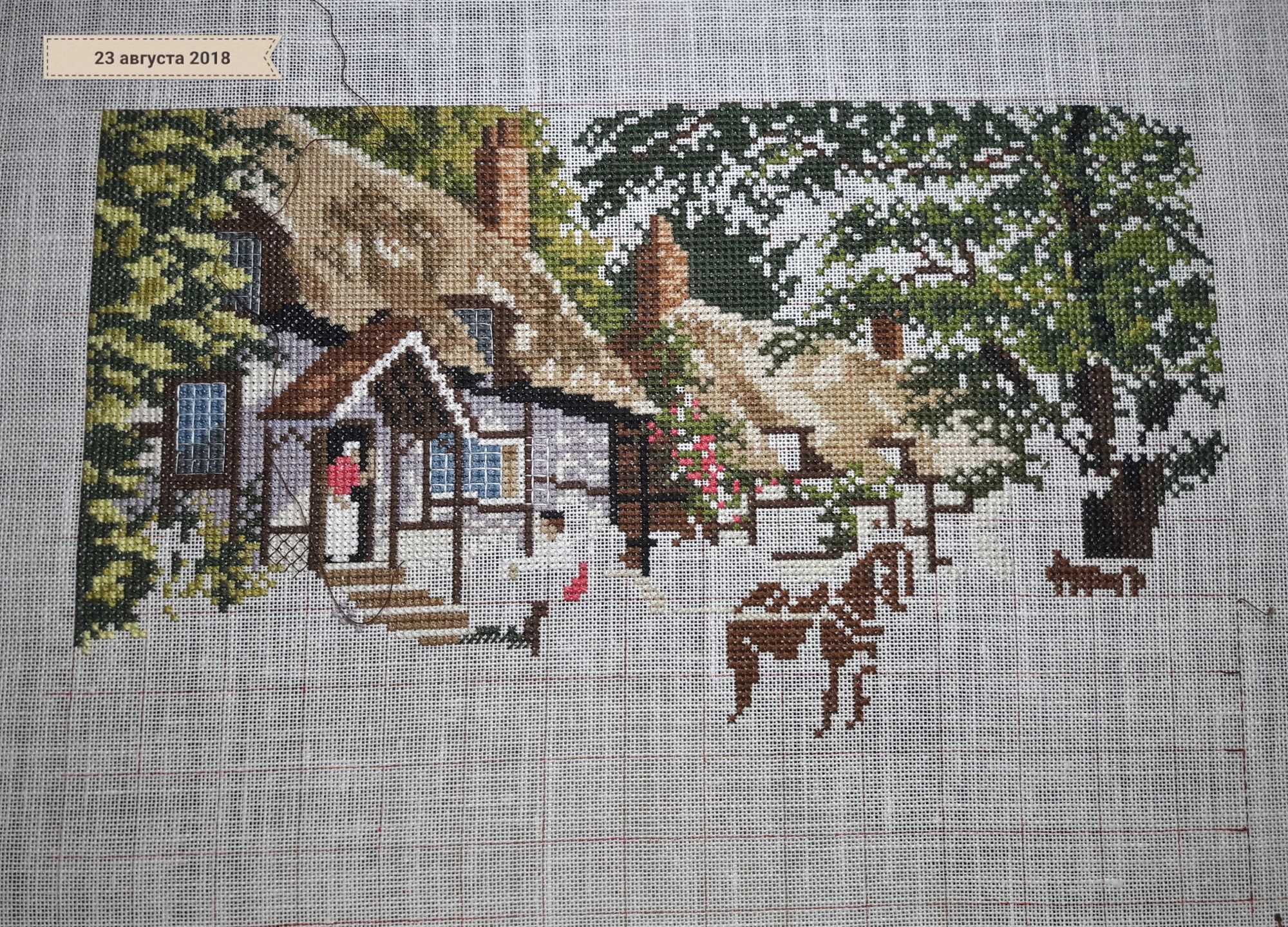 24 августа 2018 Небольшое продвижение Показались лошадки, и зелёная листва деревьев закончилась. Ещё хотела с вами посоветоваться. Как думаете? Не стоит ли небо вышить каким-нибудь цветом? По схеме оно остаётся не вышитым, вот, как на фотке. Может светлосерым или светлоголубым? Нет? То же самое и с поверхностью двора. Гало4ка, ОльгаТольна, Sky026 и 11 других сказали спасибо Поделиться сообщением Ссылка на сообщение