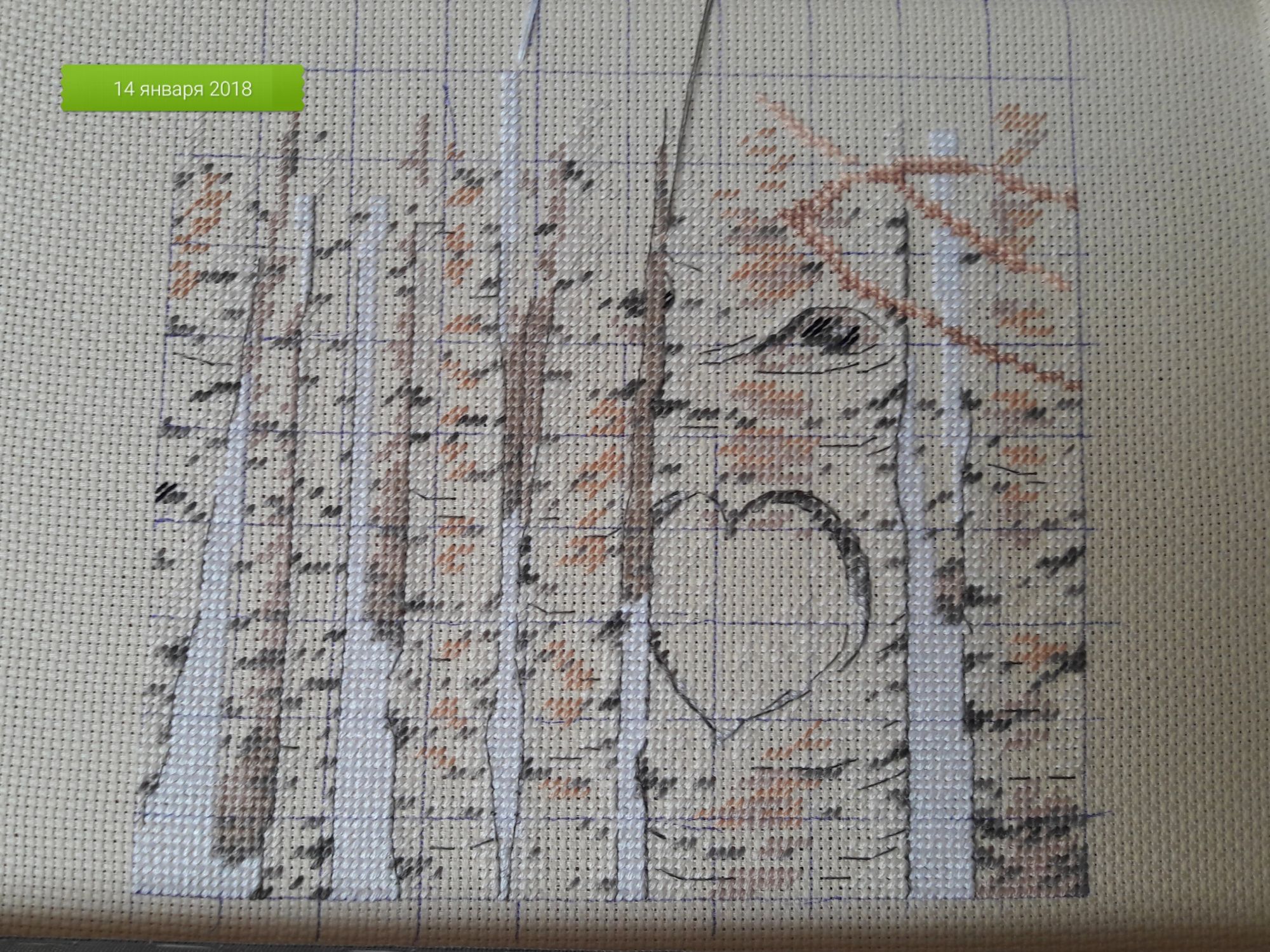 14 января 2018 Продвижение птичек. Вышивается мало, всё, кроме веточки, полукрестом. Это, наверное, у меня первый Дим, где так много одиночек. Не хочу вышивать инициалы в сердечке. Может, у кого есть идеи? Надо было начать вышивать просто выше сердечка, совсем без него. А, вообще, в этой работе, какое-то искривлённое пространство. Абсолютно непонятно, где берёзы, а где, не берёзы. TheSunniestDay, Анна_С, Кисуля и 6 других сказали спасибо Поделиться сообщением Ссылка на сообщение