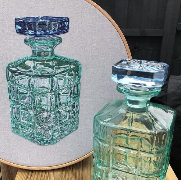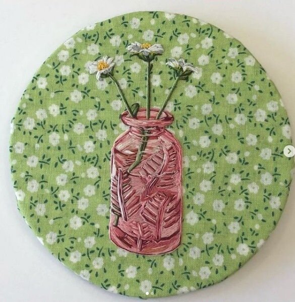 6 сентября Гиперреалистичная вышивка Люси Симпсон Британская художница Люси Симпсон (Lucy Simpson) начинала путь в предметной живописи, но уже несколько лет тому назад шагнула в мир вышивки гладью и достигла поразительных высот. Её работы словно ловят свет сквозь ткань: стекло, жидкость и искрящийся отблеск нитей рождаются на холсте с удивительной правдоподобностью. Вся ее творческая цепь начинается с фотографии замысла — кадр, который станет отправной точкой. Затем следует карандашный набросок в блокноте, перенос главных линий на ткань, натянутую на пяльцы. Изнанку она укрепляет флизелином, чтобы ткань сохраняла форму и дыхание сюжета. И начинается чистая магия — Люси выбирает палитру мулине, подбирая нити так, чтобы каждый оттенок идеально соответствовал оригиналу, будто светлячки в стекле. Этап за этапом она воплощает сцены вроде стакана с водой и ломтиками лимона — сложный процесс длительностью до двухсот часов кропотливого ручного труда и сотен нюансов цвета. Так, графин, с которого началось знакомство с ее творчеством, потребовал 65 оттенков нитей. Люси выработала свой неповторимый стиль гиперреалистичной вышивки. Она не даёт мастер-классов и не продаёт наборы схожих сюжетов, считая рукоделие искусством. Поэтому продаёт исключительно готовые работы, превращая ткань в порталы реальности. По словам самой Люси, гиперреализм всегда был ей близок, хотя кураторы нередко призывали покинуть зону комфорта и обратить взгляд в абстракцию. Выпускница отделения современного прикладного искусства, во время учебы она тяготела к керамике и скульптурам из металла, но судьба привела её именно к вышивке — к миру, где ткань становится окном в живой, блестящий мир деталей. Рукодельница Люси Симпсон научилась вышивать еще в детстве, когда бывала в гостях у своей бабушки. Во взрослой жизни ей уже было не до рукоделия. Она вышла замуж, народились дети. Но после рождения третьего ребенка ее накрыла депрессия. Чтобы помочь справиться с ней, сестра Люси посоветовала ей начать вышивать крестиком и купила для нее первый набор. Вышивание очень помогло Люси сосредоточиться на творчестве и забыть о текущих заботах. Через некоторое время Люси захотелось создавать собственные дизайны вышивки. К тому времени она познакомилась со стилем вышивки, называемым «рисование нитками». Сначала Симпсон начал экспериментировать с визуализацией металлических объектов, наслаждаясь тем, как отдельные нити определенного цвета могут вызывать реалистичное изображение света, отражающегося от края или шва. Она потратила время, оттачивая свое мастерство на таких предметах, как птицы и животные, потому что стежки естественным образом подходили к линиям меха и перьев, но во время пандемии, когда она проводила больше времени дома, ей захотелось чего-то более сложного. Она начала вышивать стеклянные предметы, в том числе с налитыми в них напитками. И у нее получились очень реалистичные изображения. Люси тщательно вышивает блестящие края стеклянных и металлических предметов. Каждая часть состоит из непосредственного наблюдения за декоративными предметами, такими как хрустальные стаканы и графины, а на создание некоторых из более крупных композиций уходит более 200 часов. «Это медленный процесс, и для меня, как для человека, не отличающегося терпением от природы, это 