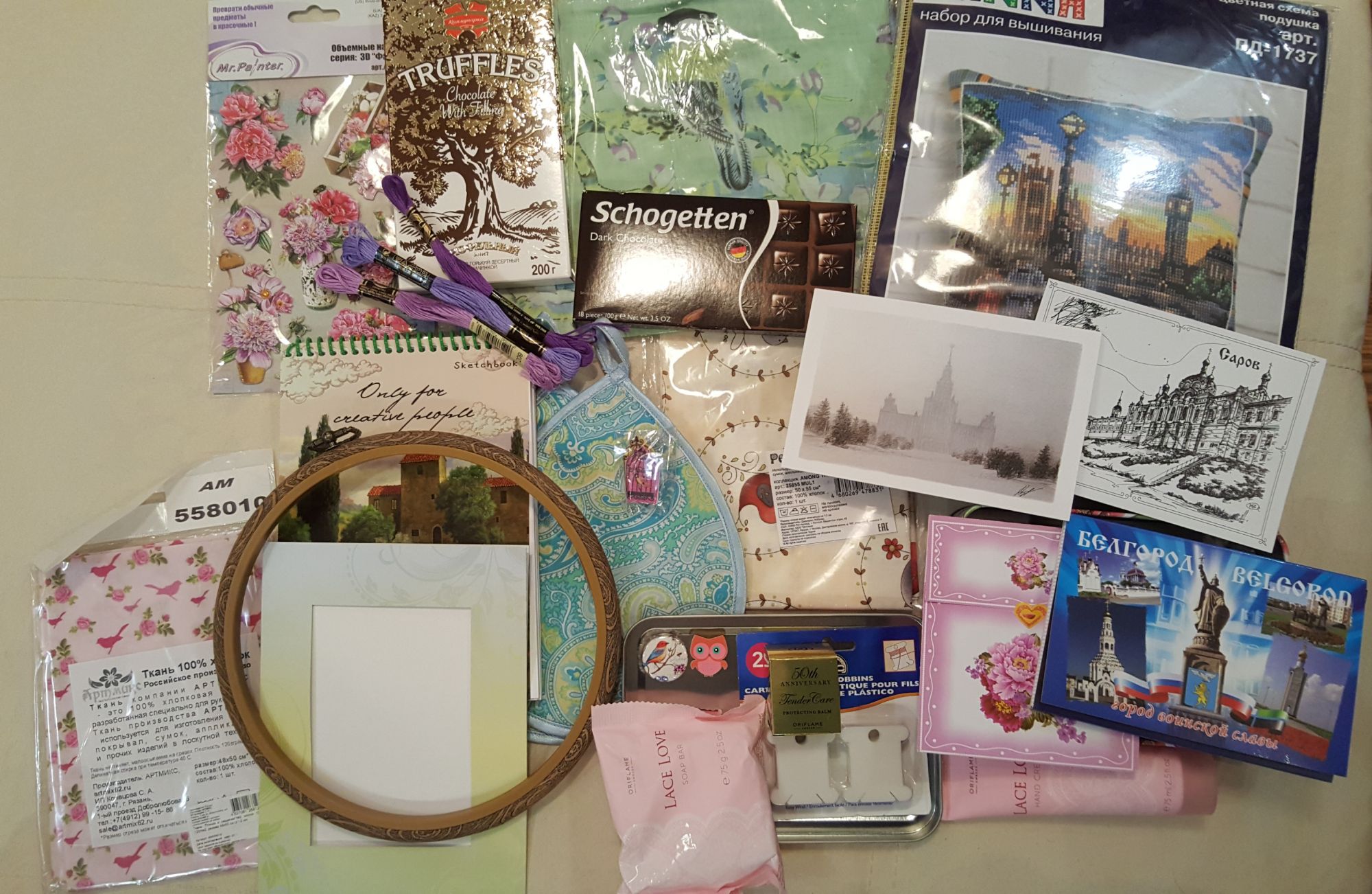 14 ноября 2017 Я хожу по дому такая довольная, как слон будто миллион выиграла))) Я не знаю как вам передать всю радость и все мои восторги и эмоции от полученного робинаКогда открывала посылку, ручки тряслись и так и тянулись к очередному пакетику, чтобы все перебрать и посмотреть))) После просмотра богатств зачиталась блокнотиком) Натали ты поэт Я очень рада, что вам понравился хью крафт, он действительно очень удобный для вышивания) Оля прорицатель, написала, что надеется еще раз встретиться в робинах и недели через две мы организовали робин 32) Вот мои птички, они чудесные, спасибо вам всем огромное) . А теперь к подарочкам) Часть из них я не буду показывать, но девочки, Оля, Наташи-это чудо!!!!! Мне ОЧЕНЬ-очень понравилось Подарочки от Натали по мере разбора посылки все не заканчивались и не заканчивались) Натали, ну признайся, ты знаешь кого-то из моих домашних и они тебе выдали все секреты, что я больше всего люблю))) Я знала, была уверена, что подарок от тебя будет подушка панны (может быть потому, что хотела ее больше остального). Я каждый раз приходя в Леонардо ходила смотреть на эти подушки, останавливало одно: не могла выбрать какую именно купить, а тут еще и с Лондоном (теперь одним положительным впечатлением от Лондона больше) . Наташа, спасибо за эту подушечку, так и хочется ее начать вышивать (думаю в ближайшее время начну точно) Еще был нежнейший шарф с птичками, чудесная ткань для пэчворка с птичками, открытка и две веселые прихватки), еще было вот. Не помню говорила я или нет, но уже лет 10 как я обожаю мыло, настолько,что привожу его отовсюду, где бываю. Даже моя мама, если не знает, что мне дарить, дарит мыло))) Лучше я сразу вид всех подарков выложу, потом немного расскажу) Теперь у меня есть: пяльца для оформления), очень хотела и повышивать на них попробовать, и использовать как рамку), открыточки чудесные, с Белгородом пойдут в мою коллецию книг/открыток о городах (их уже 2 полки), на блокнотике/альбоме такой рисунок, что его толтко в рамку) паспарту для открыток красивое, ниточки нужные, магнитики, которых много не бывает, т.к. они все время теряются, коробочка металлическая (вообще вещь, у меня маленькая и я со своим вышивальным добром туда уже не помещаюсь, а это в самый раз), бобинки, пуговички, ткани. Спасибо У нас душевная и теплая компания, спасибо Вам огромное) Всех-всех люблю и обнимаю. Прошу прощения, что описано все немного сумбурно и фотографии такие же, сумбурные, я просто под впечатлением от красоты и доброты) Вы самые лучшие Catopuma, Svetl@n@, Пикусёнок и 5 других сказали спасибо Поделиться сообщением Ссылка на сообщение
