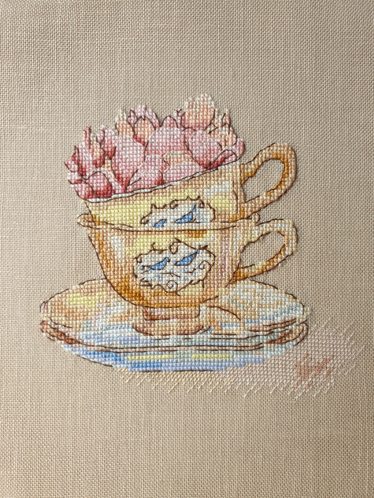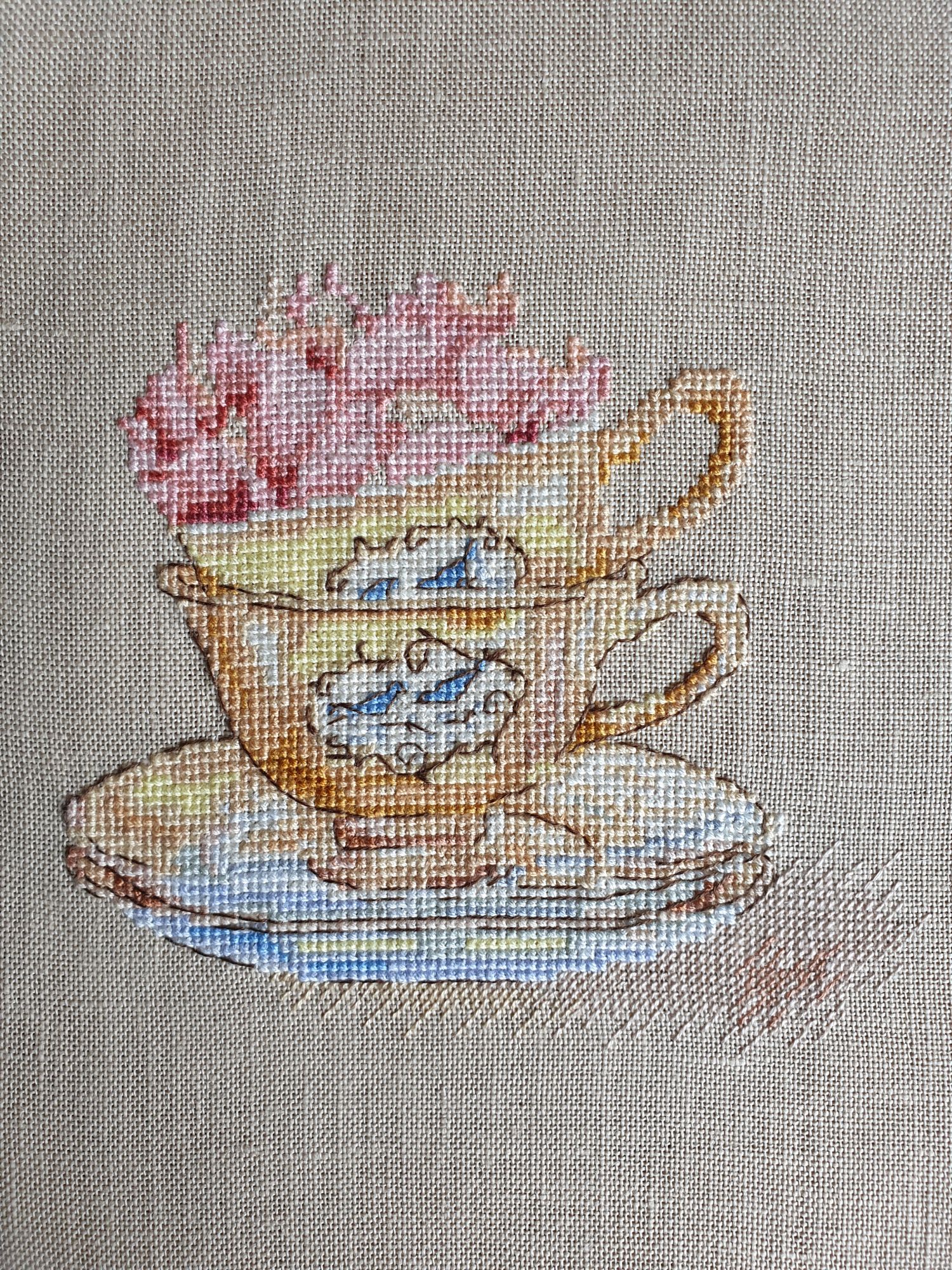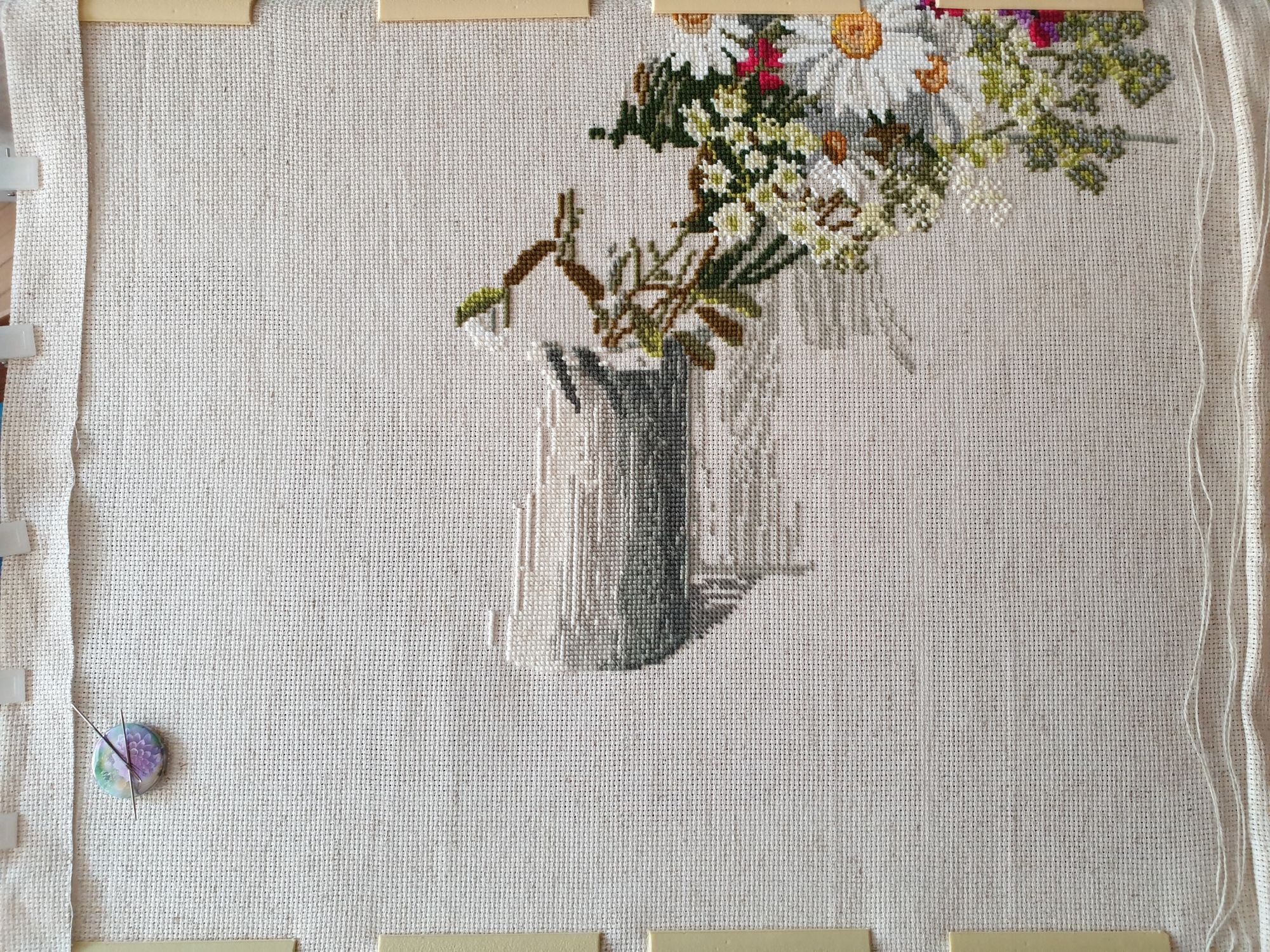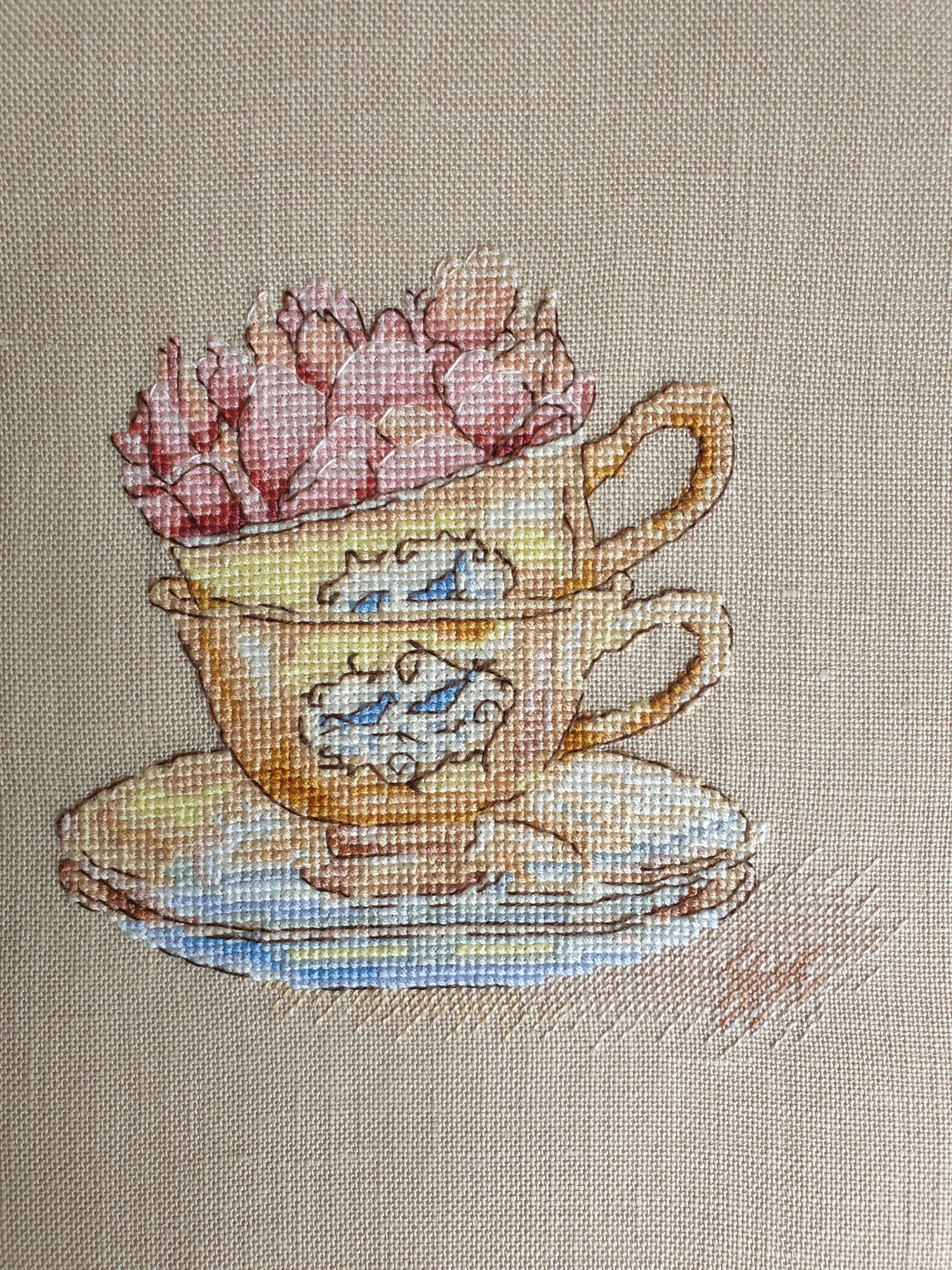 10 июня 2019 Всем здравствуйте! Отчёт начну с зеленения гаечки! Редкое для меня явление, а потому приятное. Закончила чашечки по схеме Инны Пешковой. Итак, 1. "Розовое чудо". Было: Стало: И финиш: В схеме понравилось всё! Особенно, цветочки. Правда, пришлось небольшой кусочек распустить. Кировские нитки, хоть и разных номеров, оказались совершенно одинакового оттенка. Не поверила вечером, перепроверила утром. Так и есть! Купила требуемый цвет в dmc, чтоб переход на бутонах был, а не сплошной цвет, как у меня начало получаться. В общем, я рада и финишу, и результату! Мойя Пррееллесть.... 2. Помнит ещё кто-нибудь "Юношу на белом коне"? Ему досталось немного внимания. Меньше, чем он заслуживает, правда. Да и то не ему, а коню! Было: Стало: Шьётся как песня! В схеме от Алисы, как всегда, куча стежков, разные наклоны, количество нитей. Пока мне нравится что получается) 3. Риолис. "Букет полевых цветов". Это мой стыдный стыд. Начинала его лет 5 назад- в подарок маме на День Рождения. Потом придумался другой подарок, букет отложила и всё! То мне пяльцы не подходят- купила станок. Клипсы на станке уродские - купила другие. Натянула - и он год (!!!) стоит посреди квартиры (правда, накрыт полотенчиком, чтоб не пылился). И даже, когда я пару раз, воззвав к своей совести, его открывала, находились причины: то свет плохой, то сидеть не удобно. В общем, ужас! А всё потомкюу, что боюсь подступиться к полукрестику- ну вот не хочу!!! Вчера достала (что-то же там нашито), выдохнула и ударно пошла лепить полукрестики с низу. Спасибо, что не все успела вышить - оказаллсь, шью не в ту сторону! Ууууу (Распускаем...) В общем, как я с собой справлюсь- не известно. Картинку "было" надо извлекать с другого устройства. Поэтому, картинка "есть" Вашему вниманию: Я надеюсь, Вы понимаете, что снимать клипсы для фото, в моём случае очень опасно На этом всё! Спасибо, что заглянули! Кисуля, Moshika, TheSunniestDay и 14 других сказали спасибо Поделиться сообщением Ссылка на сообщение