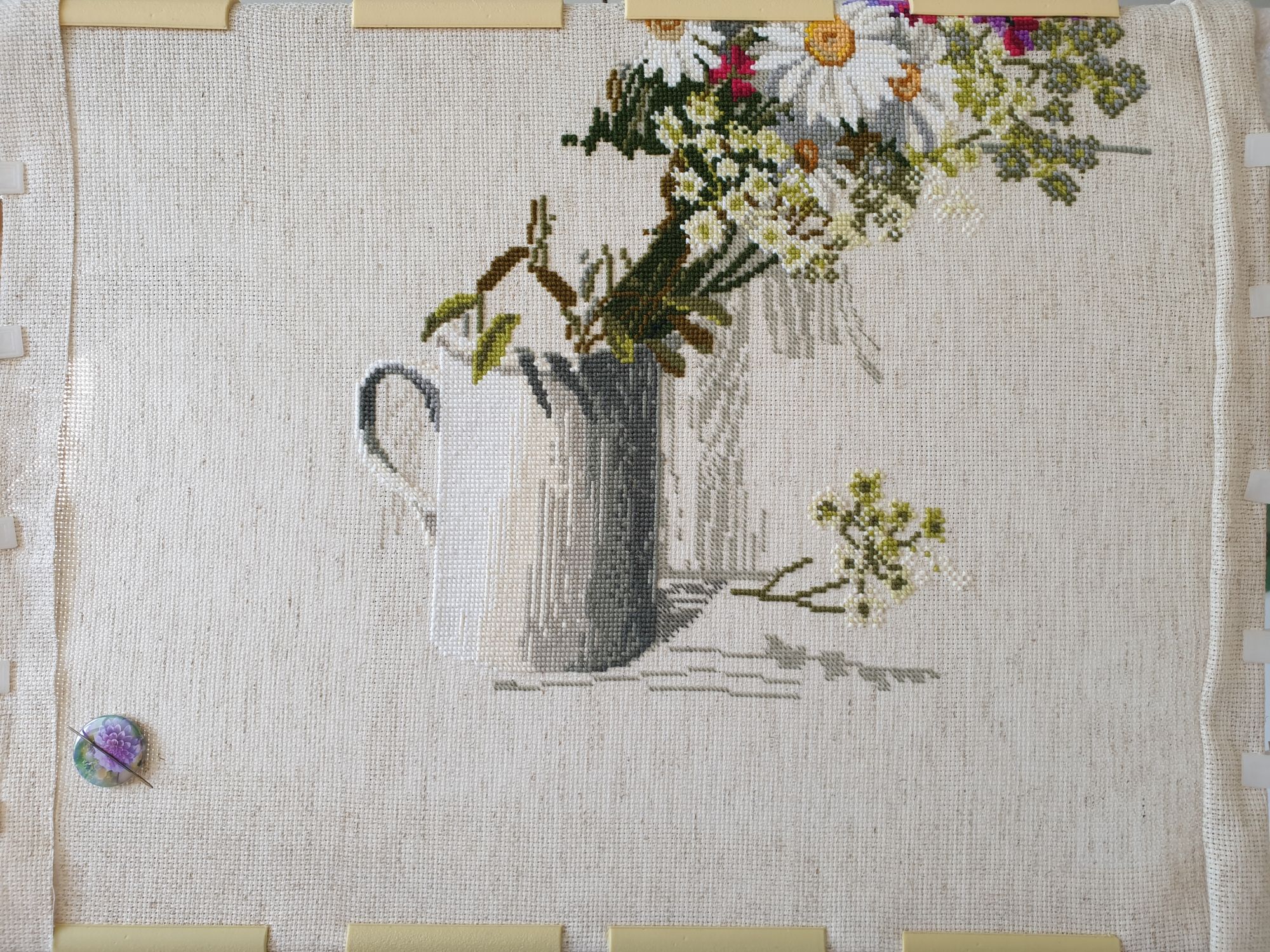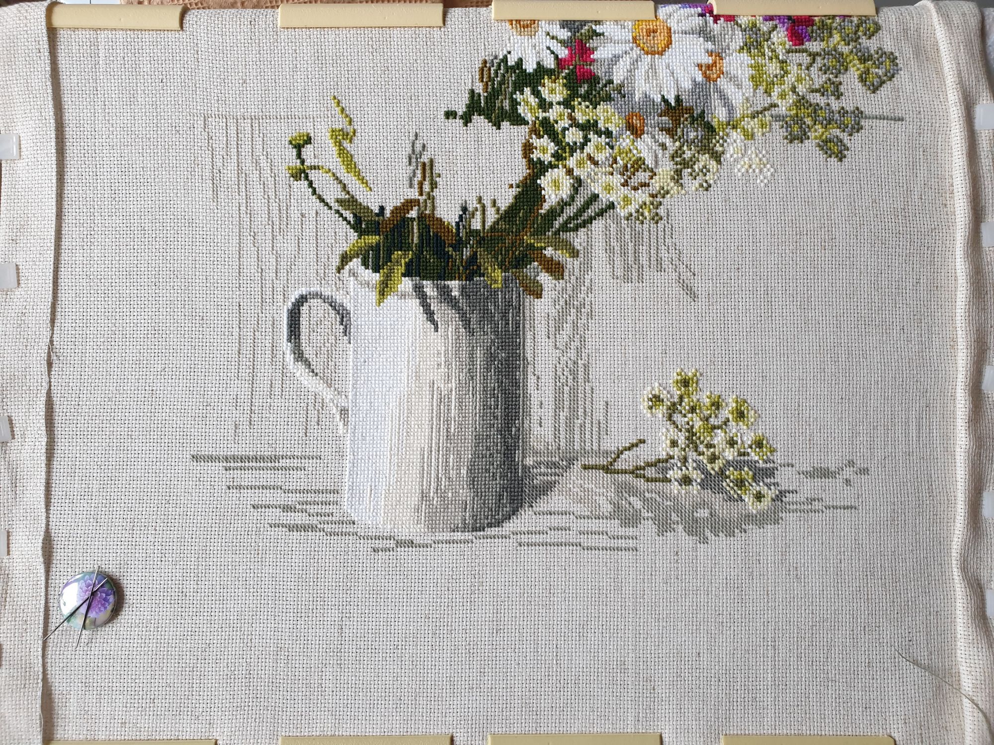 17 июня 2019 Всем здравствуйте! Сегодня отчитаюсь по одному процессу. Зато какому! Извлечённые из небытия "мамины" цветы. Итак, Риолис "Букет полевых цветов". Было: Стало: Посвятила ему четыре дня. Радуюсь, что продвинула, но жаль, что нет у меня ещё недели. Теперь понятно, как люди, шьющие свои процессы стабильно и регулярно, добавляют прирост в гаечку Я, конечно, вышиваю медленно. Хотя и делала фото каждый день, чтоб как-то простимулировать себя и подбодрить) Планировала этот объём освоить за 2 дня, потому-что присутствуют большие куски одного цвета. Но, эта монотонность имеет свои недостатки. Так, кружку сделала на 2 ряда шире! Не заметила, как накинула себе лишнюю сотню-другую крестиков! А потом ещё удивляюсь, что медленно идёт))) На этом сегодня всё! Спасибо, что заглянули! Ветер, ОльгаТольна, Дикая белочка и 14 других сказали спасибо Поделиться сообщением Ссылка на сообщение