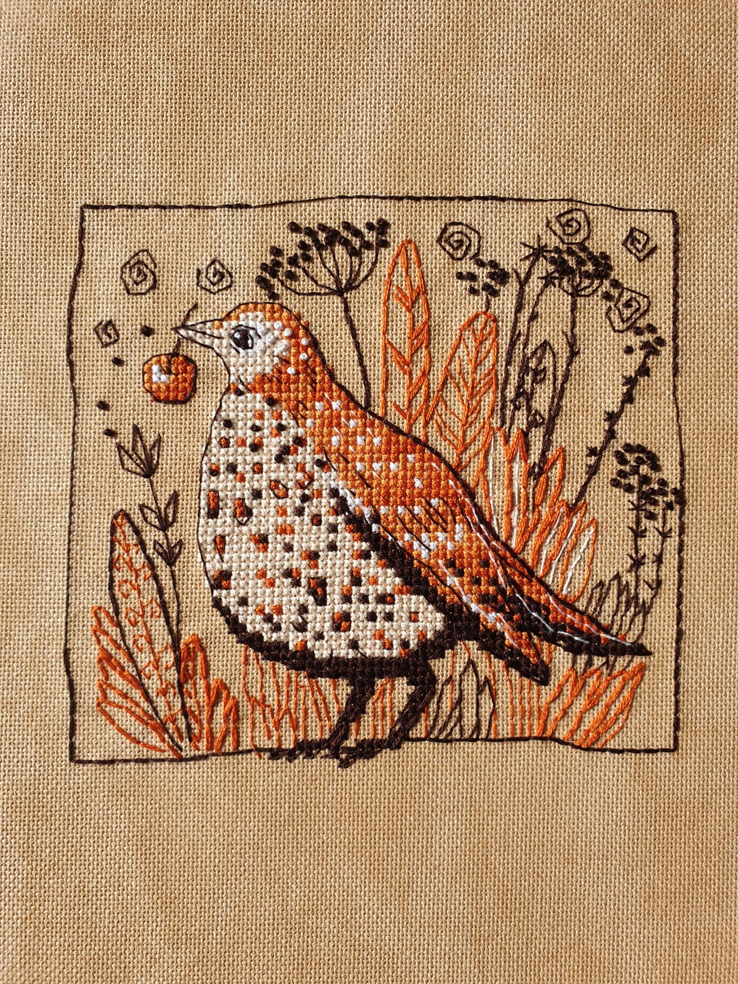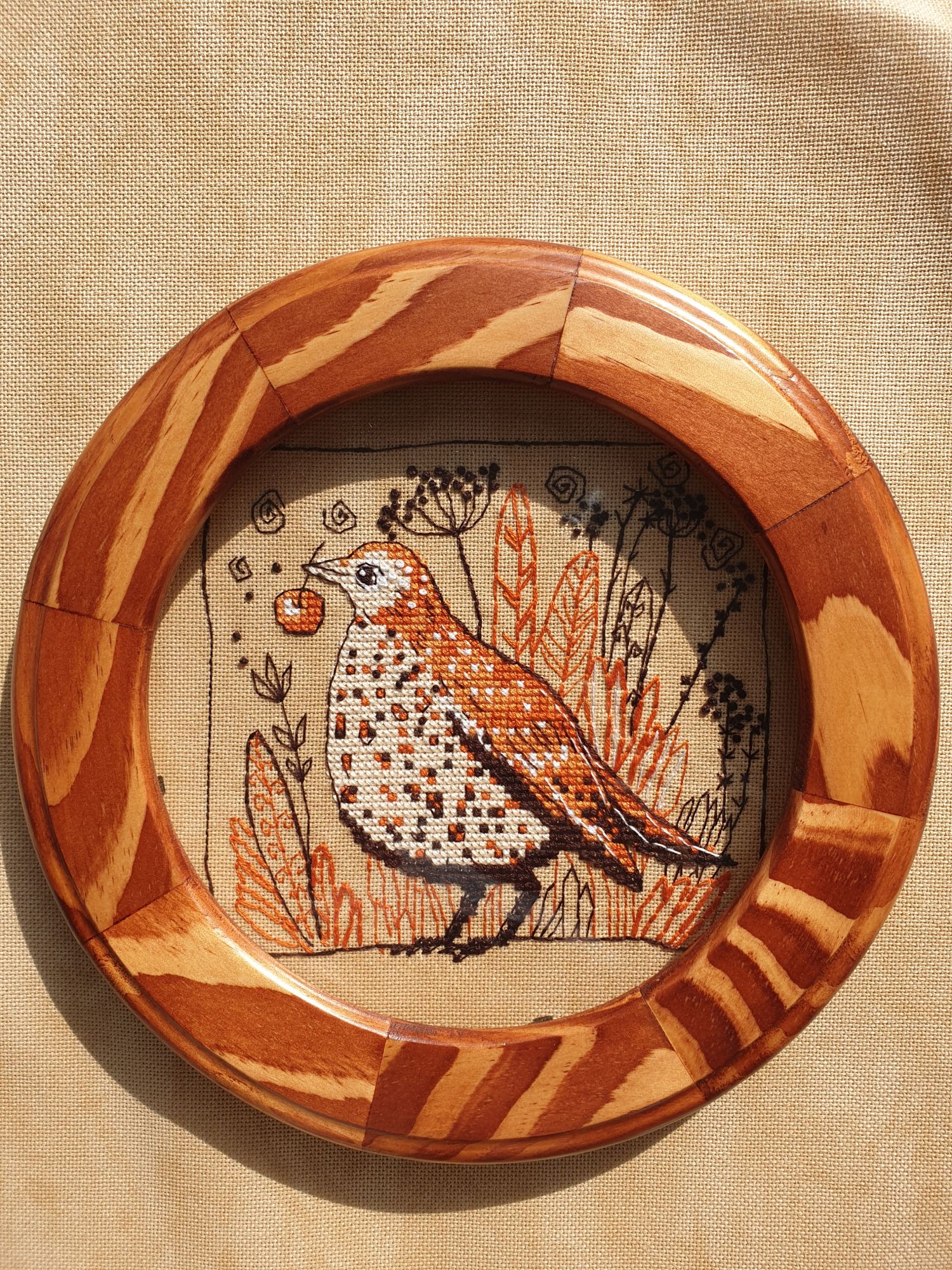 27 августа 2019 23.08.2019 в 08:52, TheSunniestDay сказал(а): Дрозд суперский получился! И прям-таки осенний! Основа ему хорошо подошла)) Спасибо! Заказала ему рамку. Правда, не уверена, что цветопередача на фото в интернете соответствует моему представлению о том, что должно быть. 23.08.2019 в 08:52, TheSunniestDay сказал(а): И журавли всё продолжают расти, даже ножка появилась - каждый раз жду журавлей, очень нежный сюжет) Журавликов планировала нынче финишировать. Но, страдая ленью и дальтонизмом, нишмагла Но чесслово, на днях будет готов! TheSunniestDay и ОльгаТольна сказали спасибо Поделиться сообщением Ссылка на сообщение