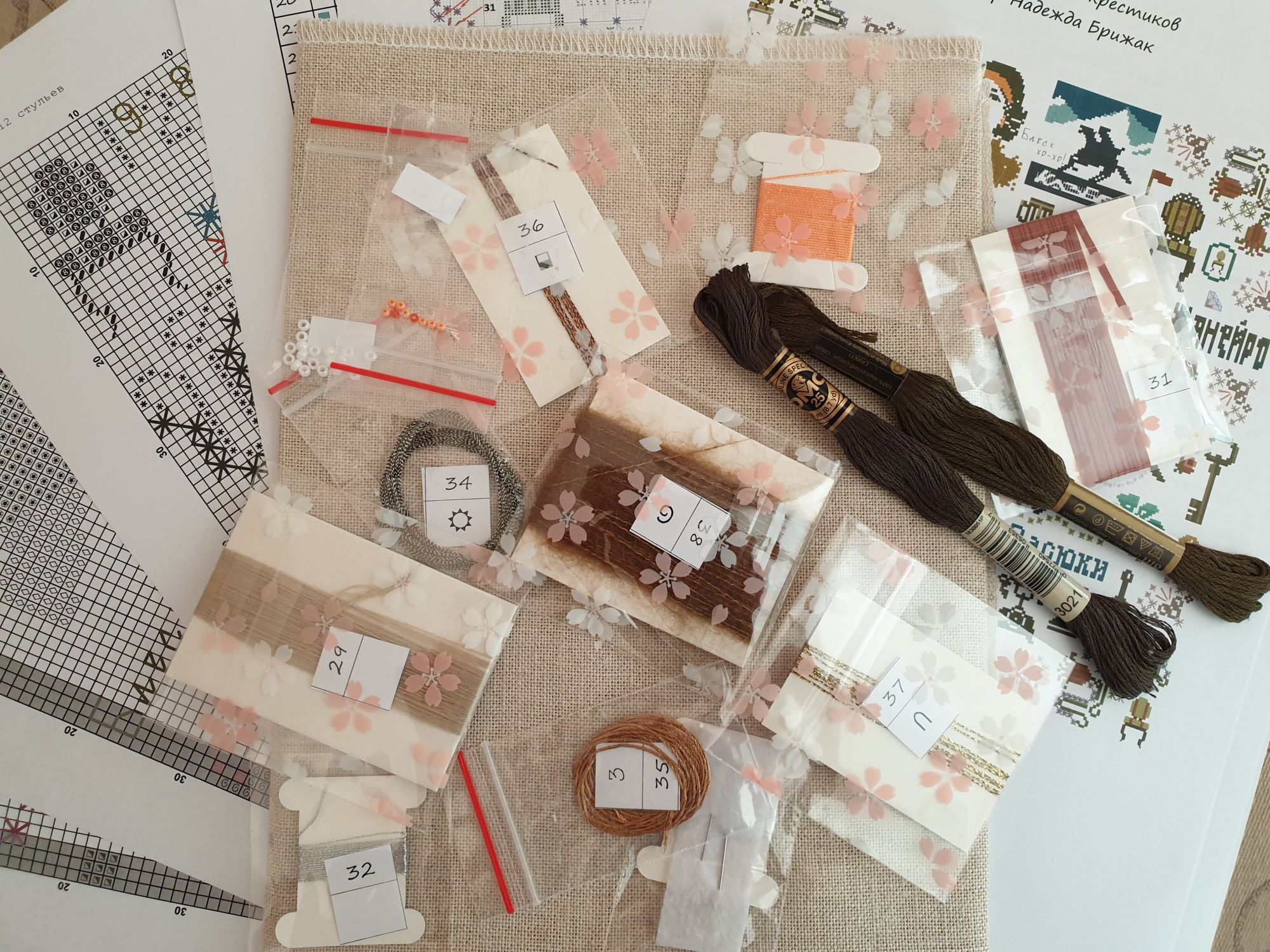 4 сентября 2019 Всем здравствуйте! Хожу-брожу по гостям, надо и у себя что-то написать) Сегодня два зеленения! 1.Журавли. Было: Стало: Это я, конечно, сильно в себя поверила, рассчитывая за один вечер сделать бэк. Нехочуха капризничала и отвлекалась всячески. Но я её победила. На фото в соснах времени не осталось. Да и "снаряжение" у меня в этот раз отсутствовало (как я снимать собиралась?). Журавлики классные, шить не трудно. Только я ткань на основу пожадничала. Прикинула "поля" по крайним полукрестикам, а что им воздуха надо-не сообразила. Вот такой носовой платочек. Теперь это чудо в прикладное использовать, видимо!) 2.Бабочка Пттцекрыл голиаф. Я её и не собиралась продолжать в ближайшее время но она мне позавчера сама в руки залезла и я, занятая своими мыслями, её незаметно вышила. Только мысли мот были настолько суровы, что леска затягивалась как косицы у первоклассницы. В итоге, нижние крылышки у Голиафа получились "деревянные". Он ими не машет Пусть реет-Птицекрыл! Было: Стало: Бисер остался, не скажу, что много- И хочу показать приобретение. Это набор по авторской схеме Надежды Брижак (Перунов цвет) 12 стульев. Купила сразу же, не раздумывая! Вот какая прелесть: Я, освоив нынче авторские схемы, и, вышив Масленницу, полюбившая примитивы, очень не ровно дышу на работы этого дизайнера. Весной по хорошей скидке купила несколько схем. С тем, что комплектующие как-нибудь соберу сама. Но тут решила взять набором, потому как используются нитки разных производителей и мохер, и ленты, и прочая. Комплектация- просто Вах! Всё завёрнуто, всё упаковано бережно. Ещё и сувенирчик: В общем, ми-ми-ми сплошное. Полагаю, что в скором времени я начну это чудо! На этом сегодня всё! Спасибо, что заглянули! KoViVi, Nata_Struchkowa, Nadinka-Blondinka и 14 других сказали спасибо Поделиться сообщением Ссылка на сообщение