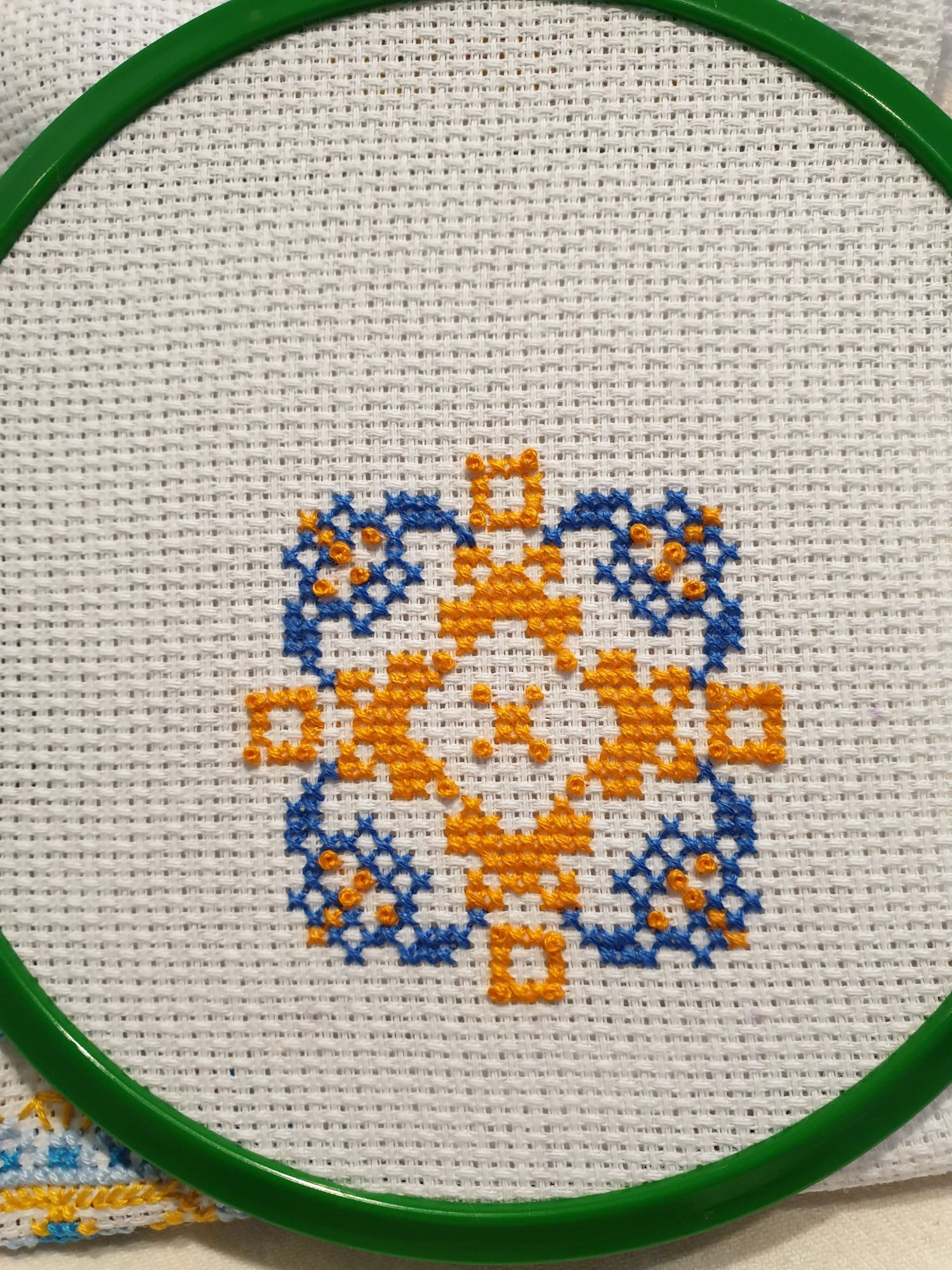 11 ноября 2019 Итак, всем: здравствуйте! С наступившим праздником! Ровных всем крестиков, свободного времени и финансовой стабильности! Чтобы от любимого хобби ничего не отвлекало, а в душе были мир и гармония Всю прошлую неделю моталась между Гоа и Анталией, на этой: Урал, Китай, Сахалин. На форум забегаю заголовки глянуть. Вышивать, соответственно, некогда. Нл порядка ради покажу промежуточные достижения.... 1. Овен. Осень. Было: Стало (Фото НЕ для гаечки!!): Как видите, кой что прибавилось, но хочется "налить водички" по-больше))) 2.Риолис. "Мамин букет(кодовое название)". Было: Стало (Фото НЕ для гаечки): Движется медленно из-за отсутствия моего присутствия Но ещё и потому, что серые полукрестики на сером фоне и шахматка бледно-салатовых, бежевых и снова серых меня бесят. Во всяком случае, закончила полностью нижний правый угол (левый тоже готов). Урра!! Я-молодец! Дошью зелень и можно двигаться дальше. Там, конечно, опять полно этих укропных цветочков, но, надеюсь, пойдёт веселее. 3. ОрнаментболлНичего вразумительного по этому поводу сказать не могу... Собрались в той же группе, где и новогодние флажки. Привлекла (увлекла), вероятно, инерционная волна, простота орнаментов и ожидаемая конструкция... а что все шары всякип шьют, а я? А мне тоже... В общем, я не виновата... Будет: Есть: Пока два элемента. Учитывая мои реальные возможности сегодня, видимо, только такое я и могу шить. Нитки кировские. Остатки от флажков Может они ещё и пригодятся, но в дорожных условиях что было, то и использую. На этом, пожалуй, всё. Спасибо, что заглянули! Хорошего всем настроения! Графиня, Путешественница, Yulik и 17 других сказали спасибо Поделиться сообщением Ссылка на сообщение