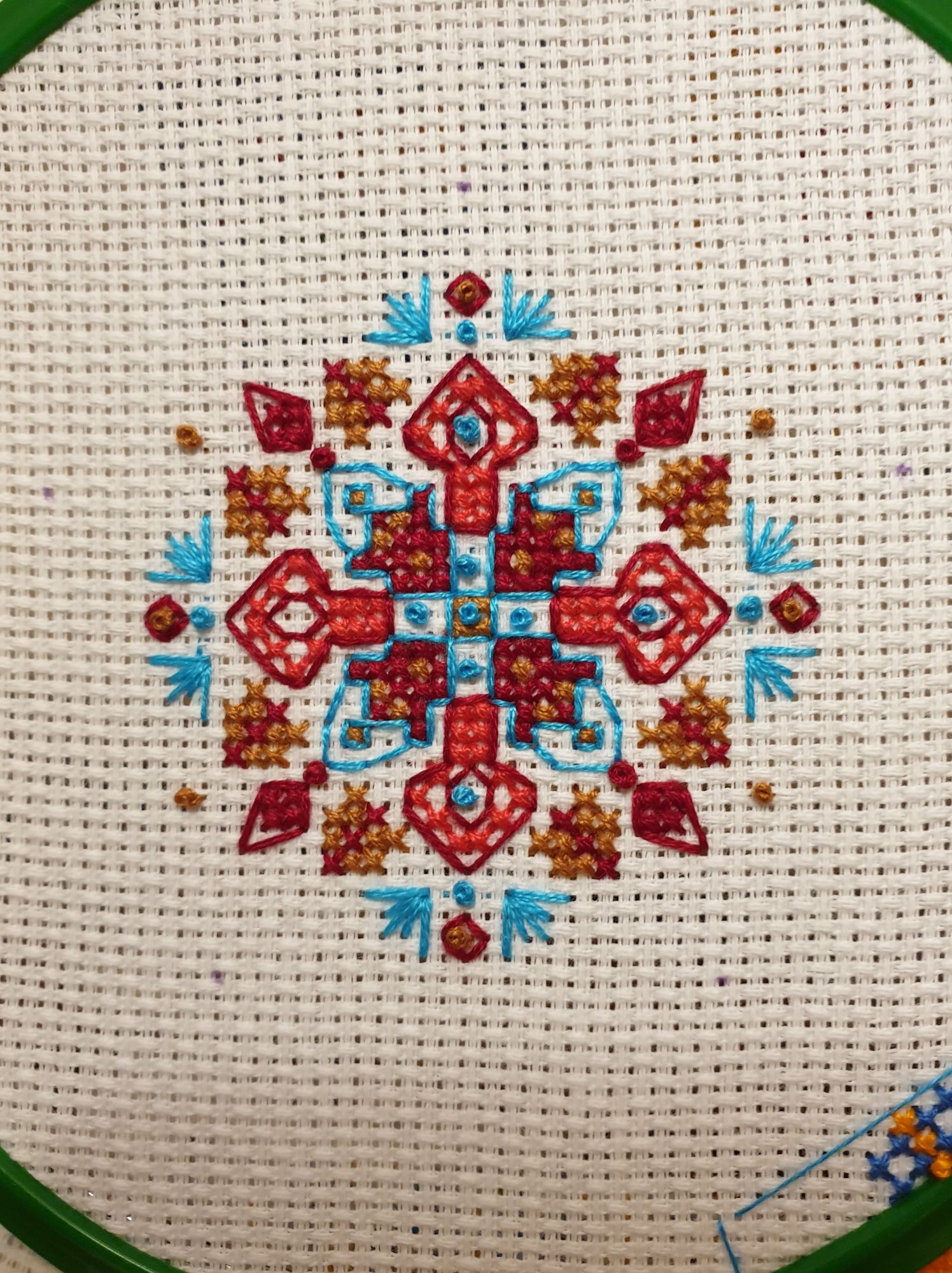 27 ноября 2019 Всем здравствуйте! На вышивальном поприще без особых прорывов. Орнаментболл. Вышиваю фрагмениы мяча. Добавилось три элемента: На цветной основе, наверное, было бы гораздо интереснее. Но, вышивается натом, что попало под руку. Первые фрагменты вообще, на флажковой ткани размещались: С одной стороны флажки, с обратной-узоры. Экономия На этом крестиковая часть вся! * * * Из заснеженной Сибири на пару дней слетала в тёплую страну. Вернулась в Москву на рассвете, солнце встаёт и радует. Ну, думаю, неужели и у нас погожий день? Ан, нет! На въезде в Москву видно, как наползает огромная туча смога, обволакивая своей серостью всё! А мы на природу и погоду ворчим. Погоды ни причём, солнце исправно встает каждое утро! Так что всем хорошего настроения, ярких красок и солнца если не за окном, то в душЕ! Хорошего всем настроения, спасибо, что заглянули! Кисуля, Путешественница, KoViVi и 16 других сказали спасибо Поделиться сообщением Ссылка на сообщение