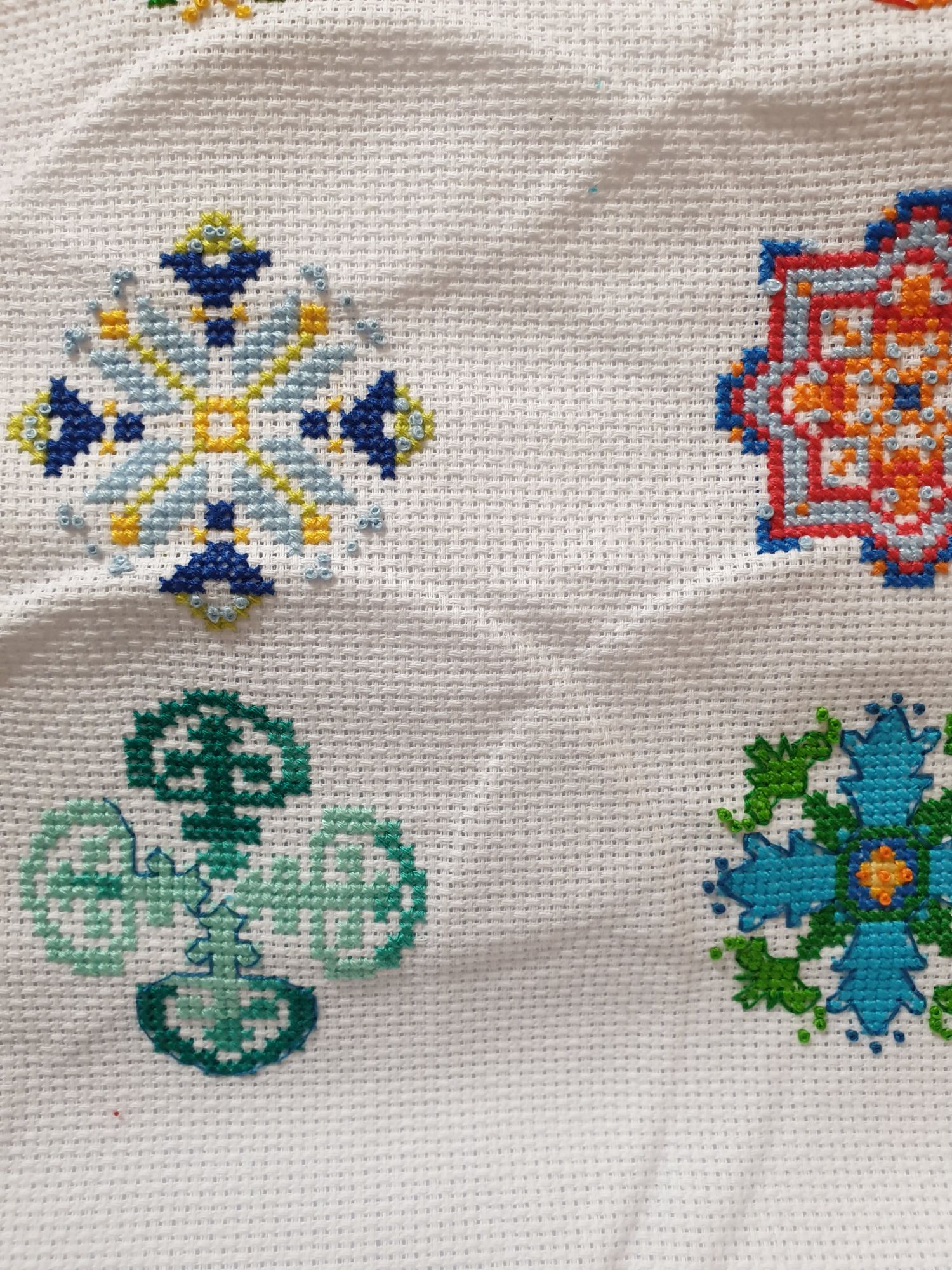 6 января 2020 Всем здравствуйте! От души поздравляю всех с Новым годом! Пусть он принесёт исполнение желаний, решение сложных задач, мир и счастье! Пусть в каждом доме звучит радостный смех, родные и близкие будут здоровы, а творческое вдохновение не покидает Вас круглый год! И в светлую Рождественскую ночь я каждому желаю добра и благодати! Пусть сокровенное сбудется и радость живёт в каждом сердце! Начну подводить итоги рукодельного года. Бой курантов, по моему мнению, это не самая строгая граница. Есть же ещё Старый новый год! Итак! 1.Орнаментболл. Зеленим гаечку. Закончила недостающие элементы и собрала. Это мой первый опыт с мячами. Освоила бискорнюшный шов. Собственно, я и ввязалась в это дело с целью научиться. Мастеркласса не дождалась. Но "не глупее паровоза" - разобралась и справилась. А продвигать процесс в компании, всё-таки, веселее Детальки (в гаечку): Последнюю в проекте деталь вышила дважды. Нашло на меня какое-то помутнение.. Эти фото НЕ В ГАЙКУ!!!!: Почти вышив элемент, увидела, что не оставила отступ. Не то что на припуски, на сами детали... Видимо, такой уверенной я себя почувствовала, что решила не считать клеточки. Сравниваем с ранними: -тут я даже что-то рисовалаПерешила. И ещё хуже!! В процессе сборки выяснилось, что припуски маловаты не только здесь:. Ну да ладно! Я итак много времени на этот мяч потратила. Сборка: Фото В ГАЙКУ, пожалуйста, все элементы: и ОН: Вот такой мячик в собранном виде. В гаечку, наверное, лучше коллаж добавить: 2. Новогодние мыши. Пара новых процессов: заводим и сразу зеленим гаечки. Может, они и не новогодние по сути, но по настроению и исполнению в предновогодний вечер-самые что ни на есть!!!! 2.1. РТО Мышка-девочка-красавица. Магнит на деревянной основе. Предлагая этот комплект в качестве конфетки, я не смогла удержаться чтобы не взять себе такой же. Мышка-мальчик-молодец. В этих наборах понравилось всё! Лёгкие в исполнении, милые, на холодильнике чувствуют себя превосходно! Разошлись на подарки, думаю повторить на пластиковой основе. Ниток осталось на 2 отшива совершенно точно!!! Ещё и останется) Для меня это первый опыт вышивки на деревянной основе. Рада, что не разочаровалась. И рада, что такую чудесную парочку разыграла в конфетке- вот уж не стыдно за подарок! 3. Рубрика: за окном... Я недавно вышла из отпуска, а потому, 2го числа пошла на работу. И сегодня вернулась. Куба. Первый пункт рабочего графика. Скажу честно такого многолюдья я на Острове Свободы ещё не видала! Хгмм... откуда фсе эти люди? Ну ведь, чесслово, приткнуться негде! Так, конечно, не везде, однако.... Конечно, есть и яхты, и безмятежная синь: Цветы: и рассветные лучи: Жизнь хороша!! И какая-то странная штуковина в номере: Я не знаю что это. А Вы? На этом одну часть отчёта заканчиваю. Спасибо, что заглянули! Каори, Millanka, Дикая белочка и 14 других сказали спасибо Поделиться сообщением Ссылка на сообщение