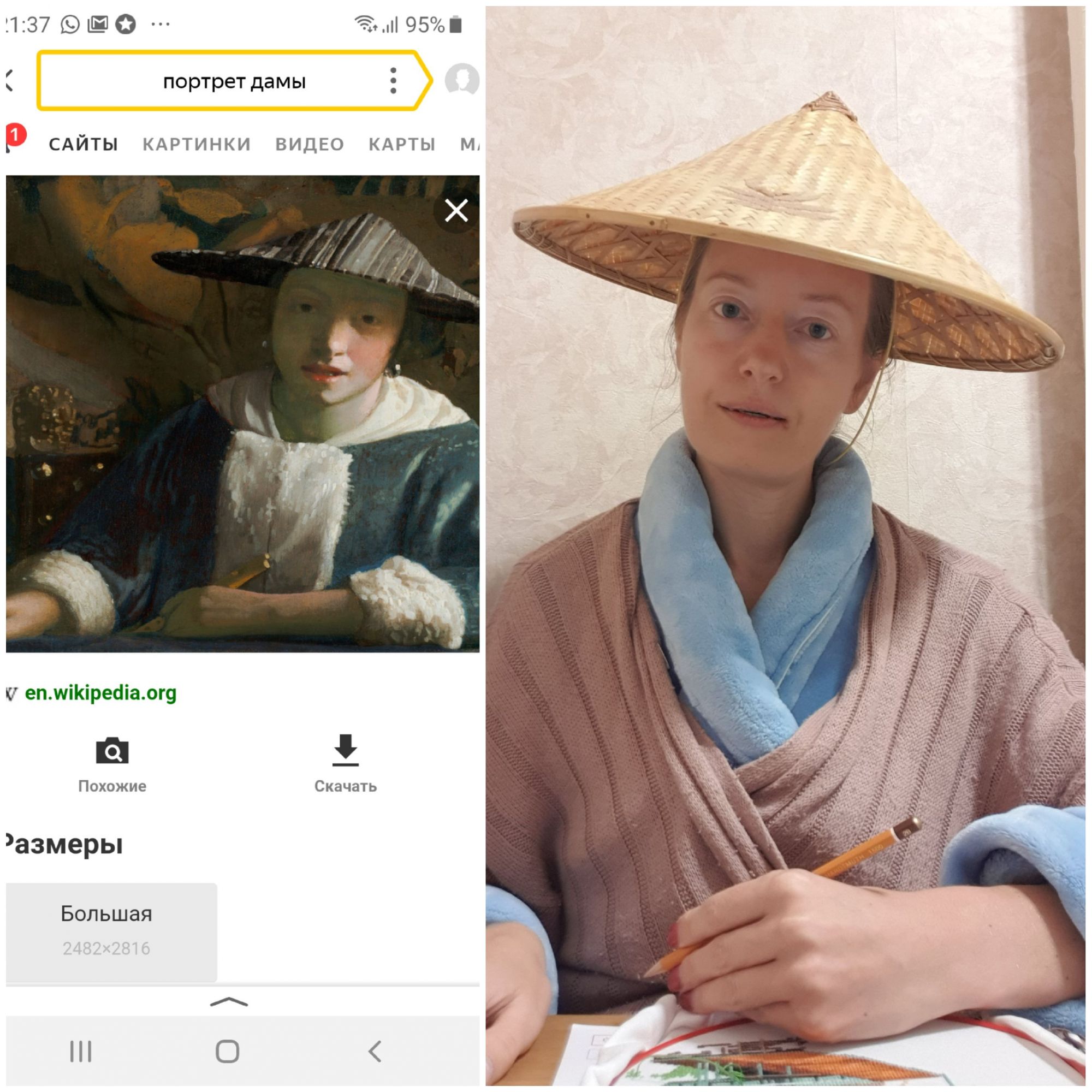 7 апреля 2020 2 часа назад, anna_straube сказал(а): Ты там аккуратнее! Поменьше выходов на улицу, Я исключительно по делу! 2 часа назад, anna_straube сказал(а): побольше подходов к вышивке! А вот тут не могу обещать. Включила видеоурок по акварели, с тем, что послушаю, а утром напишу в своём темпе. Сама взяла Мельницу, вышиваю. Подруга пишет: "Ты видела в инете шлешмоб изоляция?" - люди фотографируются, изображая полотна живописцев в бытовых условия из подручных материалов. Я не слышала. Открыла инстагарам, полистала и дальше шью. Она скидывает "самодельный шедевр", посмеялись. Придумать можно много чего, было бы желание. Она говорит: ничего не придумывается, хочу, но не могу. Исесно, что делаю я?- тыкаю в яндексе запрос "портрет дамы", и пошла по порядку изображать. В середине процесса, думаю: "Позвонит кто-нить по видеосвязи-и не объяснишь, чем я занимаюсь" Marusya1978, Tata44, ОльгаТольна и 3 других сказали спасибо Поделиться сообщением Ссылка на сообщение