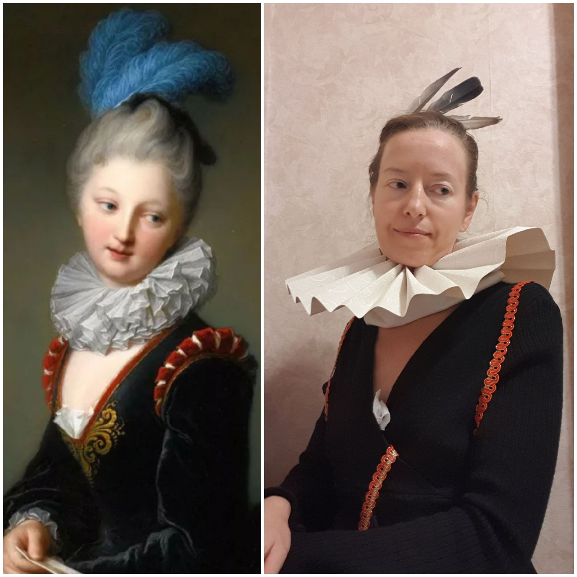 8 апреля 2020 7 минут назад, Tata44 сказал(а): Очень интересно! Очень прикольно! Зависла на полчаса. 7 минут назад, Tata44 сказал(а): Аня, здесь видно, что ты дама из позапрошлого века! Тебе пойдут кринолины и высокие красивые прически! Ага! Я честно накрутила валик на макушке, как у тётеньки на портрете, а его из-за ракурса не видно 9 минут назад, Tata44 сказал(а): А для каких таких демонстрационно-учебных целей, можно узнать? Самоизоляция для многих прибавила работы, а другим многим вдруг оказалось нечего делать. В соцсетях запустили флешмоб по мотивам произведений искусства. Я и не слышала. Но вчера подруга обратила моё внимание на эту тему (хештег #самоизоляция). Я полистала-прикольно, но заниматься таким мне некогда. Я свои идеи не успеваю реализовывать. Как вообще может возникнуть ситуация, чтоб нечего было делать? А подруга воодушевилась, но уверена, что для воплощения замысла нужна команда. Один не справится. Ну решила и решила... сиди дальше вышивай! Ан нет! Мне приспичило показать, что не сходя с места, без оборудования, декораций и грима можно, при желании, идею поддержать.... Для выкладывания в сеть я бы подкрасилась, фон другой выбрала, детали более тщательно отработала (например, тесёмку к платью можно приколоть булавкой, а де удерживать подмышкой). Но, наверное, в том и суть, что это была экспресс-зарисовка. Надеюсь, вдохновила кого-нибудь Но посмеялись-это точно Millanka, оленек, ОльгаТольна и 6 других сказали спасибо Поделиться сообщением Ссылка на сообщение
