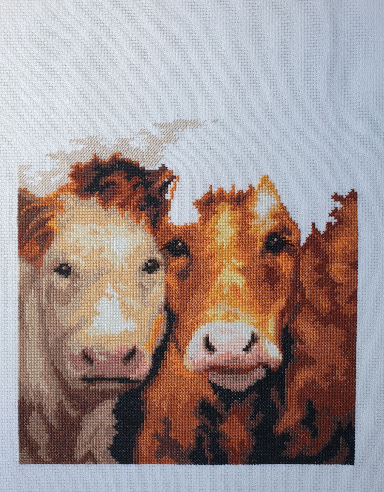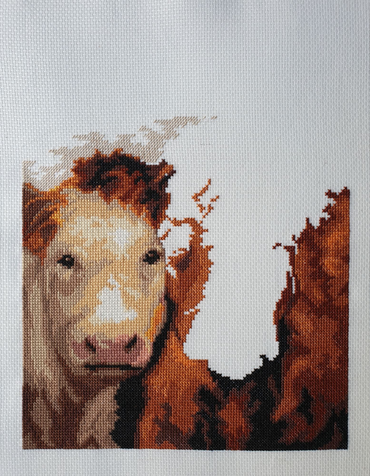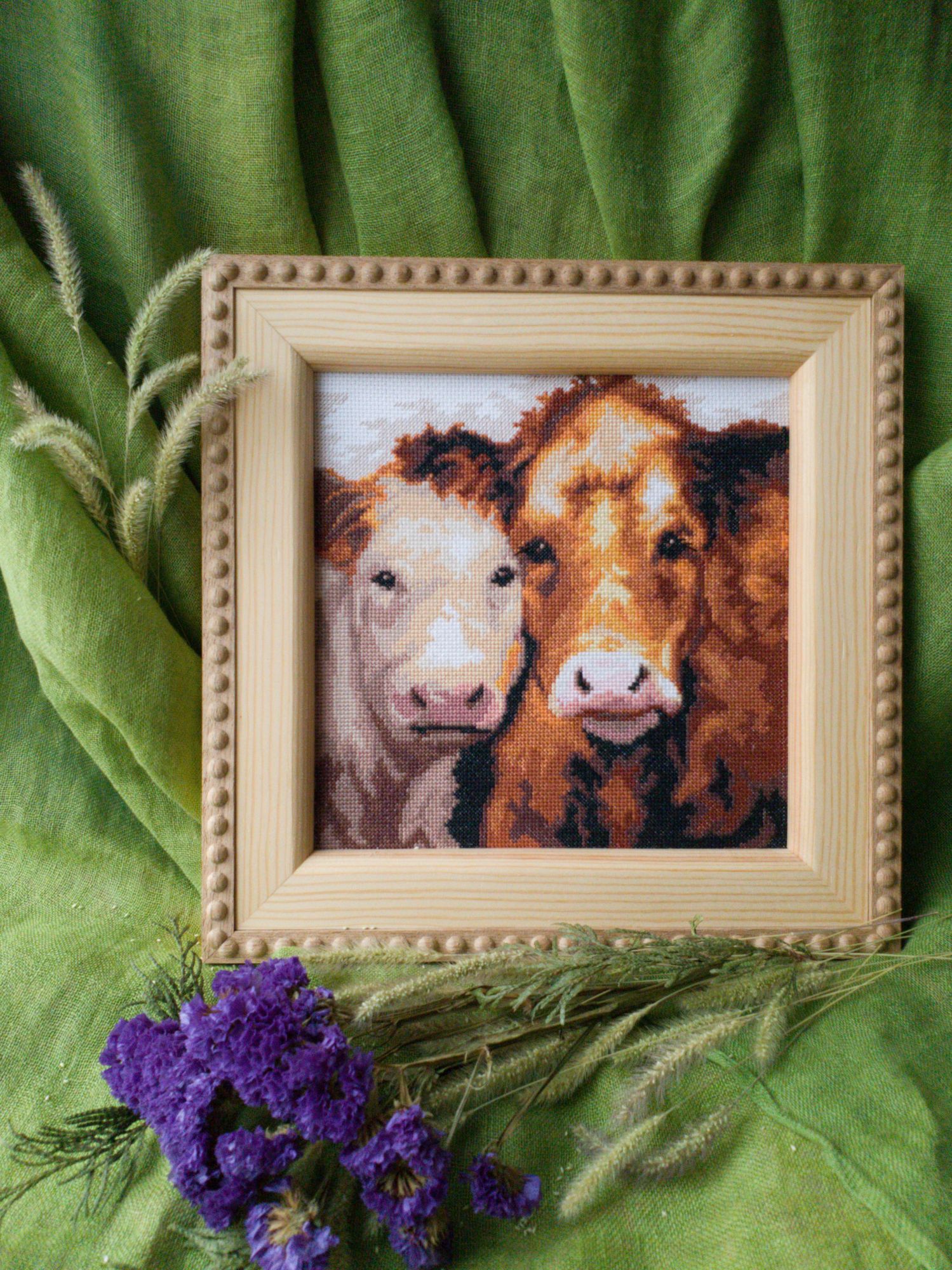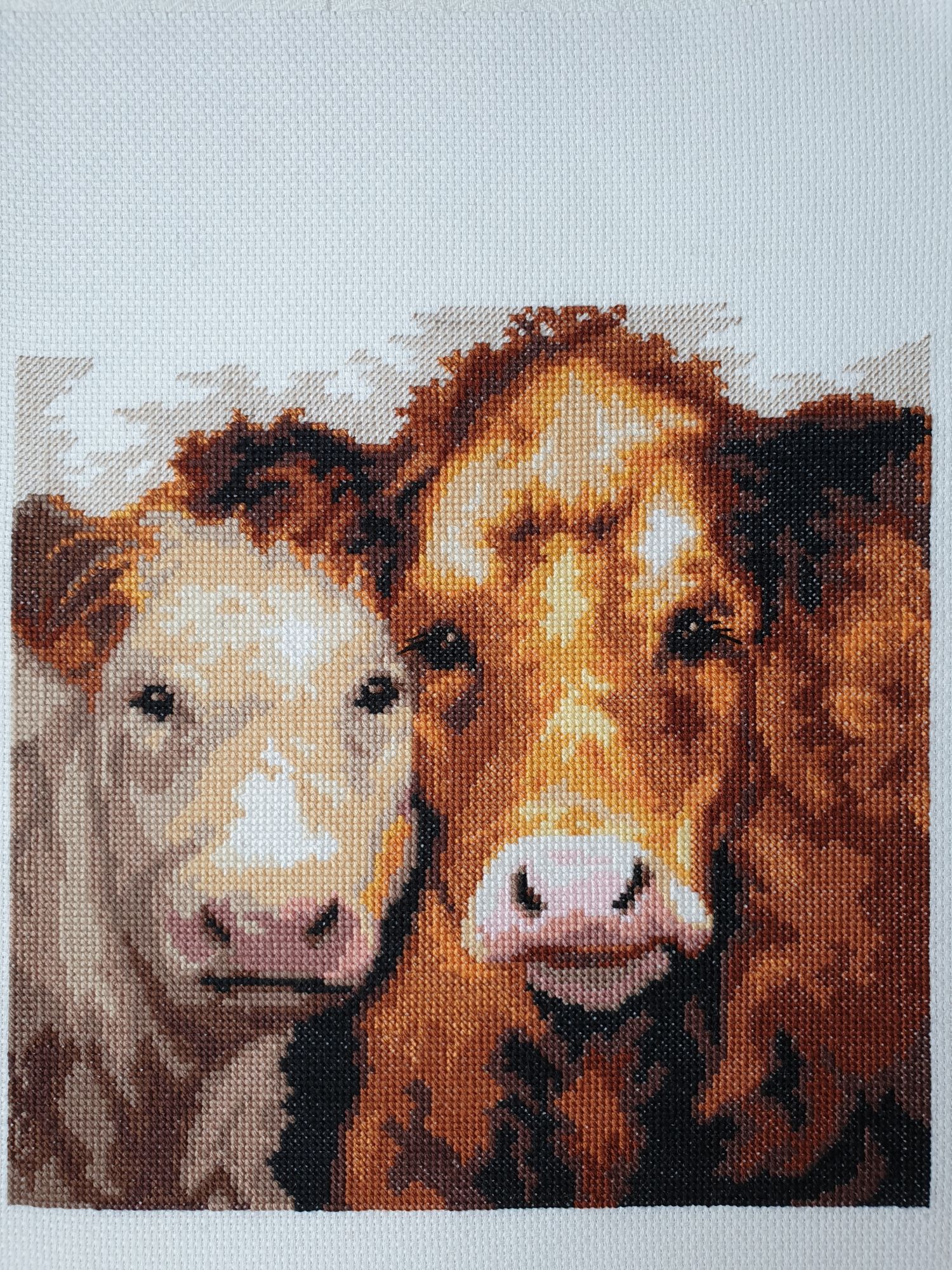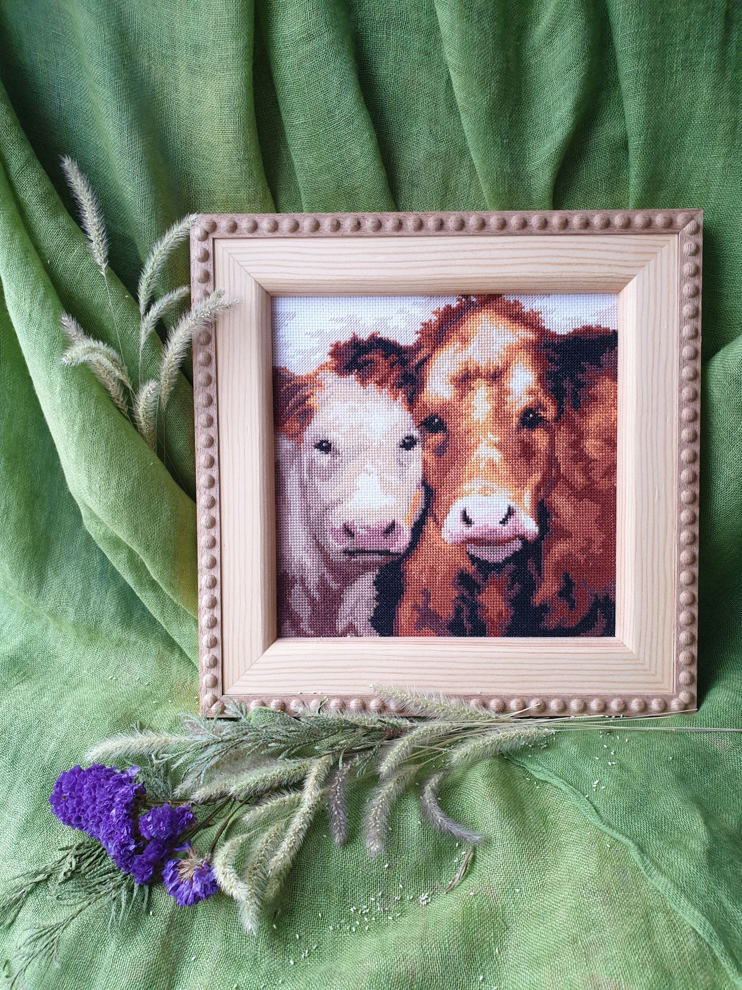 13 февраля 2021 Всем здравствуйте! Влезла я с Индейцем и сорвала себе отчёт! Но тема эта так и не закрыта Начала я примерять их с Девушкой и выяснилось, что РАМЫ РАЗНЫЕ!! Ну.. то есть... рамы-то одинаковые, а вот гордый воин прилёг, что, на мой взгляд, несколько не вежливо. Эту вышивку разместили поперёк. Длина и ширина готовой рамы отличаются на 1 см. И при натяжке этот момент был упущен. Я не заострила их внимание, повторно не наказала. Ну и раз всё шло не так, то и подобное непременно должно было приключиться. Снова нужно переделывать. Можно отнести в эту багетку и попросить исправить. Но я туда больше не хочу ехать. Самой возиться ещё меньше хочется. Пока отложила в сторону. Для разнообразия хочу позеленить гаечку. ЧМ "Коровы". Было: Стало: нежый нос и красивые глаза, ушки и чубчик Из запасов подобрала деревянную некрашенную раму, дошила под её размер по 4 ряда по бокам, 3-вверху и 1-внизу: Натянула сама: Фото для галереи не удалось: из-за снега не хватает света. В квартире не оказалось сена И творческая мысль заглохла. Сегодня мне добавить к сказанному нечего. Спасибо, что заглянули. Берегите себя! Путешественница, lenning, TheSunniestDay и 14 других сказали спасибо Поделиться сообщением Ссылка на сообщение