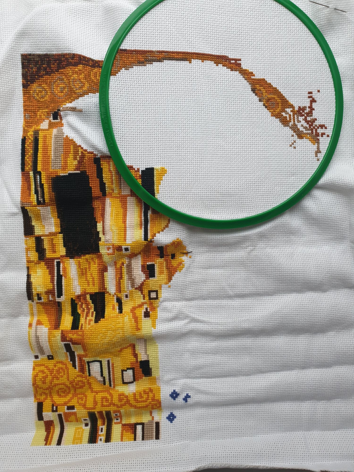 16 ноября 2022 Всем привет! Спонсор сегодняшнего отчёта: солнечное утро и снежная белизна за окном. Фоточку сделала , можно и продвижения показать. 1. Риолис. "Поцелуй". Было: Стало: Угол оформился. Странная геометрия процесса продиктована моей любовью к шитью логических фрагментов. Данный этап, я считаю, самый трудный. Шахматные мотивы близких цветов не самых радостных оттенков и слепая схема. Я специально сделала эту часть работы сейчас, чтобы дальше вышивать кайфуя. Весёленькими цветами и крупными блоками. 2. Панна. "Богатство в доме". Этот набор прикуплен был в пару к кошечке из этой серии. Начат когда-то в порыве "начать и закончить быстро", быстро же организовать зелёную гаечку. Дальше, как обычно, пошли отговорки. Хотела "китайскую тему" отдельно принести, потом не могла сфотать, а, значит, и вышивать (как же без фото?). Так и лежит, натянутый на пяльцы, третий год Сегодня утром сфотала, а оказалось, что такое фото у меня есть, т.е. вышиванию ничего не препятствует. Моей красной гаечке такая малявочка особо не нанесёт урон. А подпольную лавочку надо закрывать)) Пока писала, закончилось и утро, и половина дня. И солнце куда-то спряталось) Но я старалась... Спасибо за внимание. Хорошего всем настроения! TheSunniestDay, Хозяйка смешных зверей, Беладонна и 13 других сказали спасибо Поделиться сообщением Ссылка на сообщение