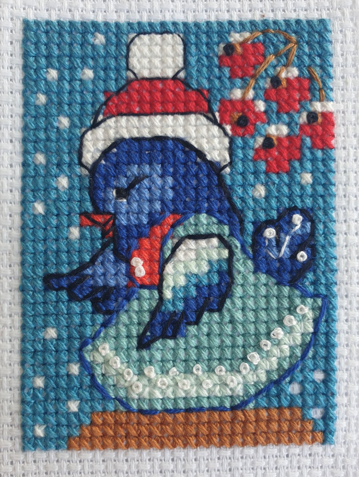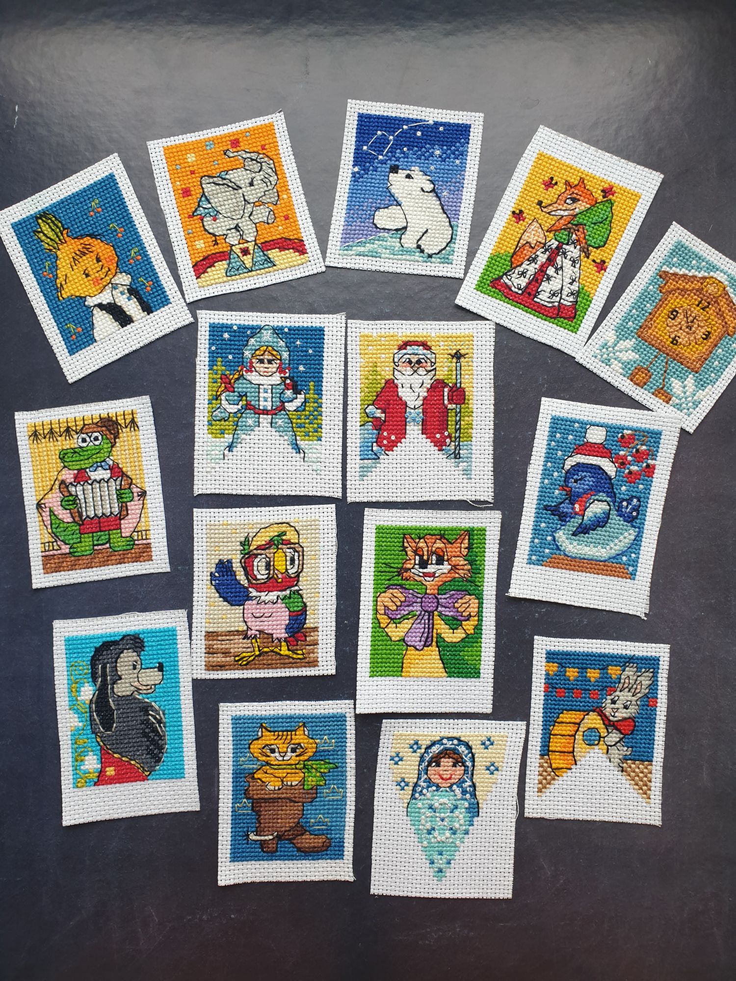 19 декабря 2023 Всем привет! Даже в пальмовом краю запахло новым годом. Я вышила несколько флажков. Для пляжно-дорожного процесса формат удобный. Надеюсь, закончу до боя курантов. Но, боюсь, что все симпатичные картинки из серии я уже вышила. Итак, Кеша с Гаити: Птичка в пальтишке: Благородный Артамон: Фаворит из сегодняшних-пацифист Леопольд, франт и интелигент: И Матрёшка: Вышиваю по схемам, но не особо заморачиваюсь, если ошибаюсь. Бэк и фрузики тяп-ляп. И так сойдёт! В следующем сообщении немножко расскажу о впечатлениях от поездки, а пока- новогодний антураж) Спасибо, что заглянули! malenta, TheSunniestDay, Хозяйка смешных зверей и 12 других сказали спасибо Поделиться сообщением Ссылка на сообщение