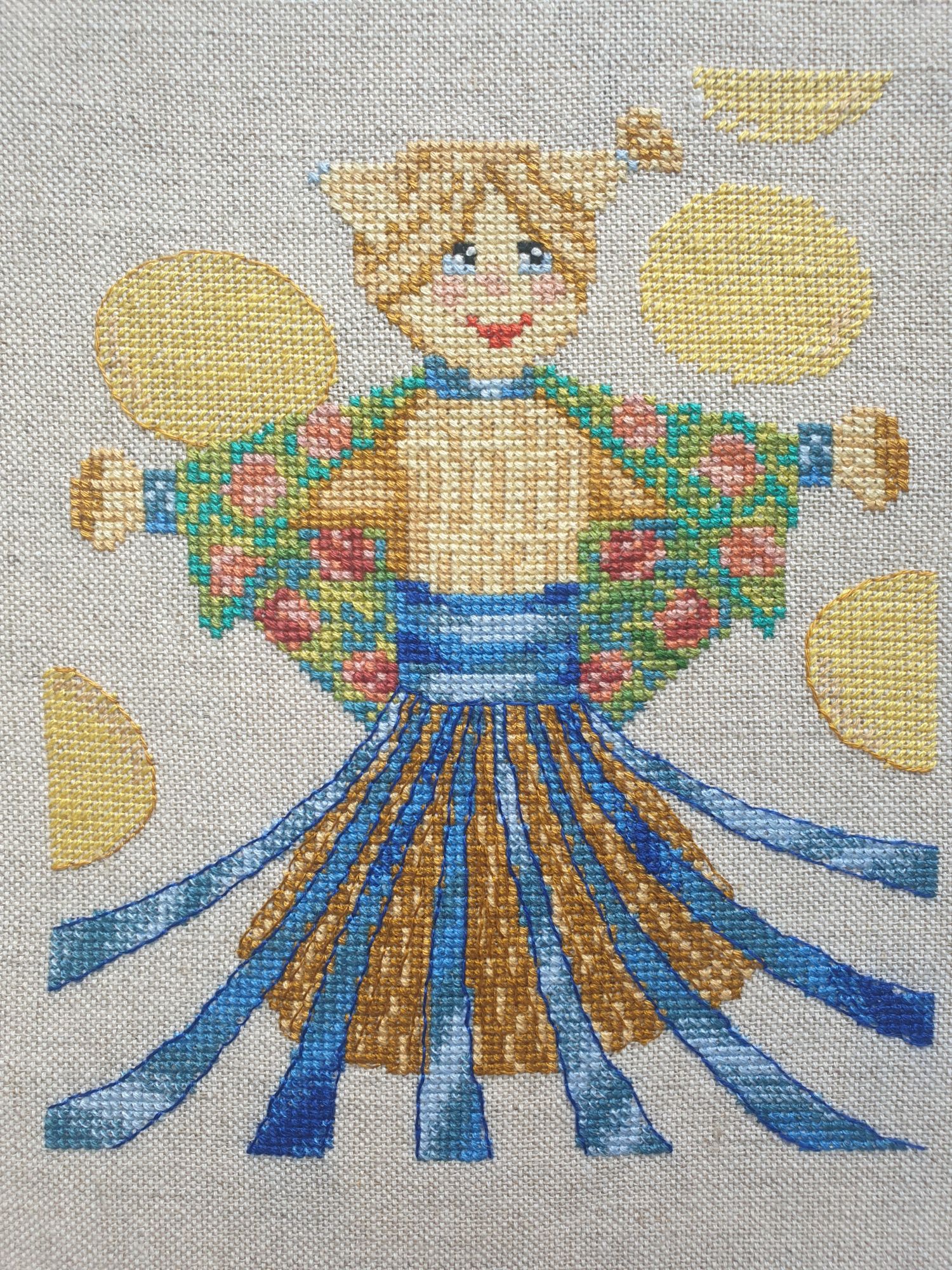 26 марта 2024 Всем привет! Мой отчёт как "Шагреневая кожа", чем больше хочу написать тем меньше решимости это сделать и малозначимей событие о котором собиралась написать. Сначала о крестиках. И дело не в том даже, что их мало, их же ещё сфотать вовремя надо. И настроение - чтобы показать. 1. "Масленица" она же- "Чучелка". Ага, вспомнила я её на масленичной неделе и даже почти довышивала. Ключевое слово- "почти", а уже неделя поста прошла... Но лучше такую показать, чем до следующего года отложить. Было 5 лет назад: Стало: Девчуля симпатичная, сгорать явно не хочет. Поэтому, наверное, тормозит с самого начала. Как-то она у меня не задалась, хотя энтузиазм, помнится, был. Может плохо пошла, потому-что ткань мелковата, может, просто не в тот день стартанула. Вначале я перепутала цвета: по разнице низа и верха видно. Смотрится как юбка - полный ысклюзифф! 2. Риолис "Гагарин" Зимой вышивала. Но вот уже 2й месяц выглаженная тряпочка торжественно висит на спинке дивана (чтоб не помялась) и добавить мне к этой истории нечего. Было: Стало: Если запялю, есть шанс, что дошью в этом году Дальше- страшная история , она же - анекдот , она же- "руки, откуда ноги" Речь идёт о белых маках, которые я показывала ранее. В своё время очень желанный набор был начат и брошен по двум причинам. 1: для разъездного характера не пригоден - разные стежки, бленды и, самое главное, огромная простыня-схема. Перелётной птичке это было не удобно. 2: вышив пару лепестков первого цветка, нашла ошибку, допущенную по невнимательности. Помню, что вывод был однозначный-выпарывать и перешивать, но тогда и на плановые действия времени не хватало, не говоря о таком. Итог: набор убран, суть проблемы забыта, но помню, что "такой-то значок переделать". Ещё по этому набору мне поступал запрос от форумчанки по количеству ниток определённого цвета. Их не хватило, она связывалась с производителем, итд. И вот, в этом году я, полная решимости и со свежими силами, принялась вышивать. Перепроверила тот значок, всё, вроде, на месте. Так и не поняла, почему он меня смутил и даже подосадовала, что долго считала процесс испорченным. Почти дошила второй цветок, который уже могла бы и показать, даже в тайне засчитала себе "треть процесса" в актив. Тут, как и ожидалось, у меня закончилась нить, о которой ранее переписывалась на форуме. Я со всем пылом юности вступила в переписку с производителем (фирма "Алиса"). А что?- все пишут и я хочу, прецендент был решён в пользу вышивальщицы, в кои-то веки есть реальный повод вставить свои 5 копеек и поделиться ценным опытом по набору, купленному 7 лет назад... В общем, вы поняли, я была полна... Кстати, если вы читали "Вторая жизнь Увэ", там есть замечательная мысль, повторяющаяся периодически о каком-нибудь событии: "не то, чтобы он был против, но ведь положено" Я тут тоже, как Увэ: не то что бы мне совсем невмоготу было эти нитки купить, но ведь их же не доложили... Производитель ответил оперативно, указав номер ниток. При этом высказали подозрение, что я вышиваю в 4 нити. Я терпеливо объясняю, что в данном дизайне используется крест, полукрест в 1,2,3 и 4 нити и я шью строго по схеме, и цвета этого точно мало, потому-что эта нить используется в трёх видах стежка, итд. Мой пыл юности постепенно гаснет, т.к. мне и номера достаточно, всё-таки я живу в крупном городе с развитой торговой сетью и мне найти такие нитки проще, чем 