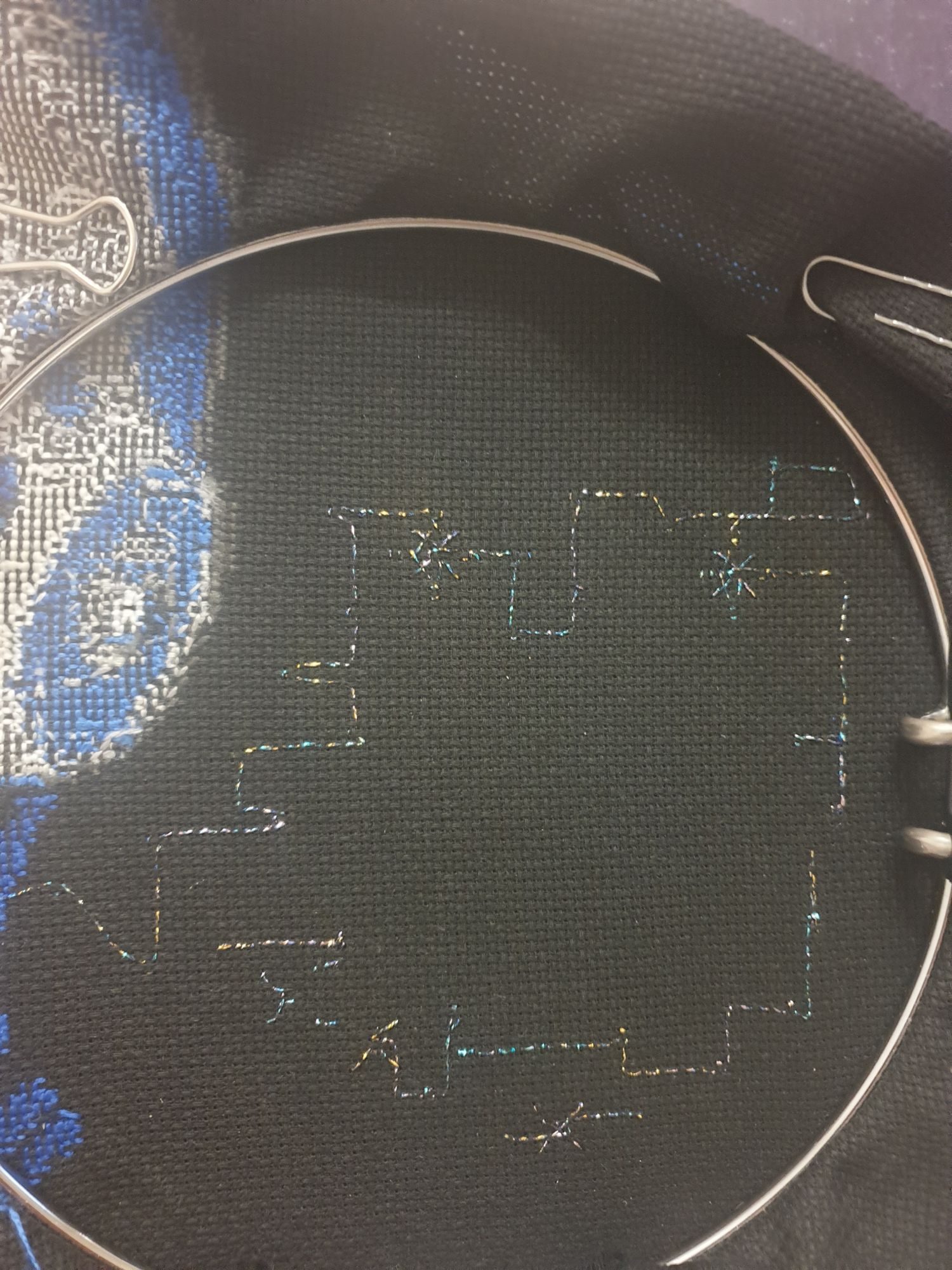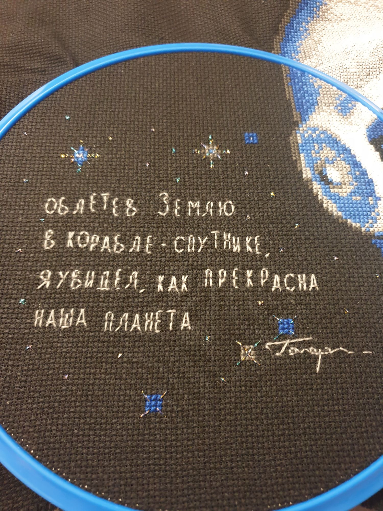 16 апреля 2024 Всем привет! Малыми шагами, "в час по чайной ложке" вышила следующий фрагмент процесса. Риолис Гагарин Пожалуйста в гаечку! Как сфотографировать, чтобы показать волшебство, создаваемое металлизированной нитью? Мерцающий космос даже приправильных настройках света и ракурса не будет так мерцать в кадре, как это видно живому глазу. Металлизированную нить, чтобы протяжки не светились в дырочки канвы, тянула под прямым углом, от чего изнанка выглядит по-своему загадочно. (Фото не для гаечки): Пока у меня всё. Спасибо, что заглянули! Солнышка всем и хорошего настроения. Берегите себя! OlkaY, Nata_Struchkowa, ms_flora и 11 других сказали спасибо Поделиться сообщением Ссылка на сообщение
