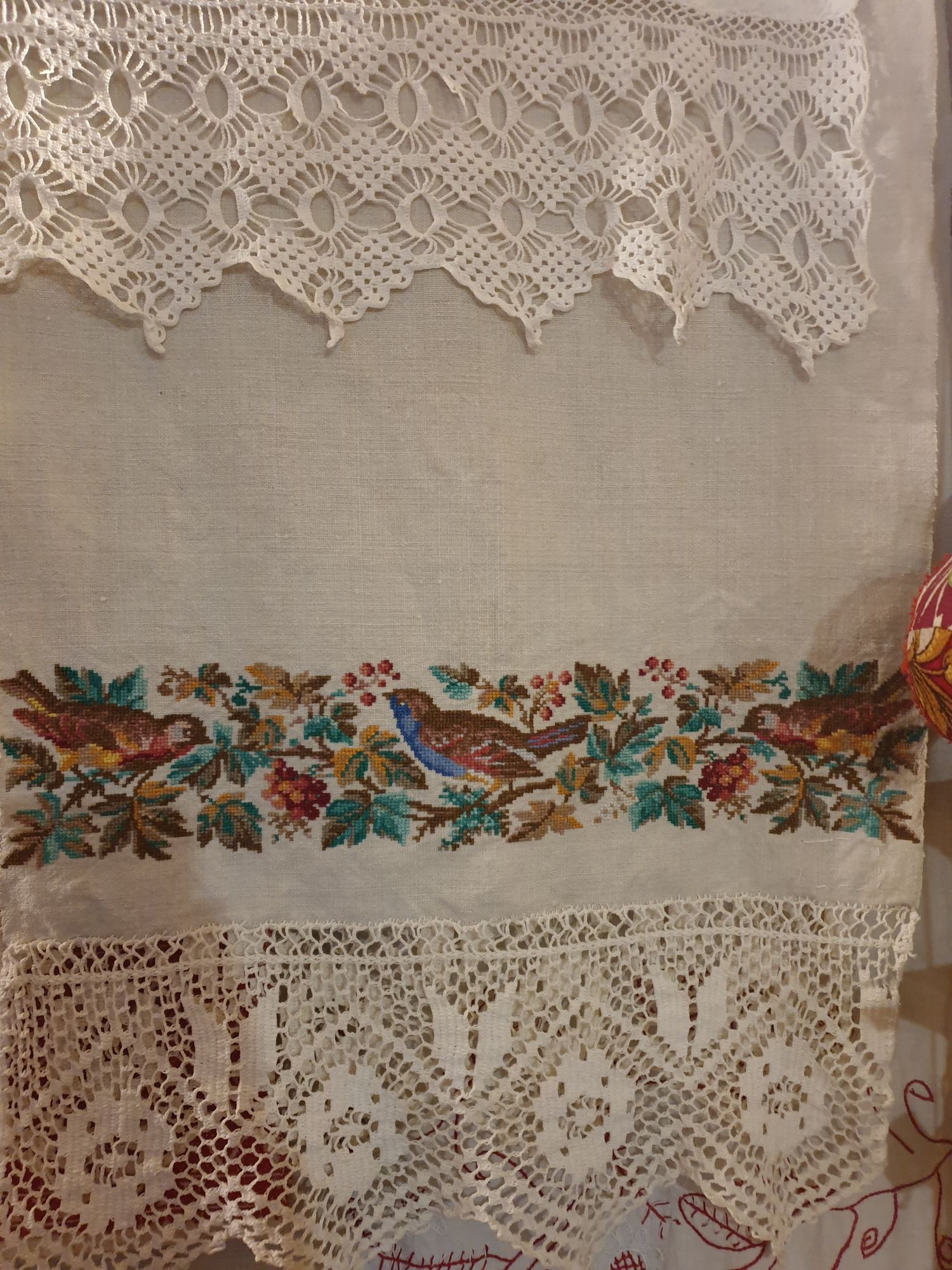 19 ноября 2024 Всем привет! Вышивальные активности снизились, но я соскучилась! Лето промчалось! Оказывается, что работать не просто. А мои привычки к недельным выходным совсем не сочетаются с реальными трудовыми буднями( Как упоминала ранее, я устроилась в круизную компанию и продаю круизы по рекам. Ооочень интересно! Мои знания географии, особенности регионов и навыки общения очень пригодились в работе. И много нового пришлось освоить, так что вышивать было некогда совсем. Волга, Кама, Дон, Обь, Иртыш, Енисей, Лена, Ладожское и Онежское озёра, Байкал, Камчатка. Буг и Припять, Янцзы и Нил. Горизонты, по прежнему, безграичны! Свыше 90 теплоходов, со своими особенностями и на любой кошелёк. Мои извилины трудились всё лето, осваивая эти миры. Арктика и Антарктика - о, Боги, это вообще запредельная красота! Морские круизы- от Карибов до Японии, Персидский залив и Средиземноморье. От морей я поначалу отмахивалась и не вникала - моя профдеформация сказалась. То, от чего горят глаза у моих коллег, меня не вдохновляло совсем - что я там не видела!? Но сейчас, с закрытием навигации по нашим рекам, пришло время заняться морскимм круизами. И как-то не так меня раздражают упоминания Турции, эмиратов или Лазурного берега. Однако, здесь лайнеров по-больше и палуб на них - в разы. Извилинам есть куда закручиваться! В октябре сама сходила в круиз на 4 дня. Мышкин, Тверь и Углич очень меня после всяких Мальдив порадовали) Дождик русской осени был как бальзам для моей души! Походила по музеям. Сфотала несколько вышивок: В Твери не фотографировала - забыла телефон в каюте, но очень меня заитересовали вышитые предметы в Музее городского быта. Некоторые швы я даже не знаю. В Угличе понравился музей гидроэнергетики. Ранее я в нём не была, но теперь рекомендую. Современно, познавательно и очень ёмко! А этот экспонат меня до слёз довёл: кусок кабеля, который изготовили в блокадном Ленинграде и протянули по дну Ладожского озера подо льдом и под обстрелом. Женщины- горожанки держали его на руках, когда шли работы. По 70 кг веса на человека. Изготовили из того, что насобирали во всём городе. В качестве изоляционного материала использовали бумагу, на которой печатают деньги. Провели в осаждённый и обесточенный город энергию. Часть этого кабеля до сих пор проводит электричество в Питере. В общем, река, пейзажи, чай из самовара, познавательная информация. Авторитетно заявляю: ходите в круизы! На теплоходе, кстати, рисовала пастелью на МК, выиграла ложку в лотерее и училась играть на скрипке: Публике представила исполнение произведения "В траве сидел кузнечик", но вынуждена признать, что зрители услышали "Кин-дза-дза" OlkaY, Путешественница, Marusya1978 и 11 других сказали спасибо Поделиться сообщением Ссылка на сообщение
