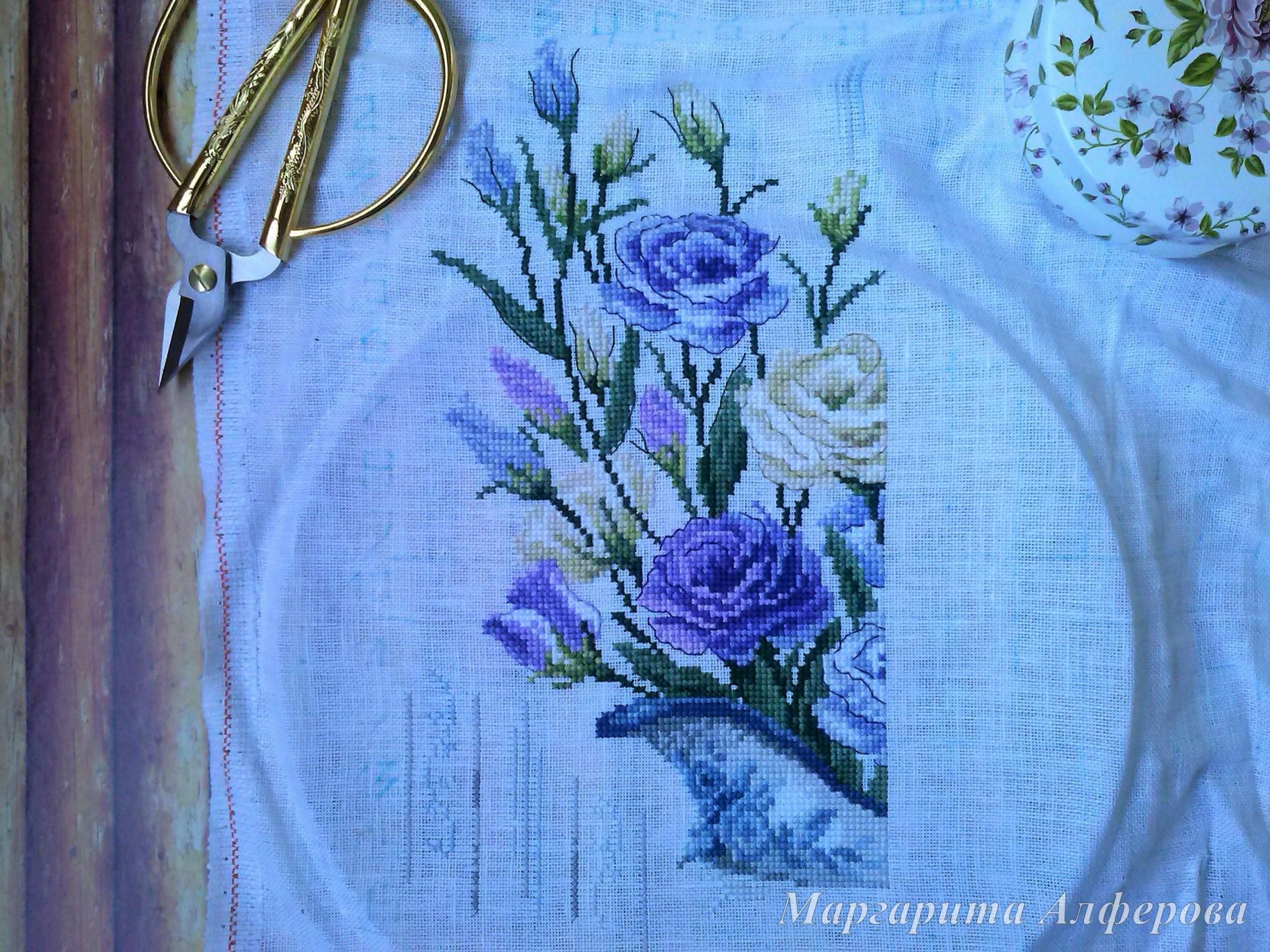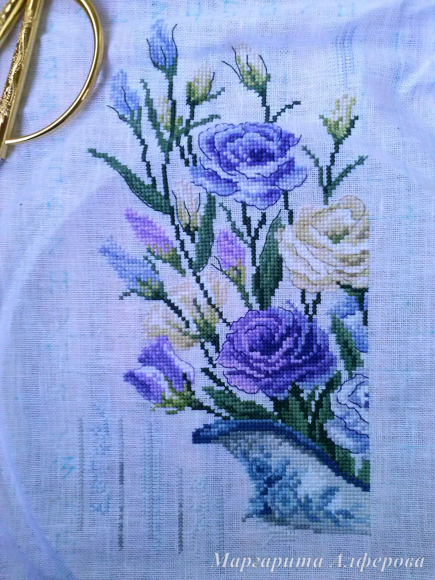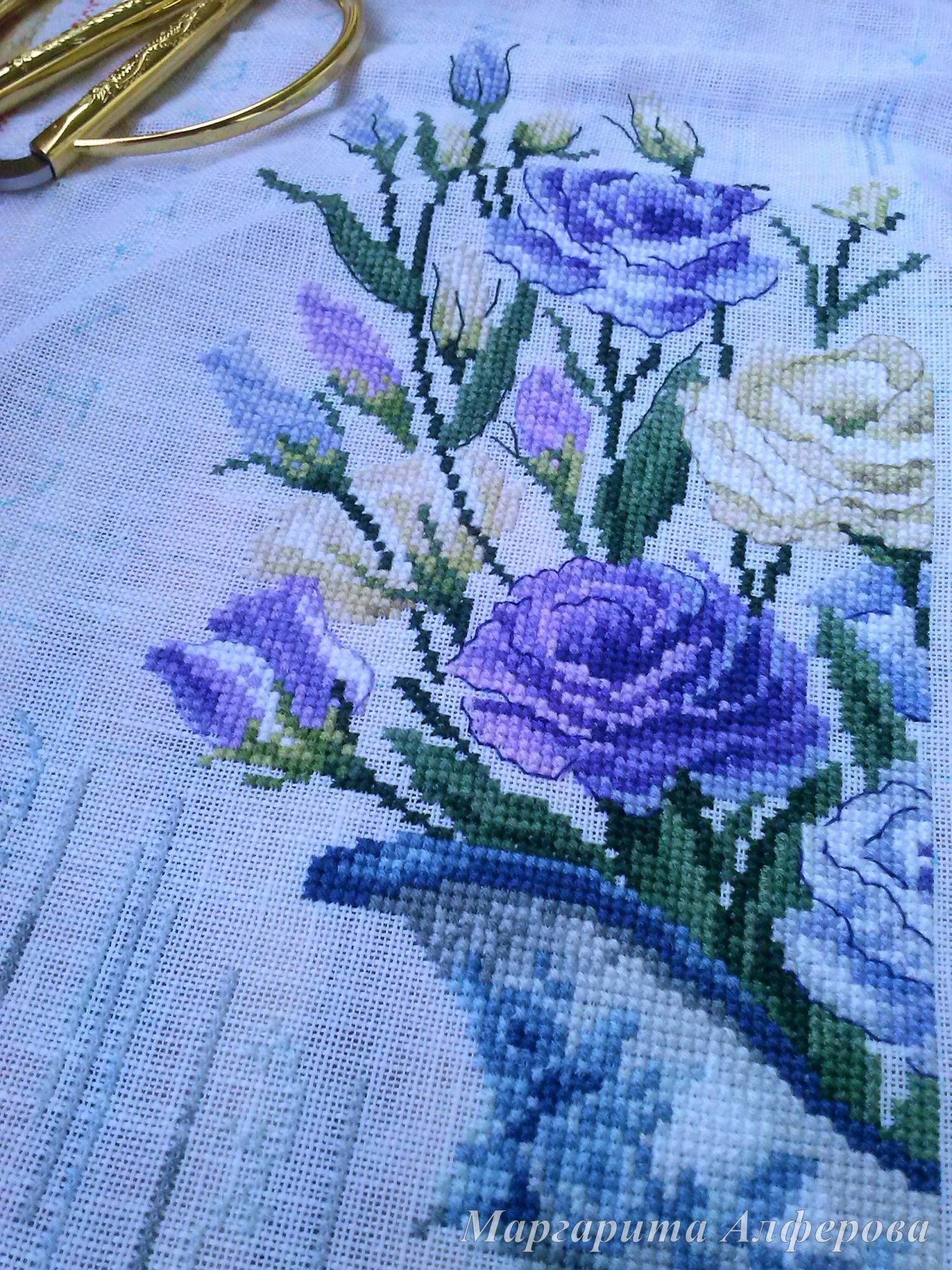 23 сентября 2017 А у меня еще немного подрос "Букет эустомы", точнее "расти" начали уже кувшинчик и фон Переставляла пяльцы и сделала фото для гаечки. Разметка испарилась окончательно... Конечно не смертельно, но очень не привычно, как-то не уверенно я себя чувствую без нее, надеюсь, скоро привыкну. Кувшин вышивать немного сложнее, чем цветы, но зато и интереснее. Уже хочется закончить этот лист схемы, ох, неужели это когда-нибудь произойдет?! Наталья2013, Sky026, GalaT и 16 других сказали спасибо Поделиться сообщением Ссылка на сообщение