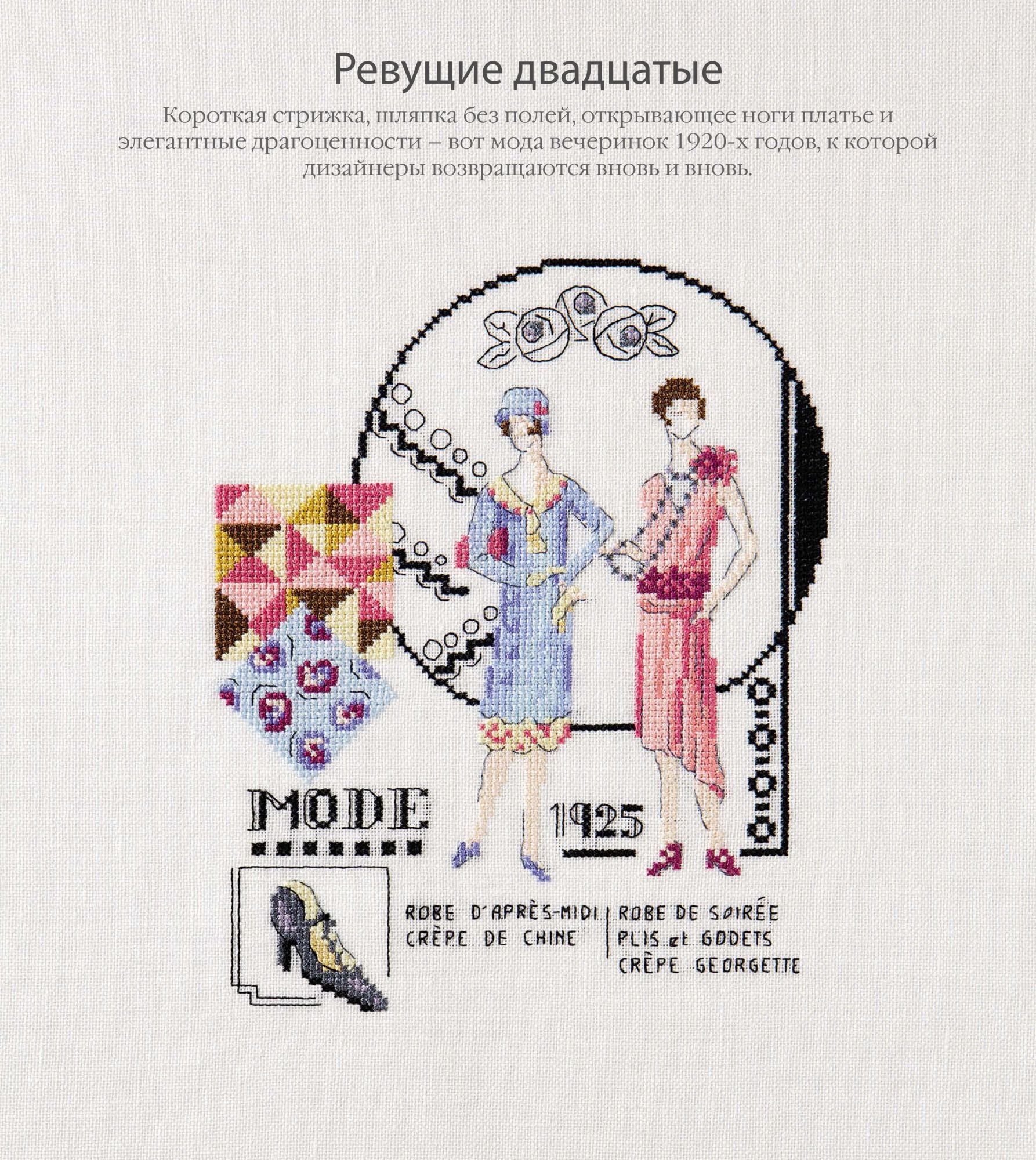 7 октября 2017 Доброе утро, мои самые-самые дорогие читательницы ( а может быть и читатели А вдруг?!)! Наступает еще один прекрасный осенний денек, тем более суббота! Интересно, сегодня опять будет дождь или все-таки выглянет солнышко? А я принесла книгу обещанную Саше @Gala83 Как-то я не включила ее список книг которые хотела здесь показать потому что мне казалось что все с ней хорошо знакомы, видела ее у некоторых наших девочек... Вот, пожалуйста, исправляюсь! "Вышивка крестиком для настоящих модниц" Вероник Ажинер Книга посвящена женской моде 20-го века и тому как она менялась. Даже если не браться что-то из нее вышивать, то посмотреть всегда очень приятно, к тому же у нее великолепное качество бумаги и размер впечатляющий, она так и считается "подарочное издание". Мне ее подарили на предыдущий день рождения. Ранее я писала что это единственная книга выпущенная в России, но я забыла про "Воспоминания детства вышитые крестом" (по-моему Эксмо) и "Садовые цветы". Показывать их не буду, потому что по моему субъективному мнению они не интересны. Если очень надо их можно найти в интернете. Знаю что у "Вышивки для настоящих модниц" настоящее название совсем другое, у этой книги вообще с переводом как-то не очень, одна фамилия Вероник чего стоит! Постараюсь найти настоящее название, даже самой сейчас стало интересно. А вот и странички из книги. Простите, времени было мало, поэтому они немного не по порядку. Так же и технические рекомендации я опустила. Надо добавить, что в книге схем немного больше чем фото вышитых дизайнов. Приятного просмотра! МамаЛё, irisheckin, apanjul и 13 других сказали спасибо Поделиться сообщением Ссылка на сообщение