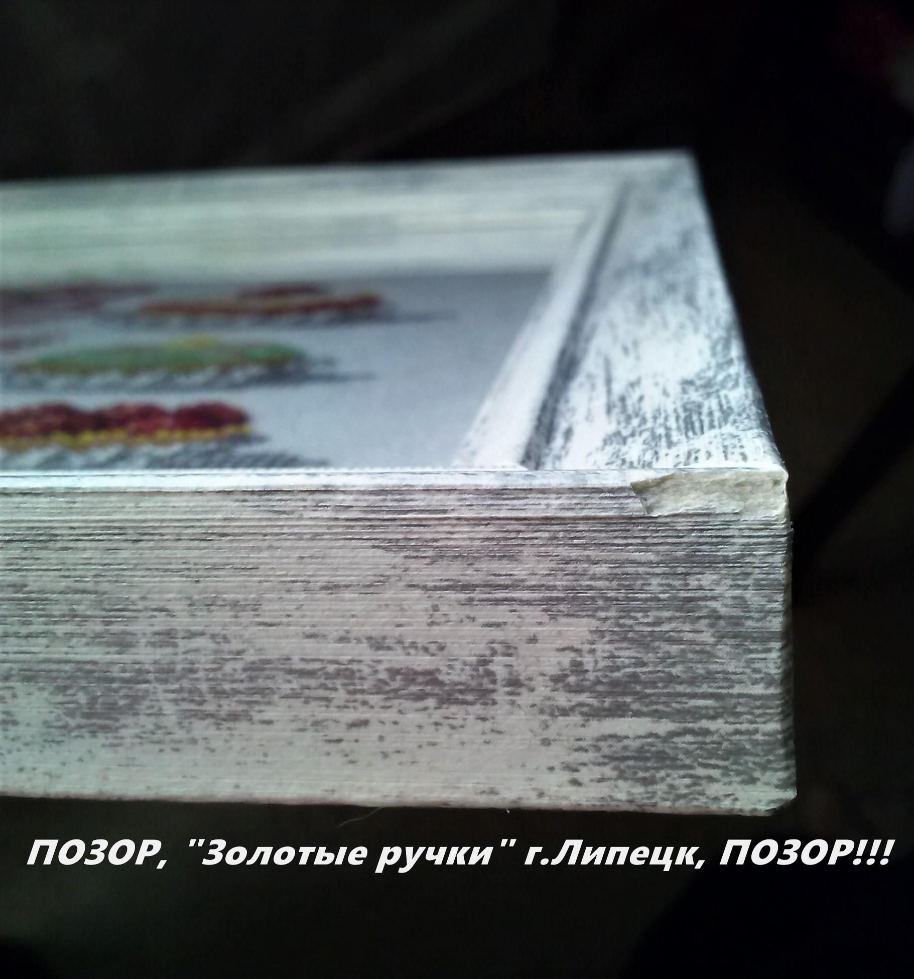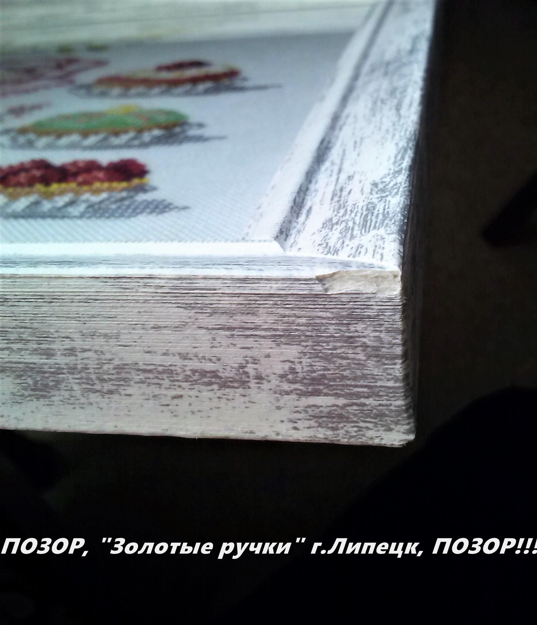 22 февраля 2018 Получила я сегодня мой "переделанный" "Чай в саду"... https://forum.stitch.su/topic/4602/?do=findComment&comment=1584805 (ссылка на то как все начиналось) Был один скол, стало... много. Коричневые брызги даже не потрудились вытереть. Действительно, зачем, с людьми что ли работают? Кривой угол никто не собирался исправлять. Отпечаток пальца на льне исчез, зато теперь под стеклом мусор. Все это видно на фото. Не стесняясь в выражениях, орали из-за прилавка в три глотки (пардон, накипело), что "Авось там ничего не видно" (прямая цитата) и переделывать больше ничего не будут и деньги возвращать тоже не будут. Квитанцию на руки не дали. Получала работу моя мама, которая теряется от любого хамского возгласа, тем более она далека от всех "вышивальных дел", поэтому наши "профессионалы" особо не церемонились. А сама я сейчас не могу туда сходить, т.к. сижу дома после серьезной травмы, а сходить "посмотреть в глаза" очень хотелось бы. Это самое ужасное - ощущать свое бессилие... Напомню, это "Золотые ручки" г.Липецк. P.S. Буду рада советам где еще можно написать отзыв о работе багетной мастерской. Чтобы люди знали своих героев Svetl@n@, Catopuma, GalaT и 15 других сказали спасибо Поделиться сообщением Ссылка на сообщение