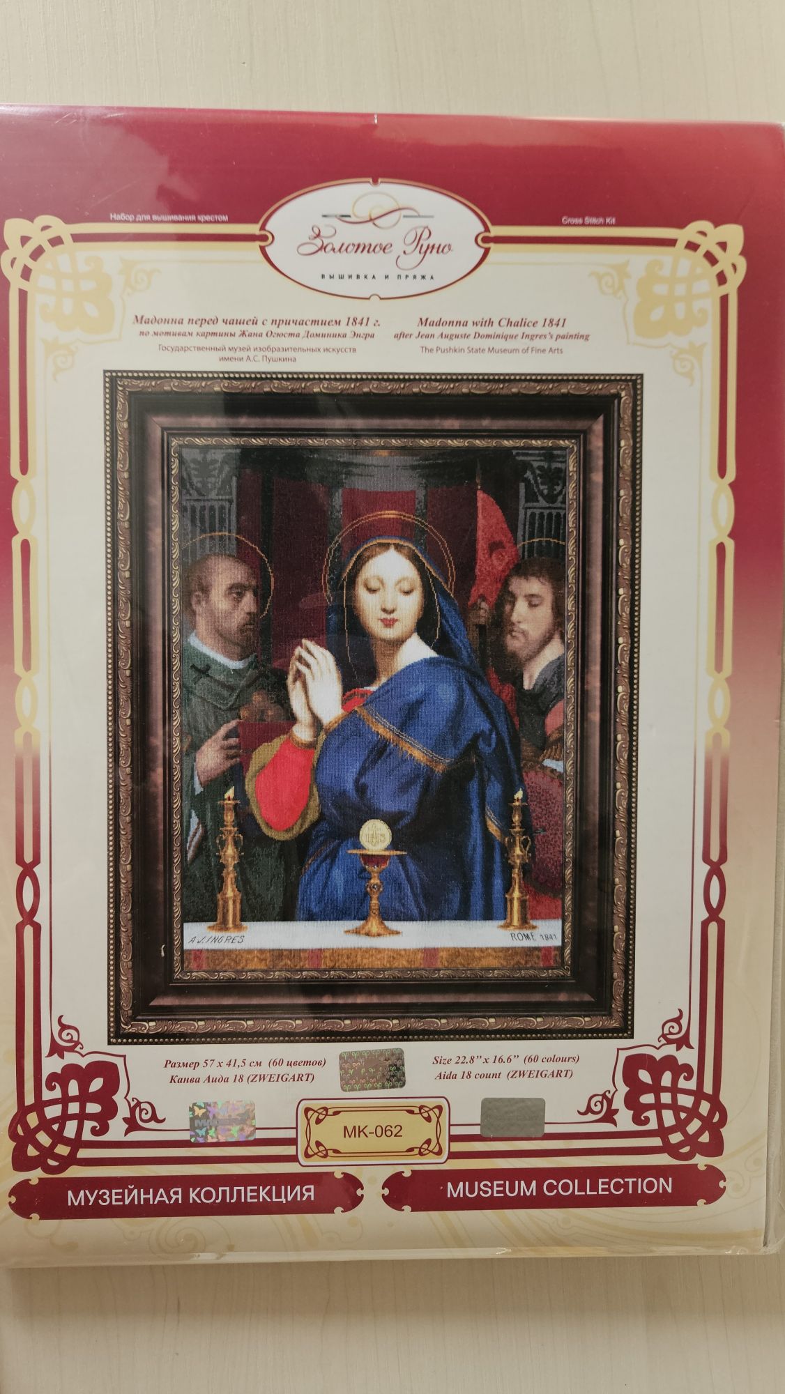 8 ноября Девочки, спешу поделиться своим новым набором от любимого Золотого Руна - "Мадонна перед чашей с причастием 1841 г" по мотивам картины Жана Огюста Доминика Энгра. Вот сама на знаю чем приглянулась эта картина.... Но, похоже, после Мадонны Магнификат меня потянуло на Мадонны... Цветов немного, всего 60. И, скорее всего, судя по картине схема будет не сложной. Сейчас буду открывать, посмотрю. Очень интересна история написания картины художником. Я прежде чем вышивать картину из музейной коллекции всегда люблю почитать всё, что о ней известно в интернете. Да, кстати, выкупила на ВБ с очень хорошей скидкой за 2945 руб, а на официальном сайте Золотого Руна она стоит 5540 руб. Танагра, герда28, Лена1973 и 56 других сказали спасибо Поделиться сообщением Ссылка на сообщение