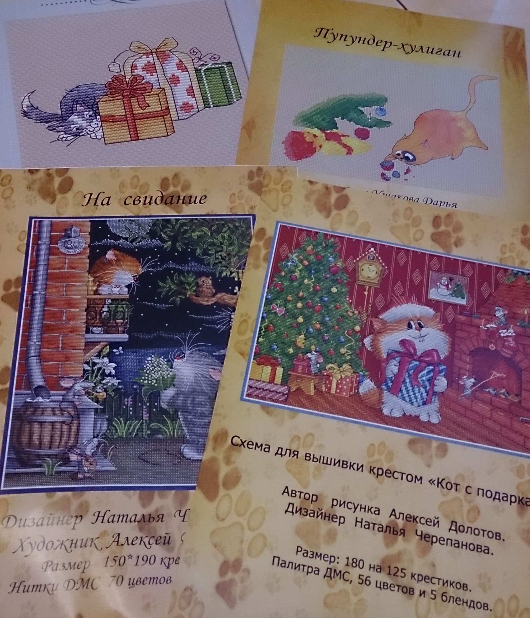 21 февраля 2016 У меня котиковое весеннее обострение) купив на Формуле рукоделия у Дарьи Ушаковой прикольных котанов, я влюбилась в них безвозвратно))) Причем не только в дашиных, но и в котов Натальи Черепановой. Правда, на остальных у меня банально не хватило денег. Но эта проблема оказалась решаема)) я списалась с Дашей и она мне при встрече передала вот эти четыре схемы в распечатанном виде - причем пара из них уже опять -таки укомплектована всем необходимым - тканью и нитками ДМС. А вот для нижних двух схем необходимы нитки, поэтому хомяк быстренько пошел в Шелковую нить и сделал там заказ на необходимые нитки (удобно, что в схемах в ключе написано, сколько нужно метров каждого номера ДМС - поэтому необязательно скупать чохом все 56 цветов, например, если в запасах есть нитки - полметра или метр какого-нибудь цвета обязательно найдется.) Я к тому, что к каждой схеме было заказано чуть больше половины нужных ниток - остальные нашлись в загашнике. И теперь я знаю, куда мне деть Белфаст гранат и мурано темно-синий - как раз такие цвета тканей нужны для вышивки этих дизайнов. Сейчас я "погрязла" в шовчиках, оторваться просто невозможно , поэтому нитки всегда нужны - столько, оказывается, красивых штучек можно сотворить! Но в ближайших планах у меня один из серии купленных котов стоит в первую очередь)))) Svetl@n@, Платиновый Еж, vasileva70.vika и 35 других сказали спасибо Поделиться сообщением Ссылка на сообщение